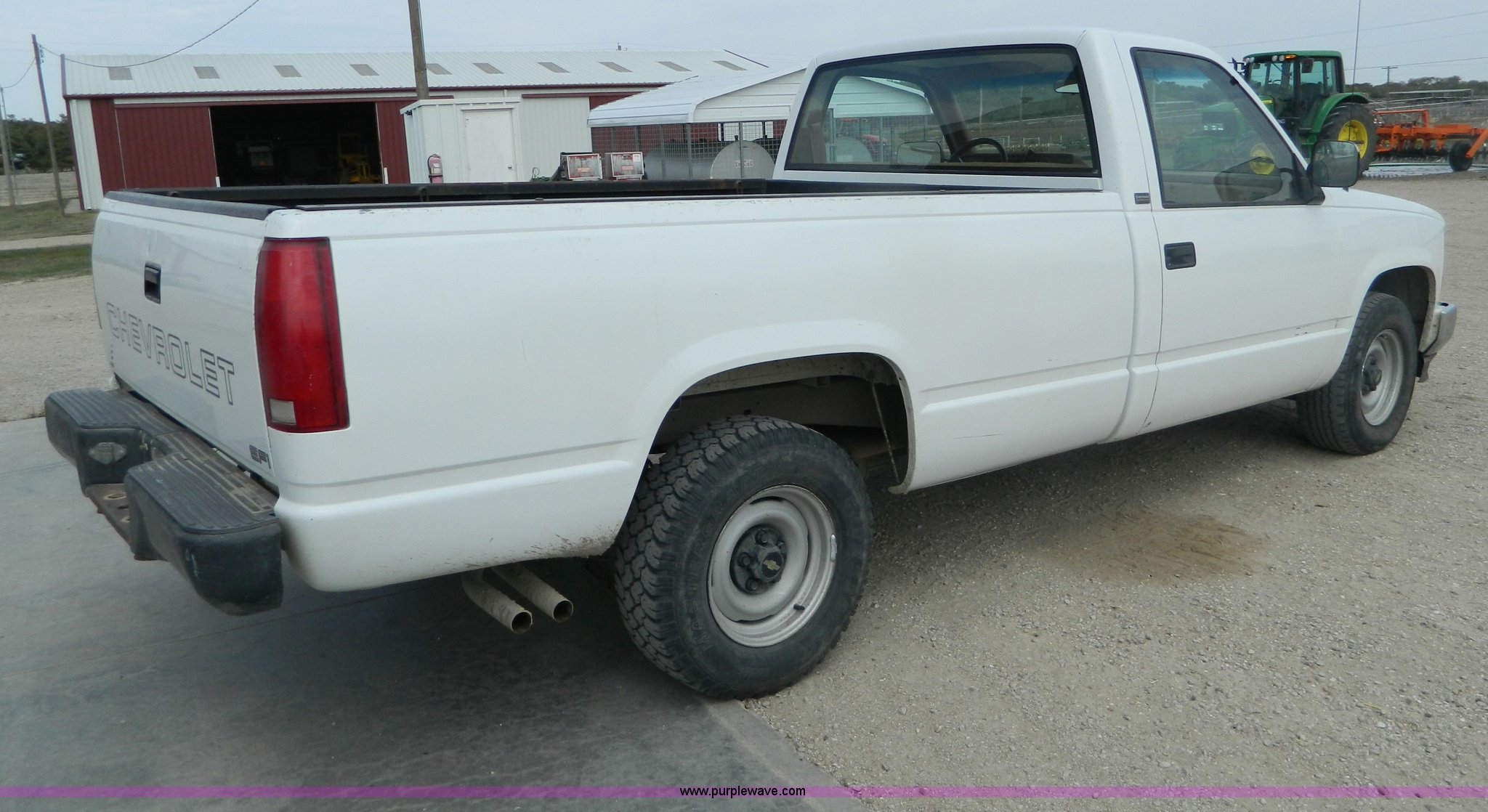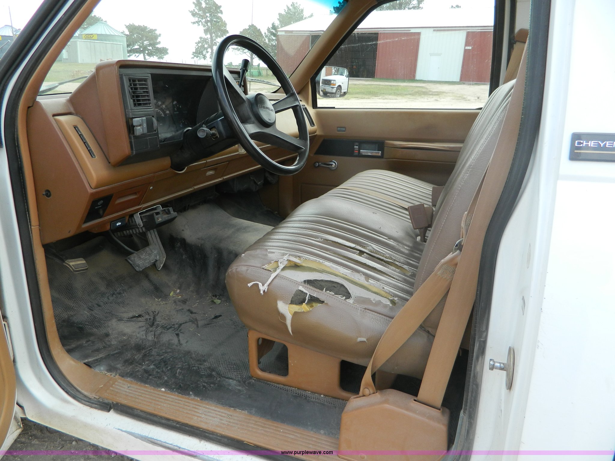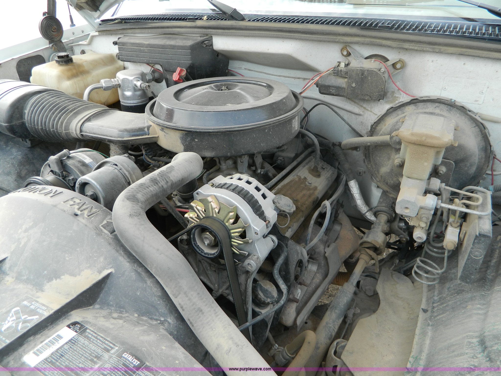 Purple Wave is selling a used Passenger Vehicle in Kansas. This item is a 1991 Chevrolet 1500 pickup truck with the following: 145,679 miles on odometer, 5.7L V8 TBI gas engine, Engine knocks until it warms up, Automatic transmission, AC and heat, Manual windows and locks, Long bed, LT235/75R15 tires, Interior/exterior cosmetic damage, Blower motor only works on low setting, Radio inoperable, Engine knocks until it warms up