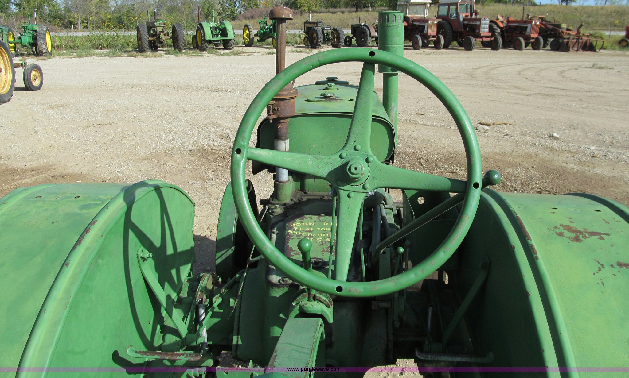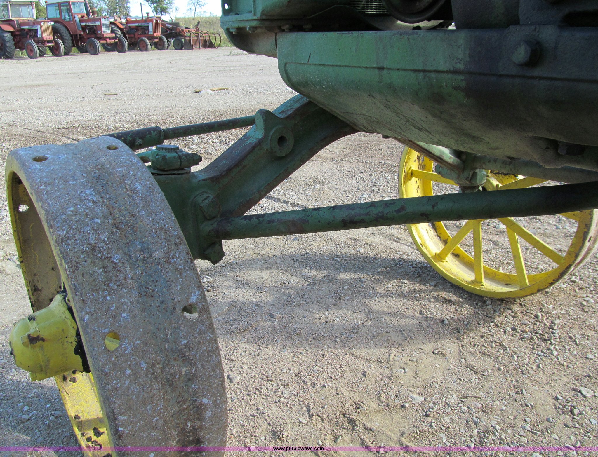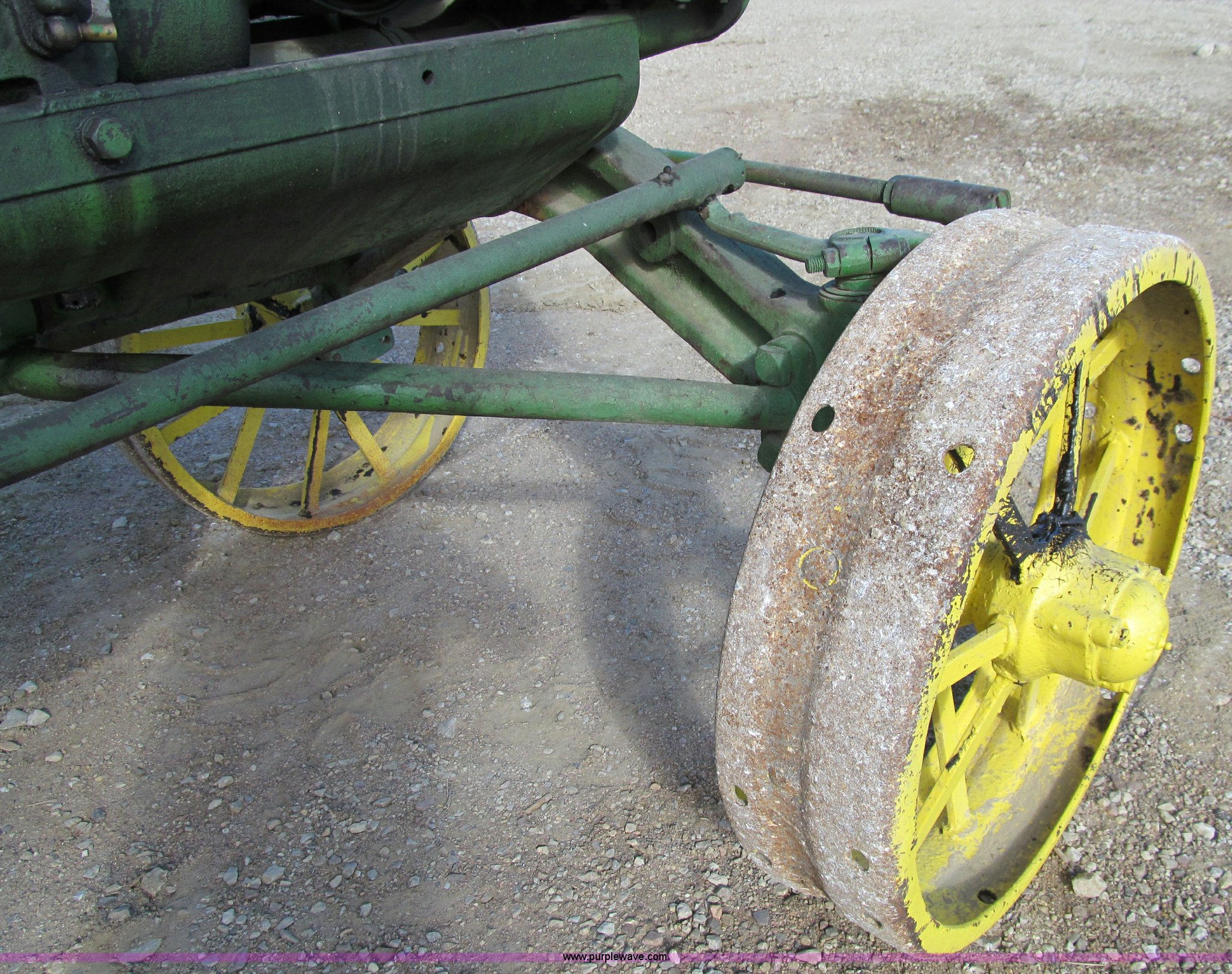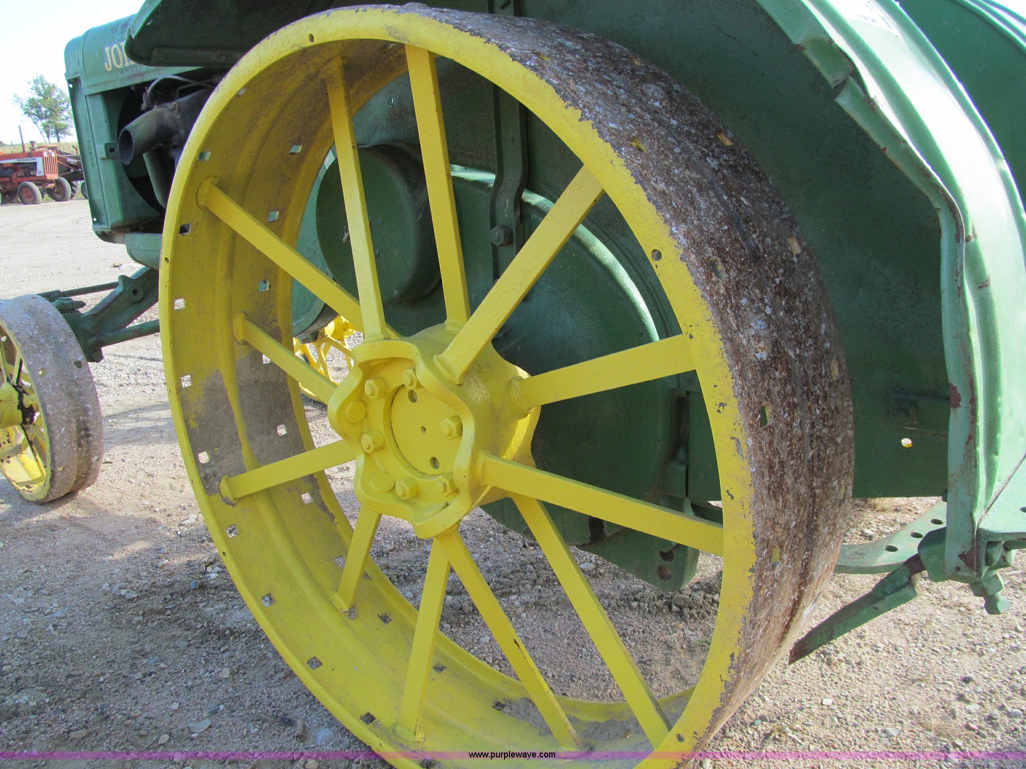 Purple Wave is selling a used Tractor in Iowa. This item is a 1929 John Deere GP tractor with the following: John Deere two cylinder gas engine, Manual transmission, 3F-1R gears, Spring seat, Wheel lugs included, unattached, Serial 208332