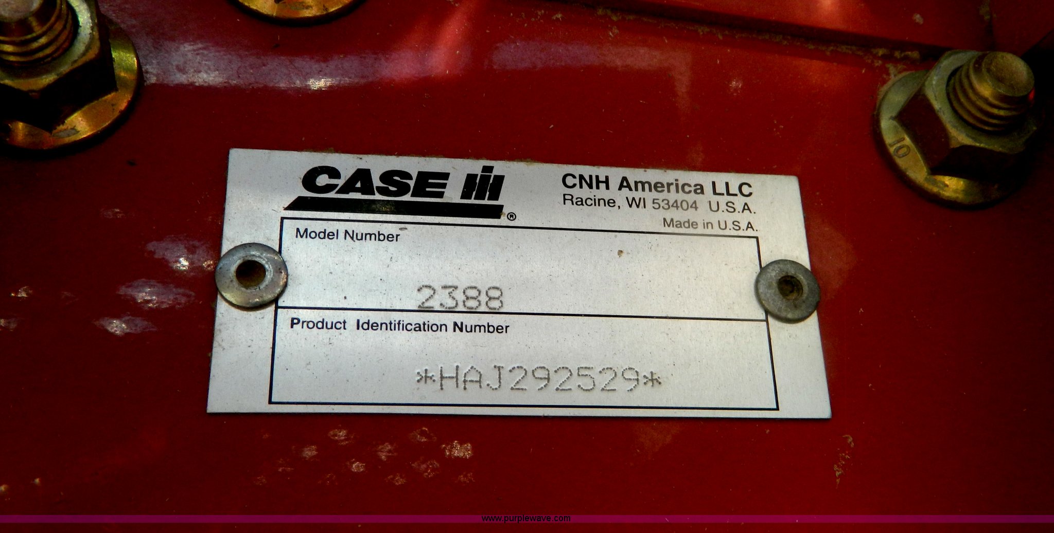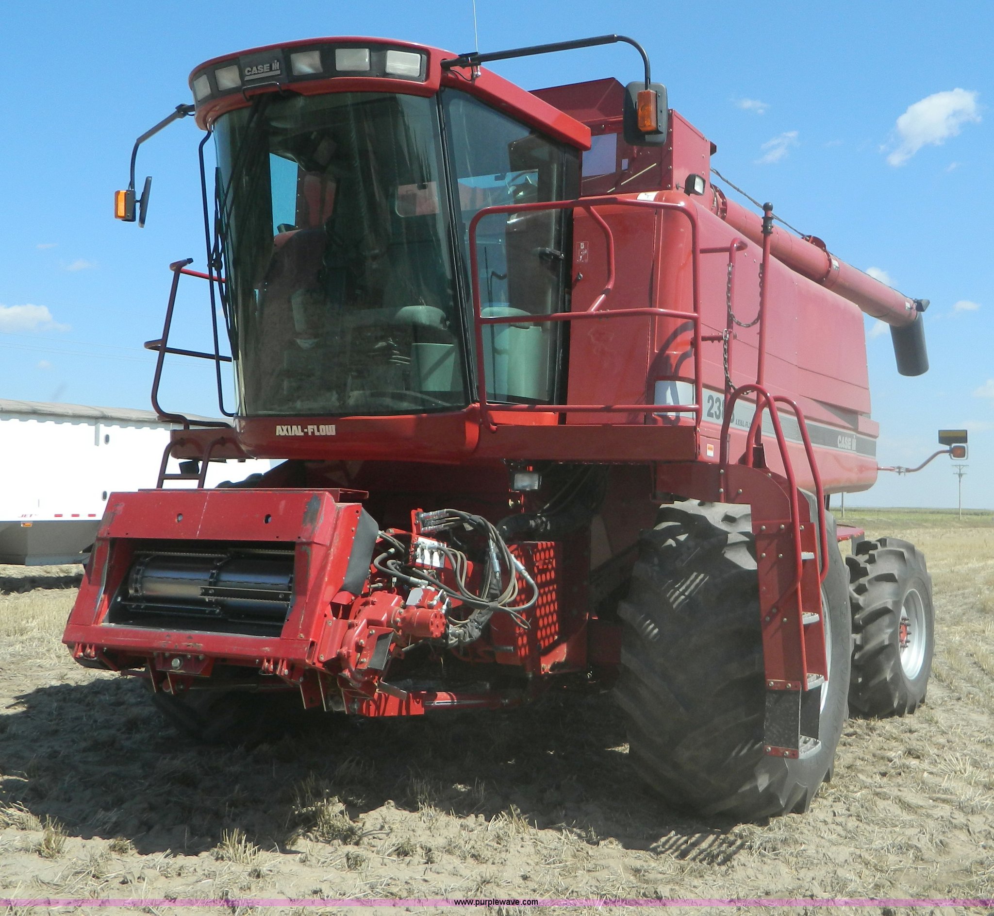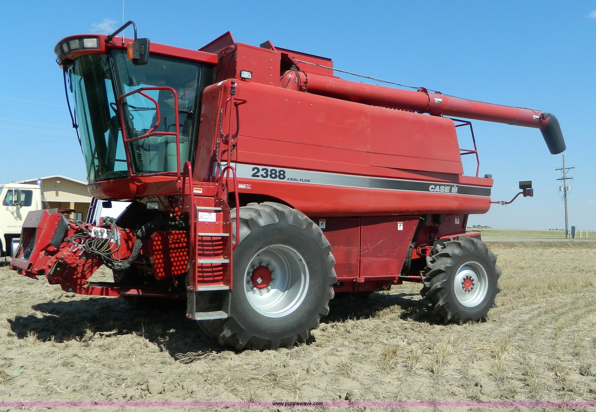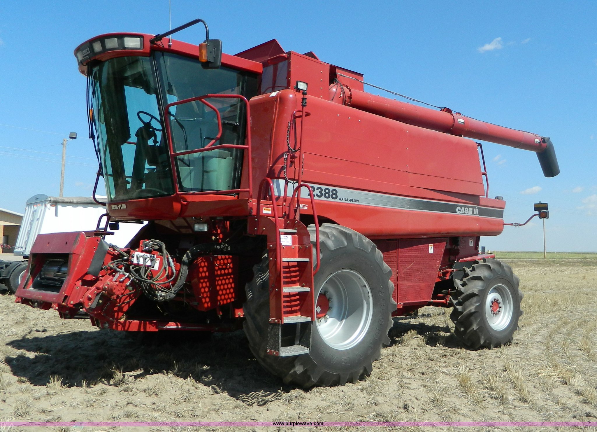 Purple Wave is selling a used Combine in Kansas. This item is a 2005 Case IH 2388 RWA combine with the following: 1,790 engine hours on meter, 1,268 separator hours on meter, Case IH six cylinder diesel engine, Serial 46475879, Hydrostatic transmission, 3F-1R gears, AC and heat, AM/FM, Tilt steering wheel, Air seat, Instructor's seat, Yield monitor, Operators manual, Work lights, Straw chopper, Straw spreader, Auger extension, 30.5L front tires, 18.4-26 rear tires, Single operator, Stored inside, Serial HAJ292529