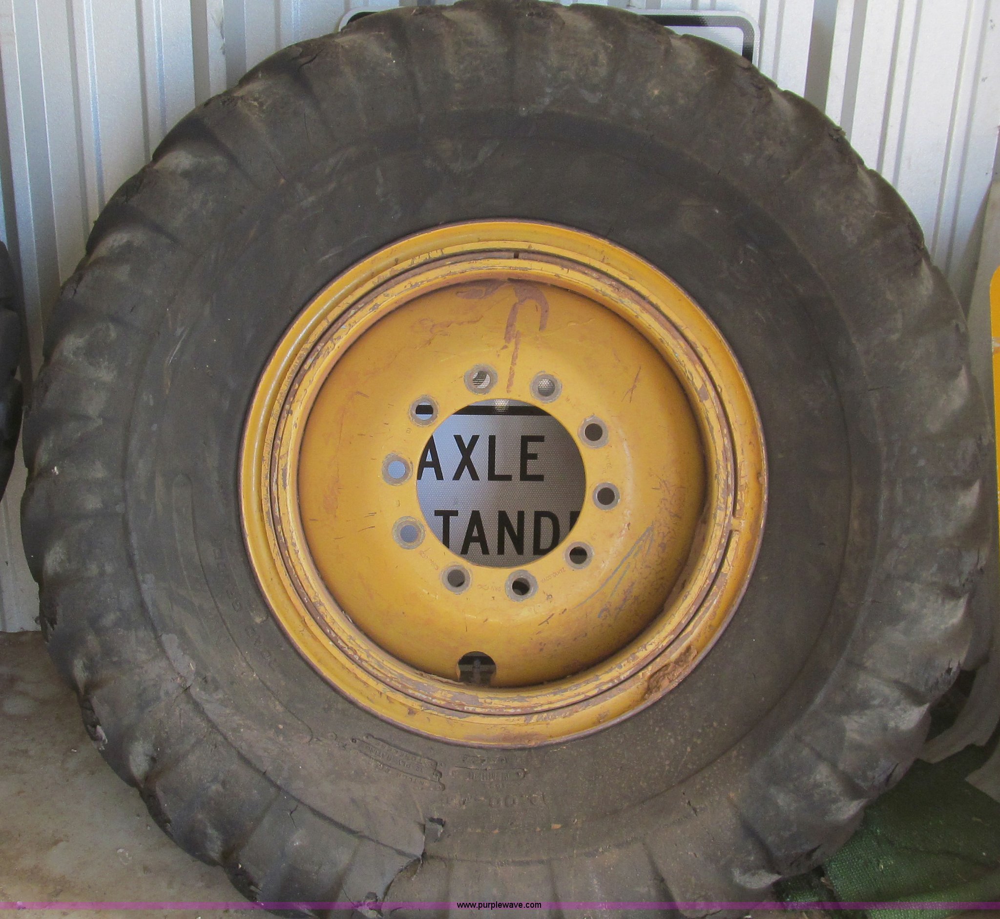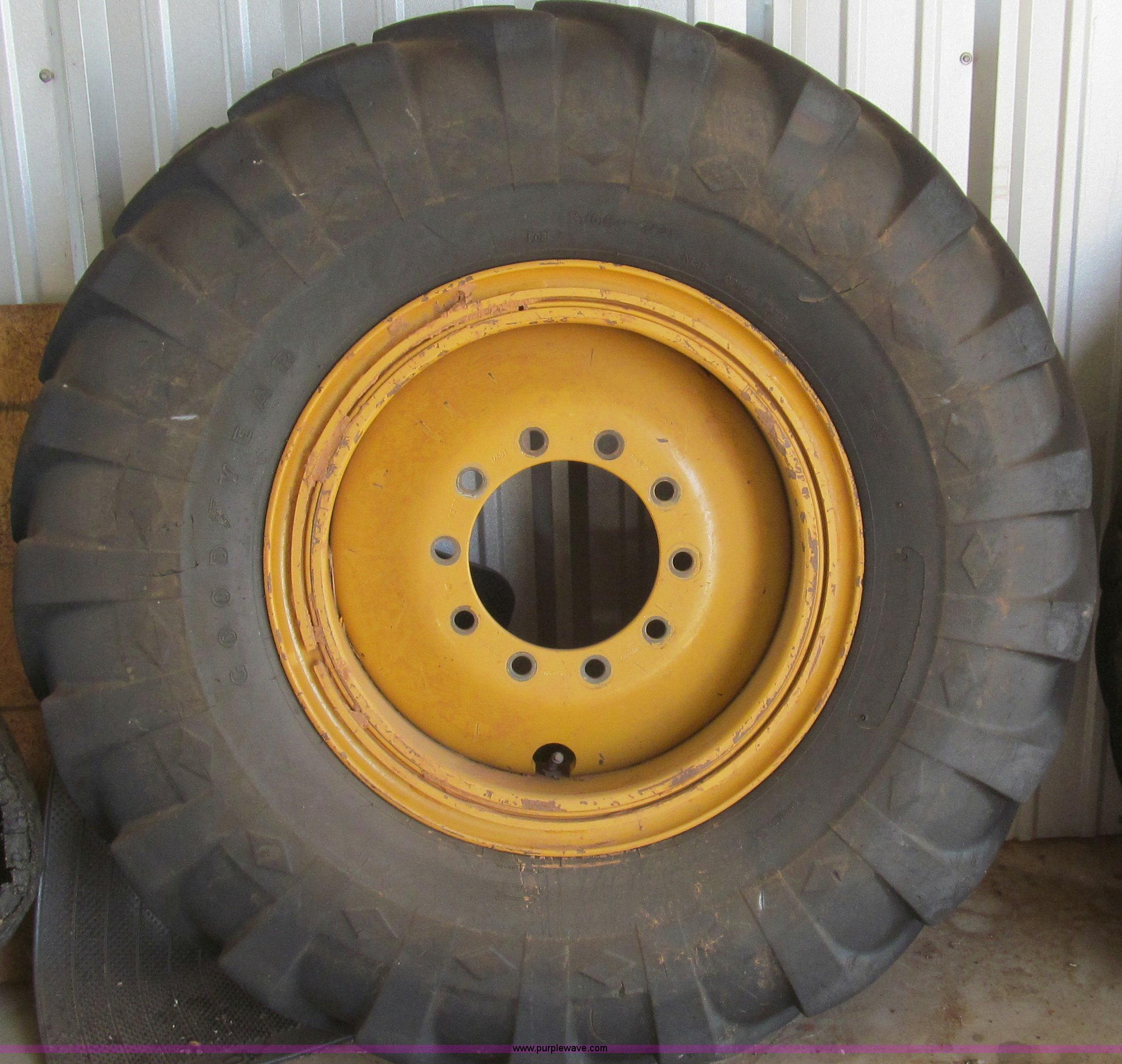 Purple Wave is selling a used Industrial Tires or Tracks in Texas. This item is a 14.00-24 tires and wheels with the following: Fit Caterpillar 140H motor grader, Tires worn