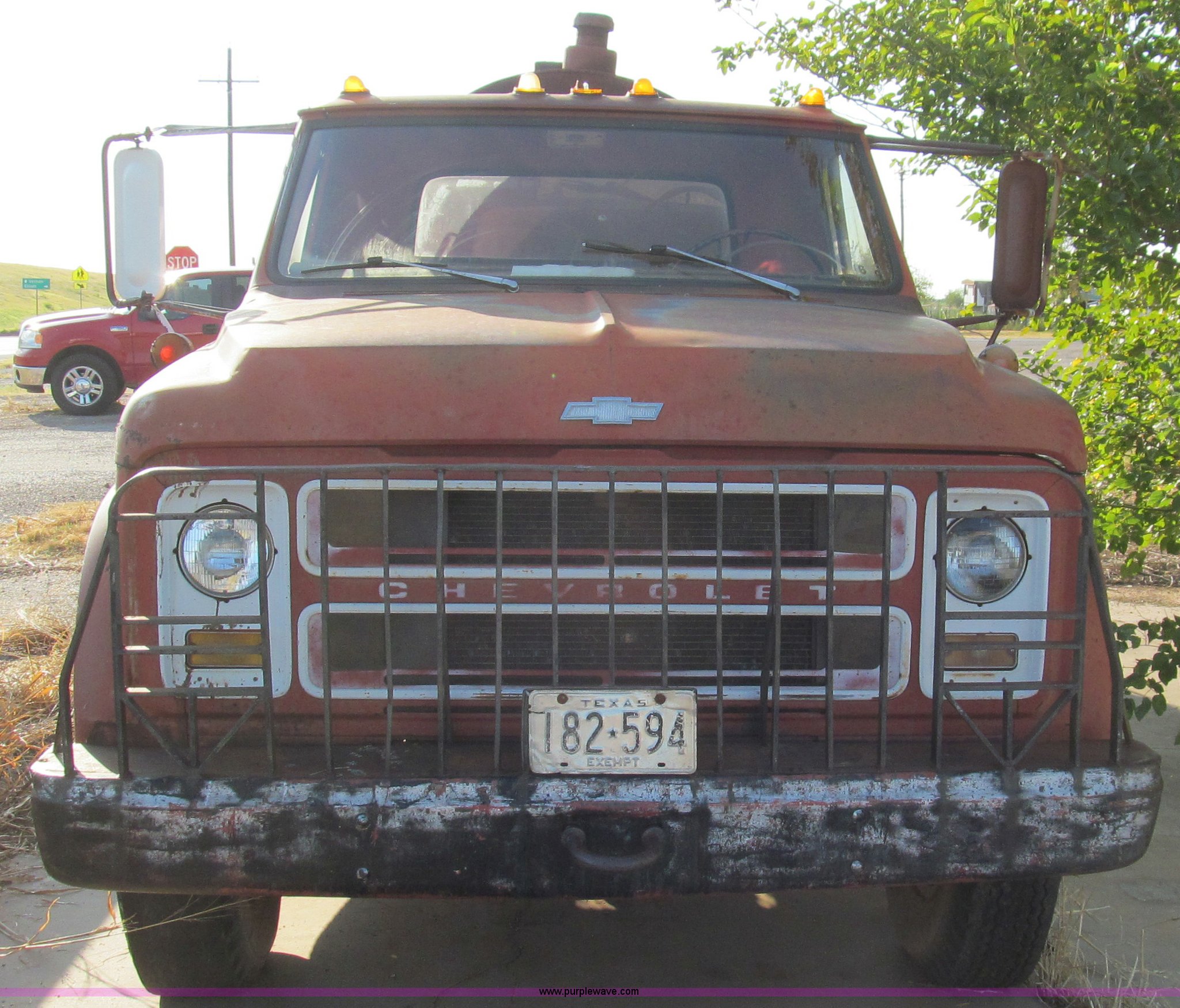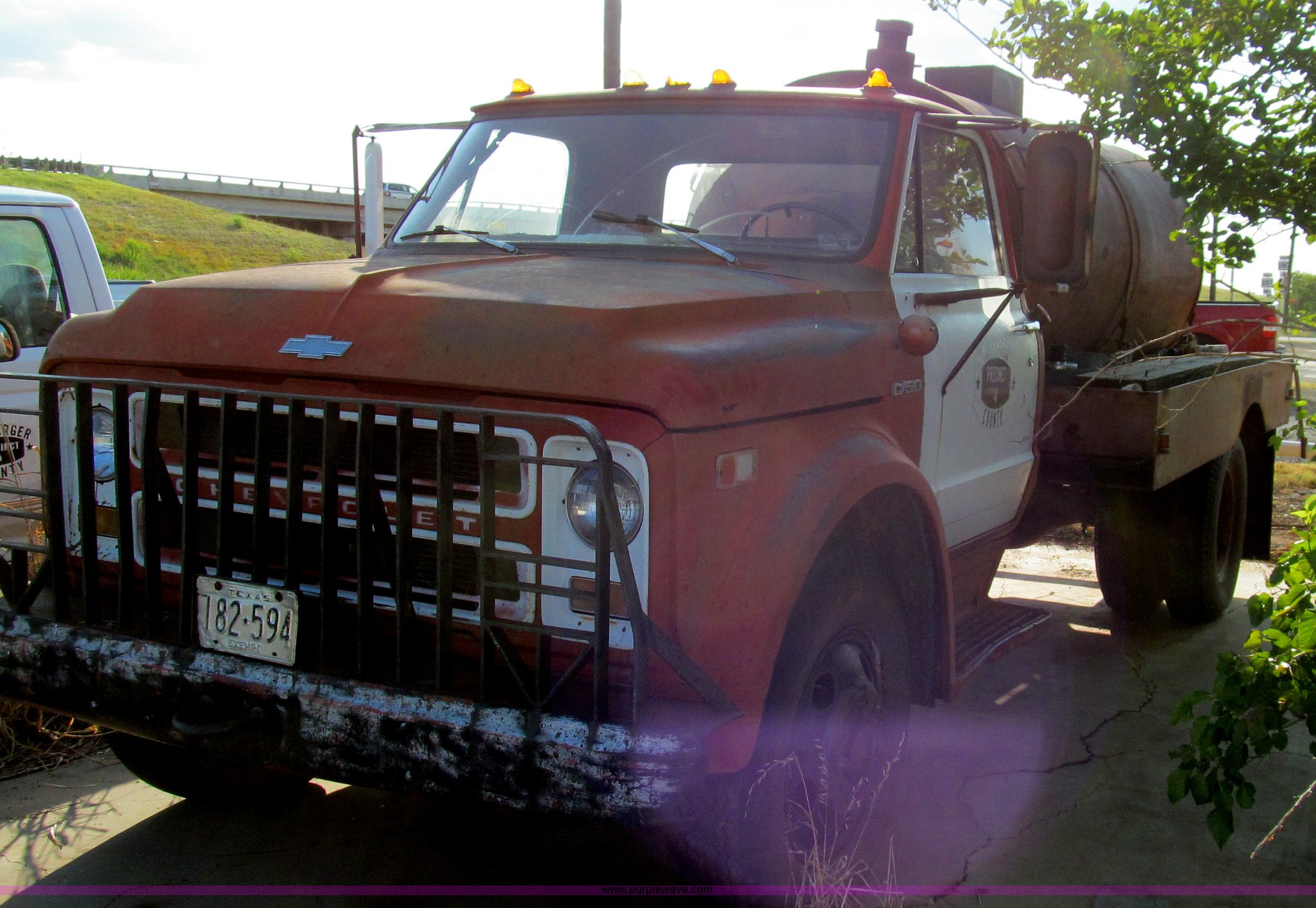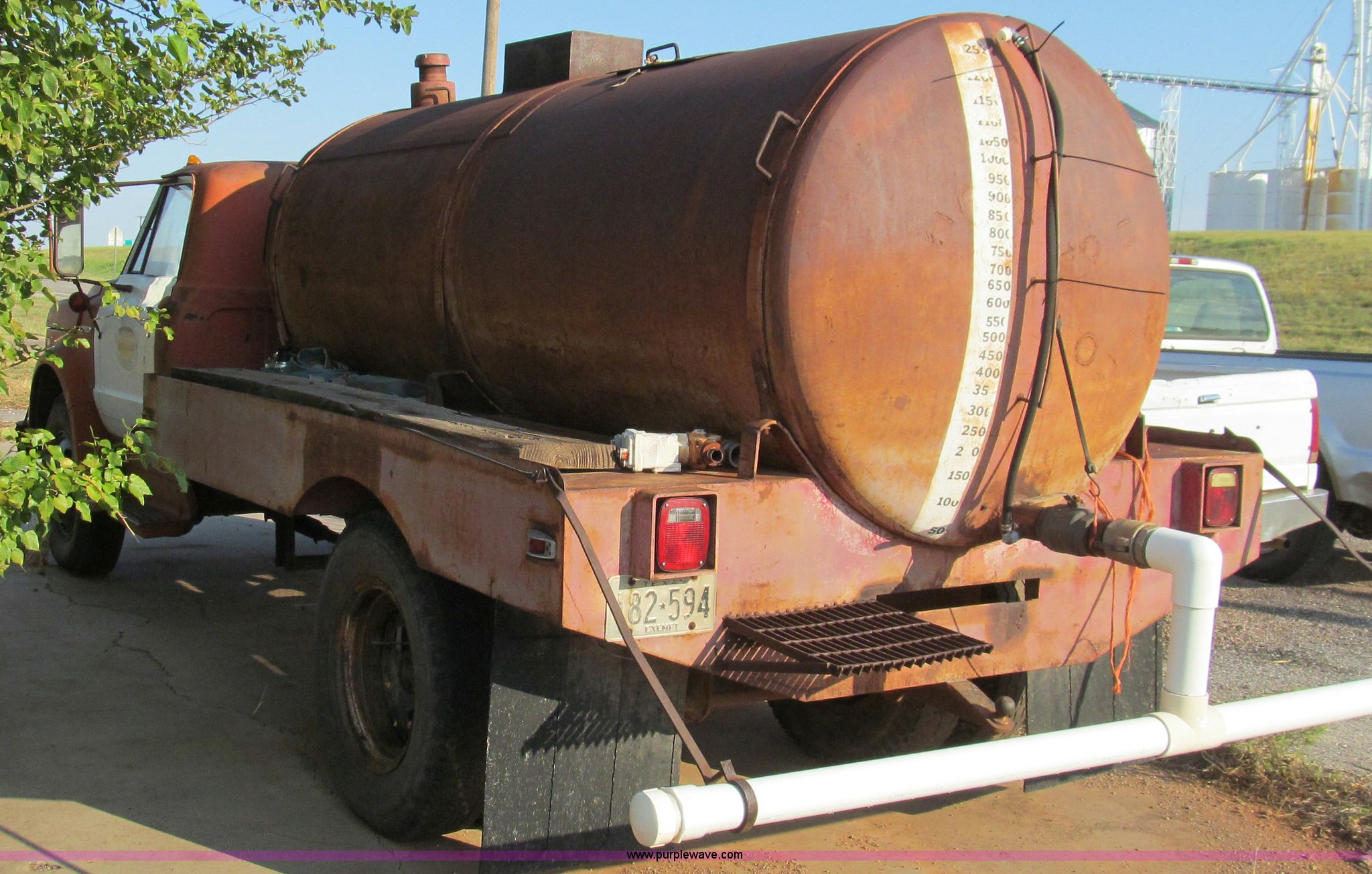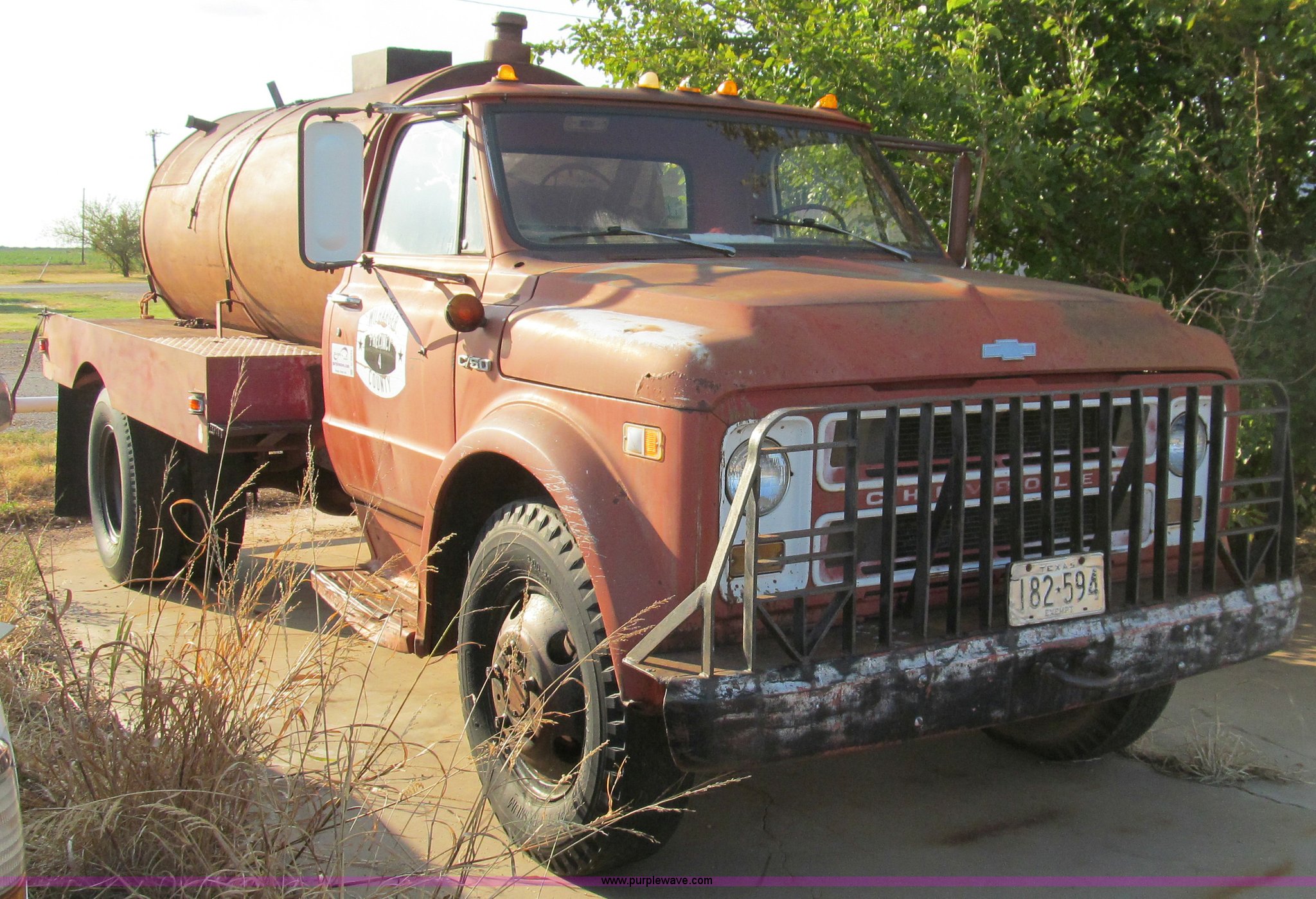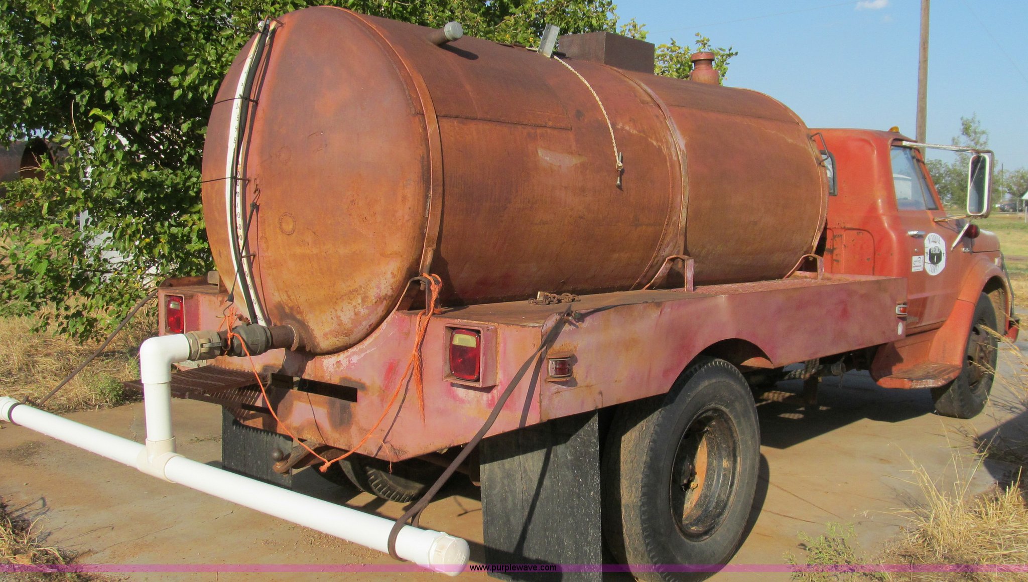 Purple Wave is selling a used Tank Truck or Water Truck in Texas. This item is a 1970 Chevrolet C50 Bob-Tail semi truck with the following: 31,075 miles on odometer, Gas engine, Eight speed manual transmission, Heat, Spring suspension seat, 1,250 gallon water tank, PTO, Spring suspension, 14' wheelbase, 9.00-20 tires, GVWR 19,500 lbs