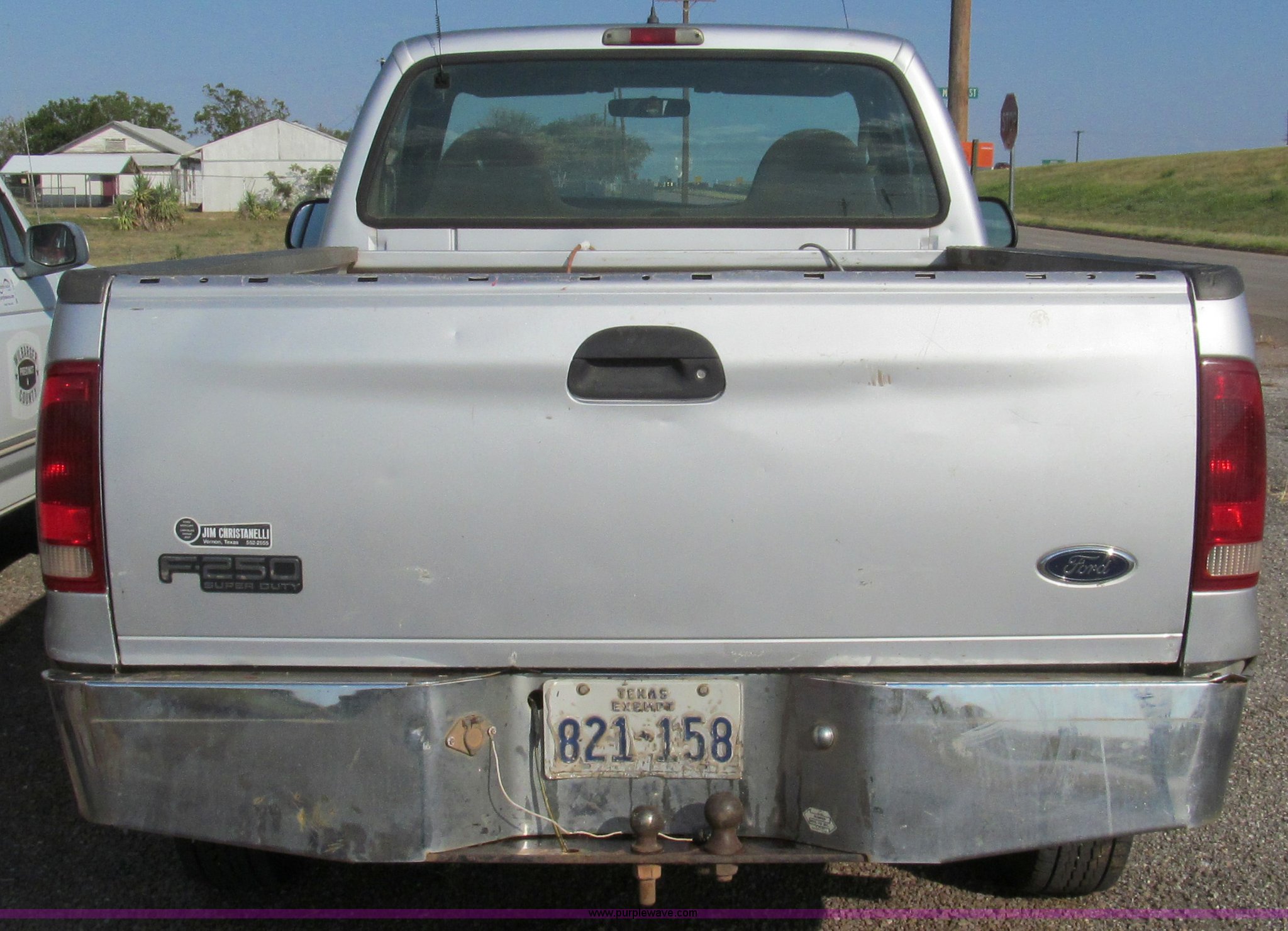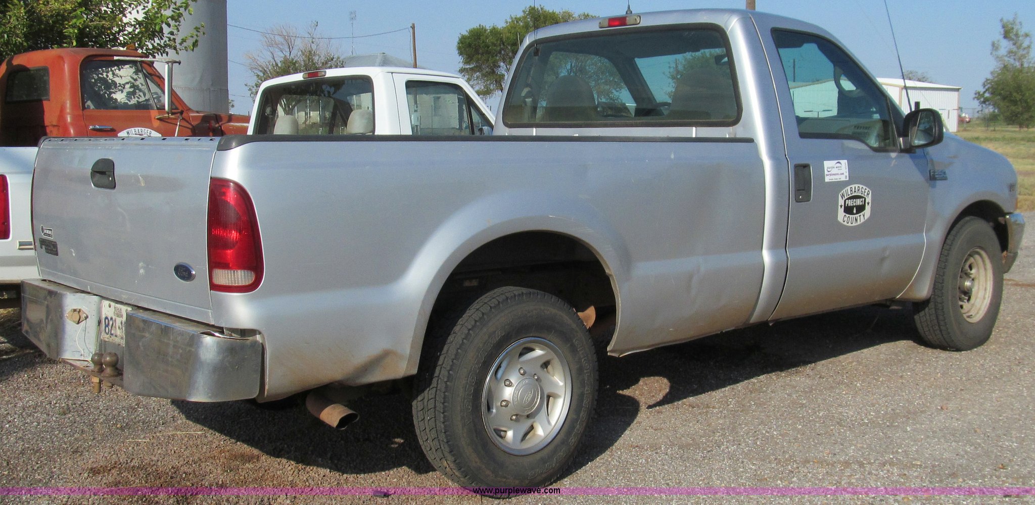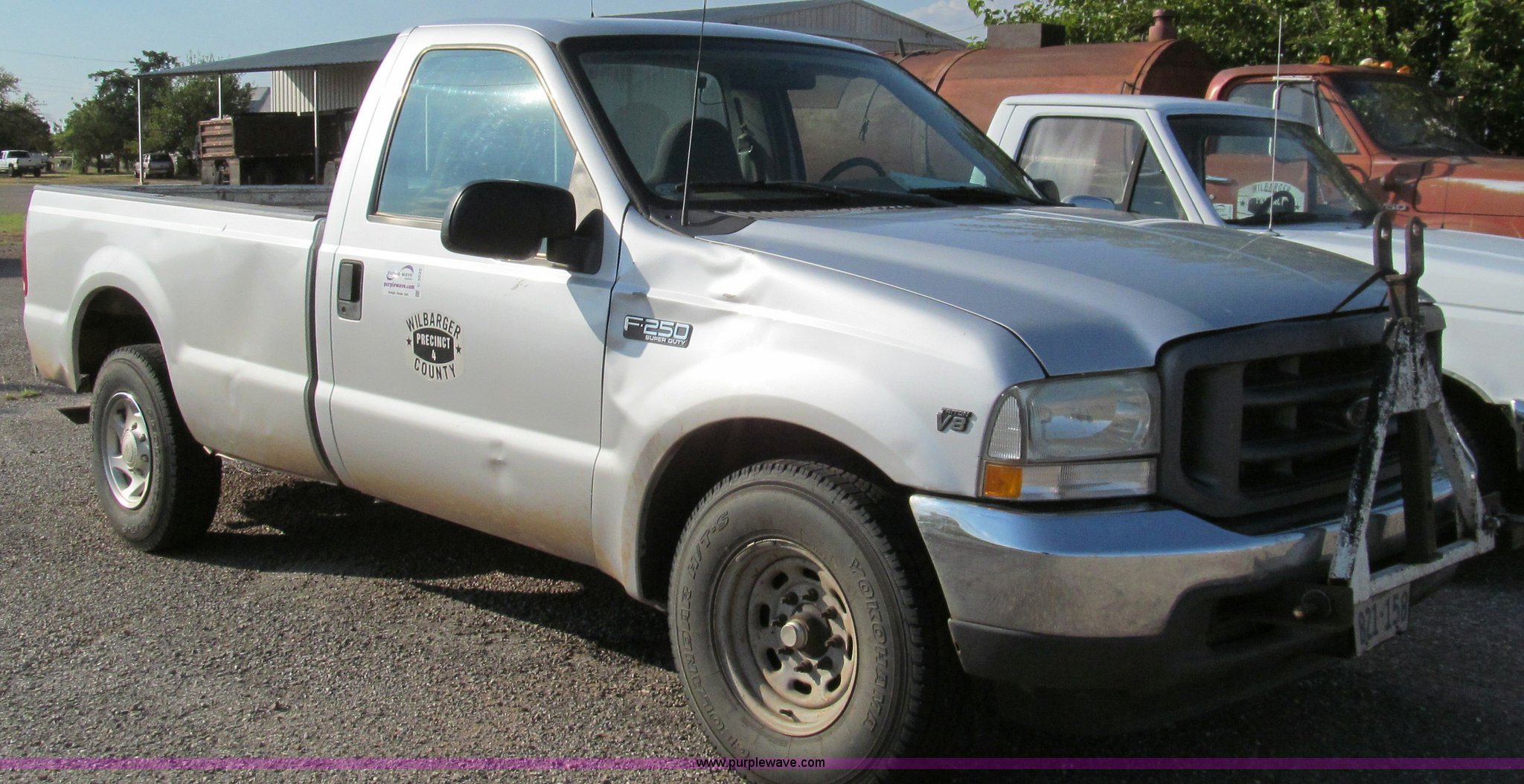 2002 Ford F250 pickup truck. 199,659 miles on odometer, Triton 5.4L V8 EFI gas engine, Automatic transmission, AC and heat, Tilt, Cruise, AM/FM/cassette, Manual windows and locks, Cloth interior, Long bed, 235/85R16 tires, Rear end needs repairs. Title distribution may be delayed up to 14 days from verification of funds. 1FTNF20L82EA47549. Shipping quotes available. Wilbarger County. 1700 Wilbarger St., Rm. 10. Vernon, TX 76384