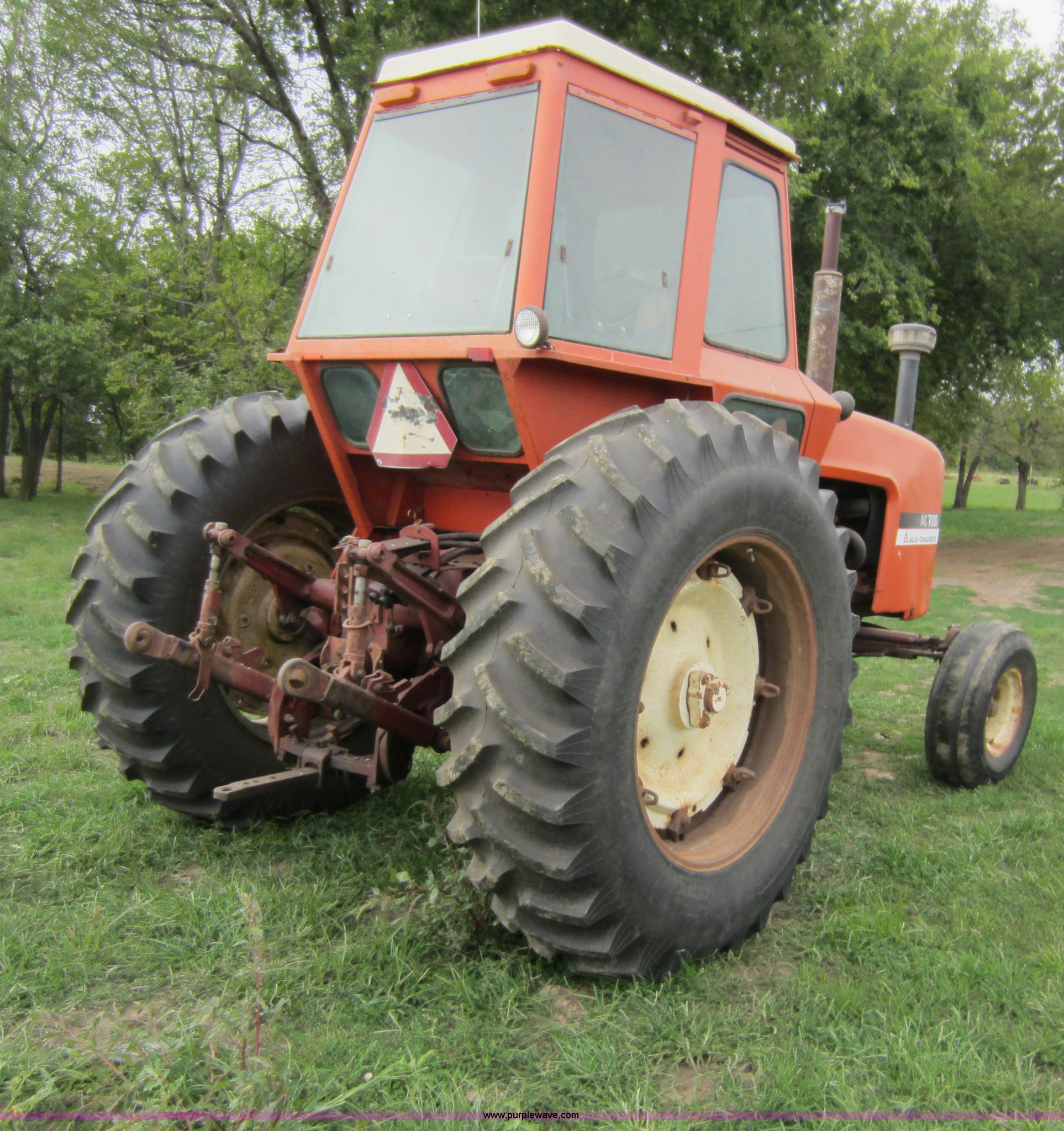 Purple Wave is selling a used Tractor in Kansas. This item is a 1978 Allis Chalmers AC7000 tractor with the following: Allis Chalmers 2900 diesel engine, Serial 2D-94879, Partial powershift transmission, 12F-3R gears, Transmission slips under heavy load in low range, AC, FM radio, Tilt steering wheel, Three point, Draw bar, 540 PTO, (2) rear hydraulic remotes, 18.4-38 rear tires, Serial 4007000