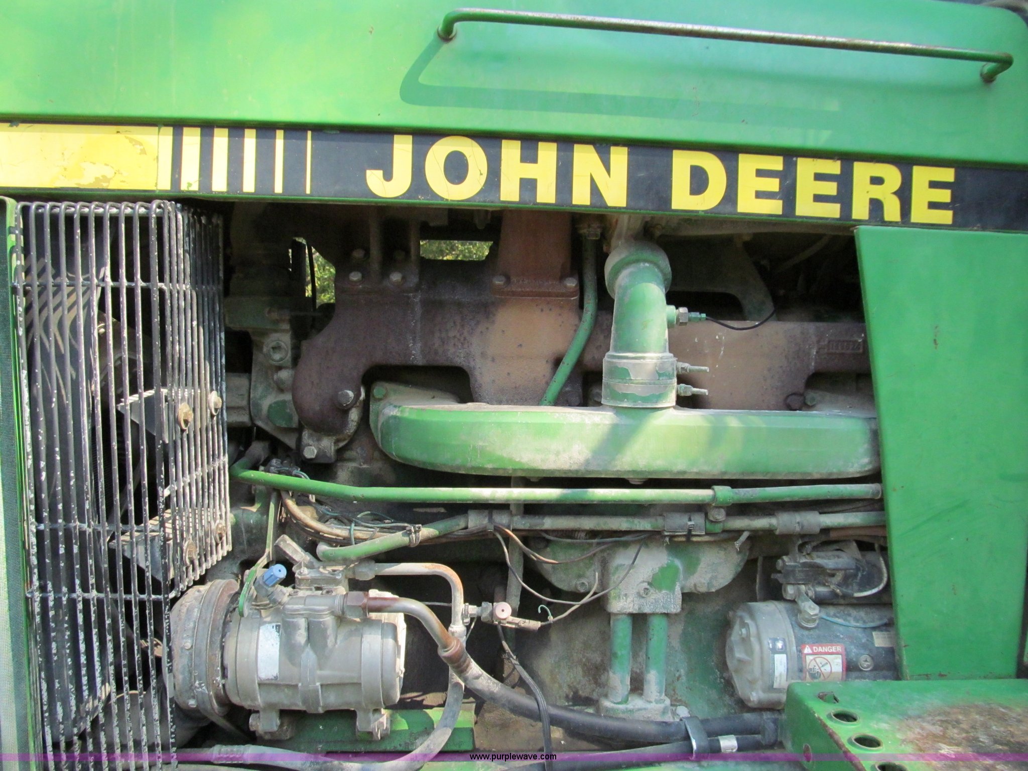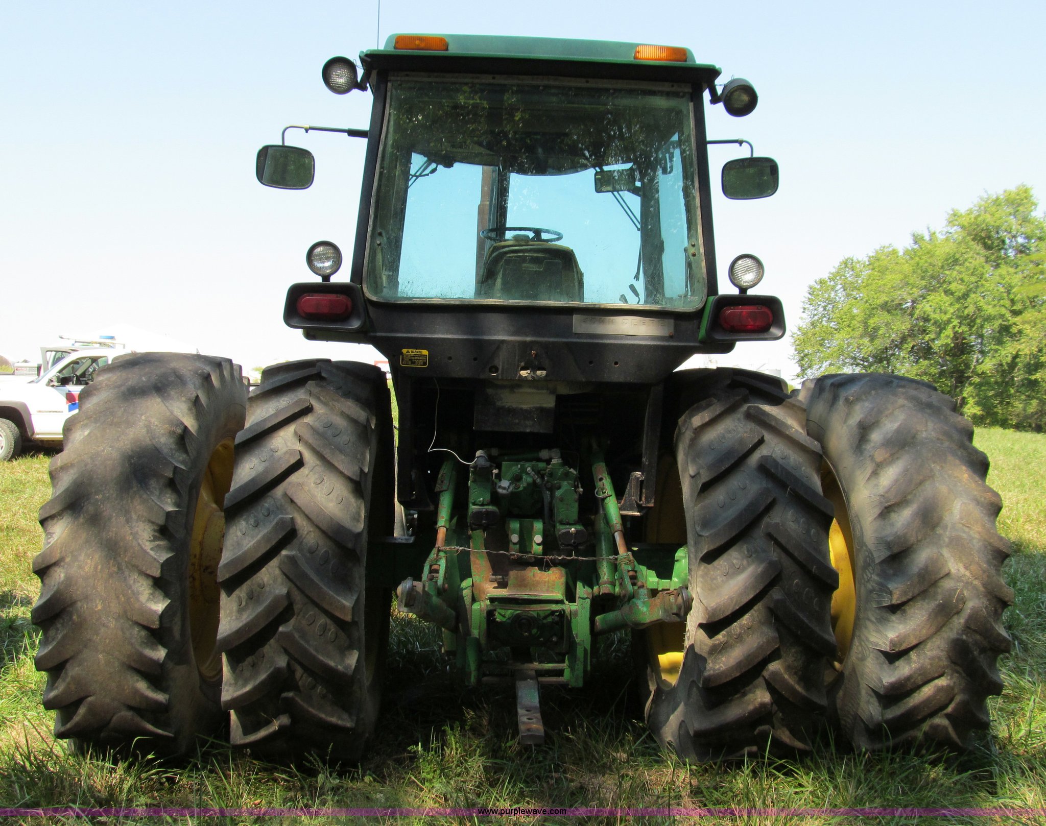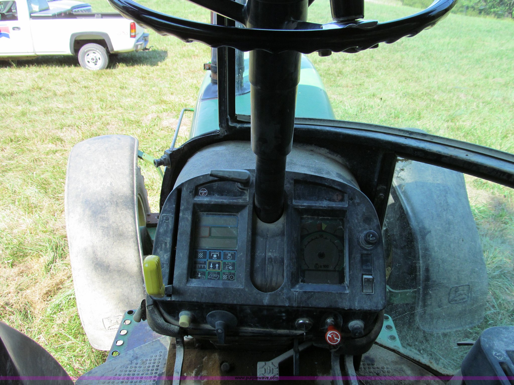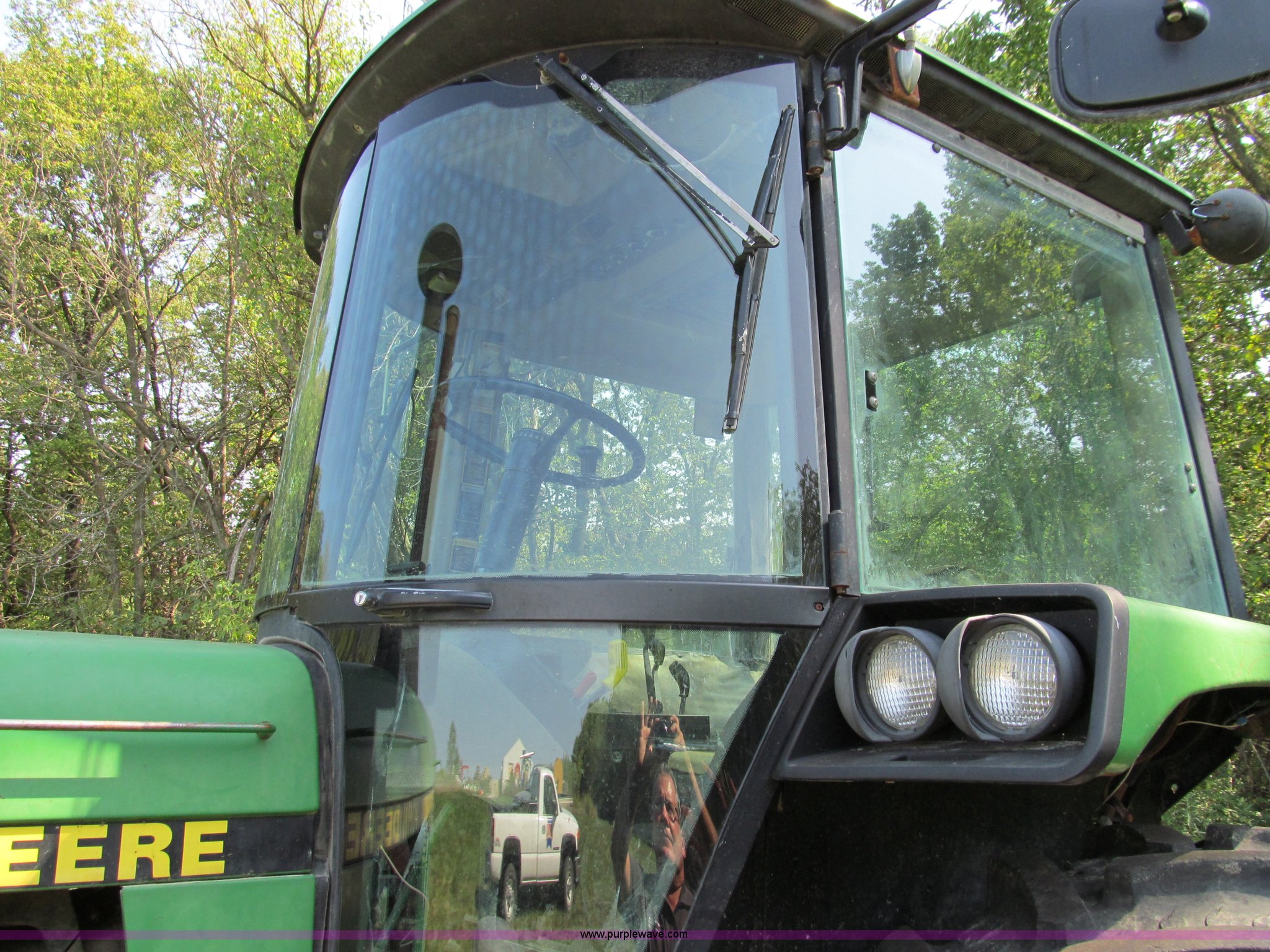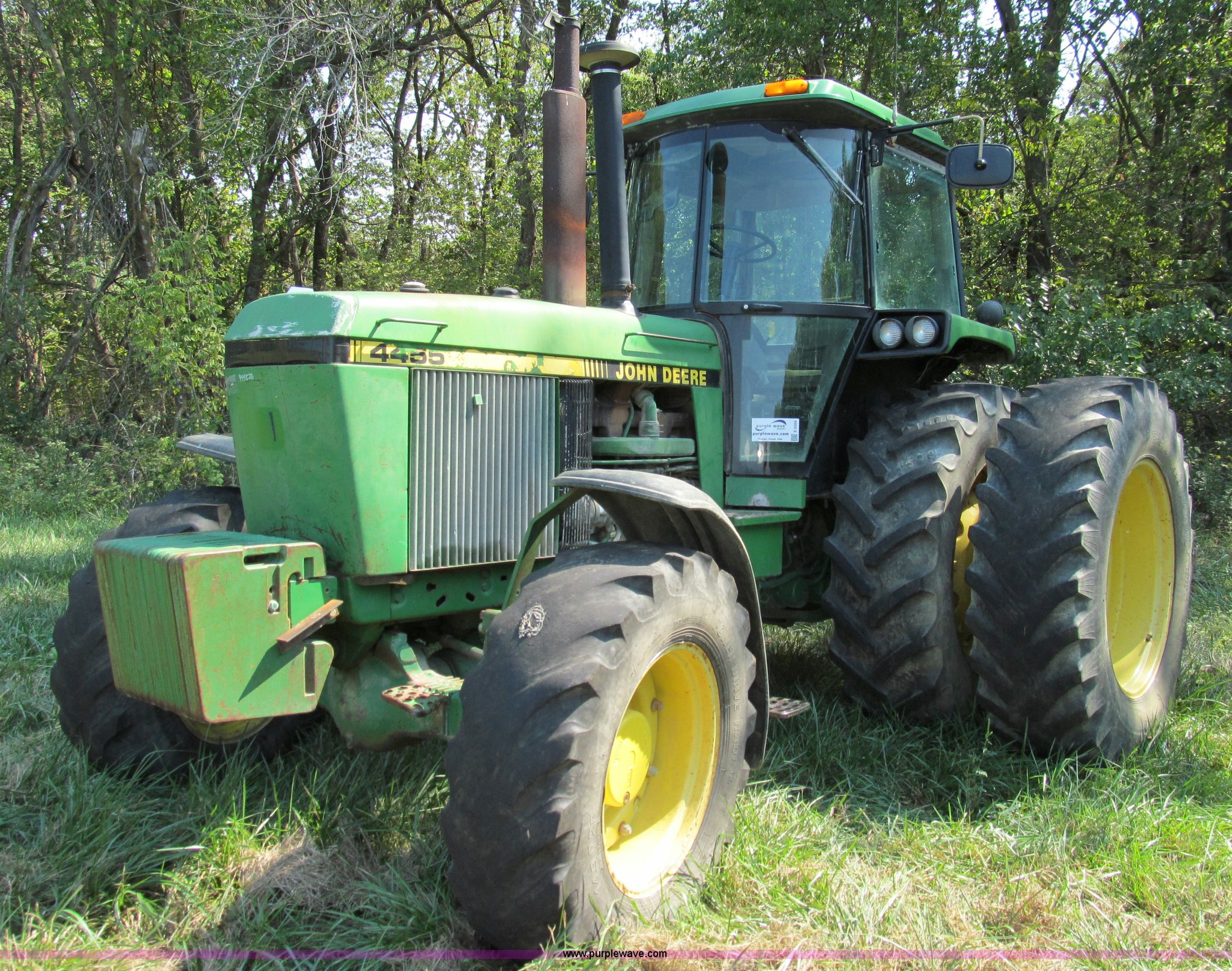 Purple Wave is selling a used Tractor in Missouri. This item is a 1989 John Deere 4455 MFWD tractor with the following: 7,985 hours on meter, John Deere six cylinder diesel engine, 150 HP, Model 6076TRW04, Serial RG6076T168501, Powershift transmission, 15F-4R gears, AC and heat, AM/FM, Air seat, Tilt steering wheel, Front fenders, Three point, Draw bar, Auxiliary outlet, 540/1000 PTO, (2) rear hydraulic remote sets, 38 gallon fuel tank, (14) suitcase weights, 14.9R16 front tires, 18.4R38 rear tires, duals, Serial RW4455P020467, Unit# 10