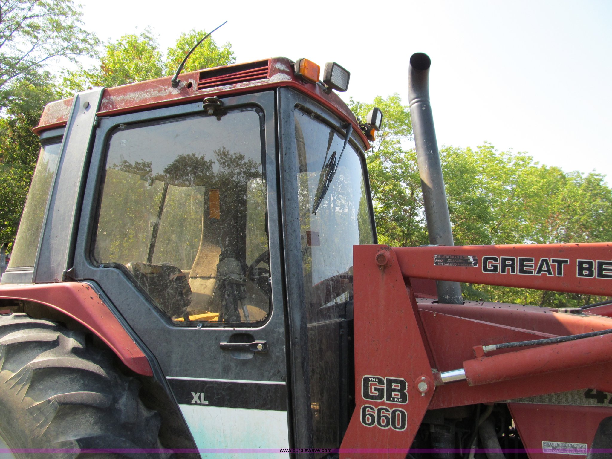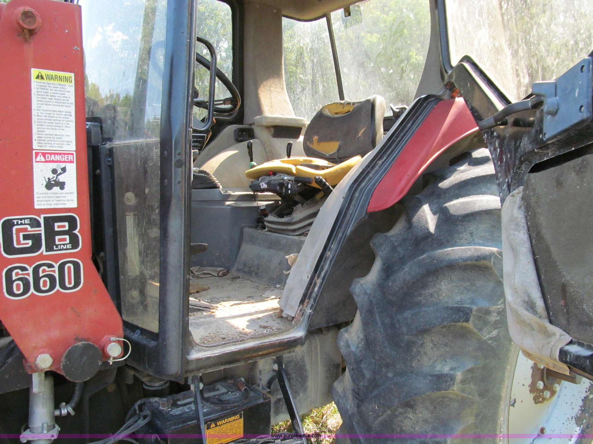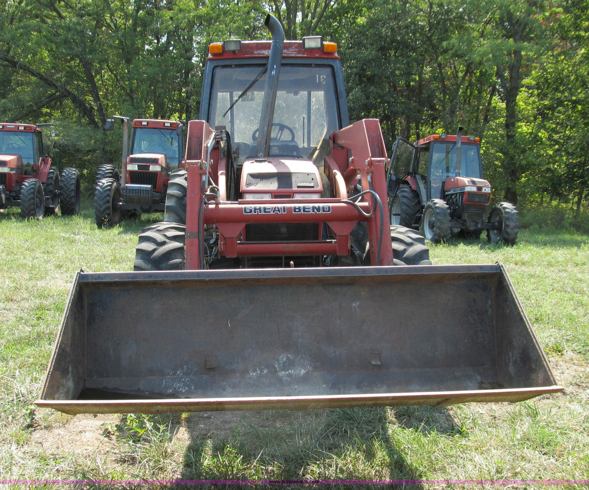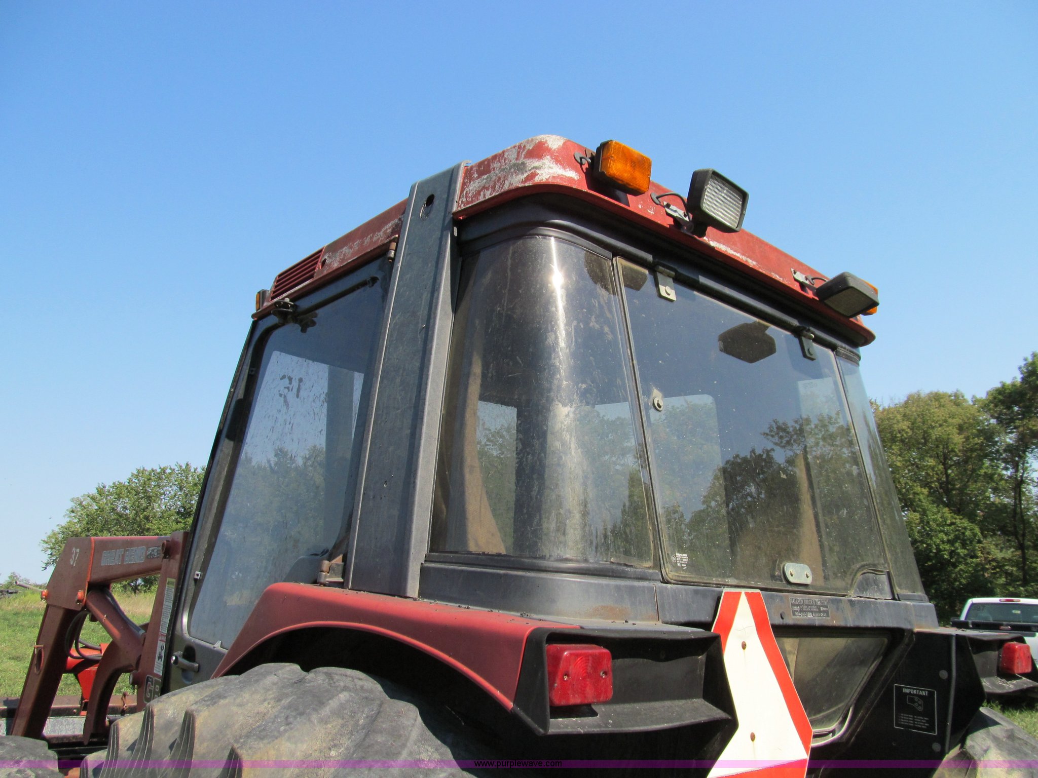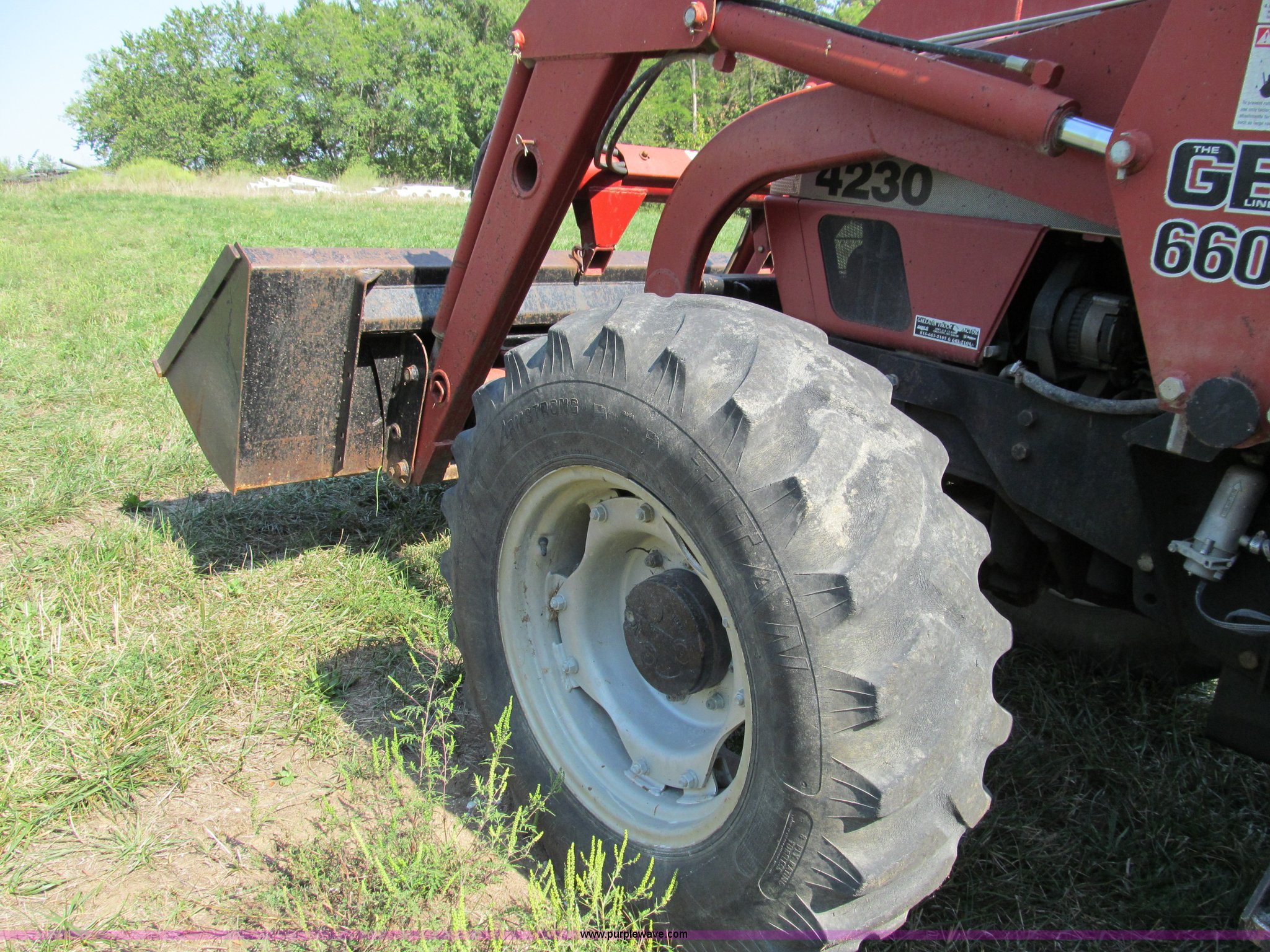 Purple Wave is selling a used Tractor in Missouri. This item is a 1996 Case IH 4230 MFWD tractor with the following: Four cylinder diesel engine, 84 HP, Serial 295920, Manual transmission, Modified shift forward and reverse, AC and heat, Spring seat, Great Bend 6600 loader, 84"W, Joystick control, Unit# 37, Three point, Draw bar, 540/1000 PTO, (2) sets of rear hydraulic remotes, 13.6-24 front tires, 18.4-34 rear tires, Missing stereo, Serial 4230AXLJJE0918902, Unit# 18