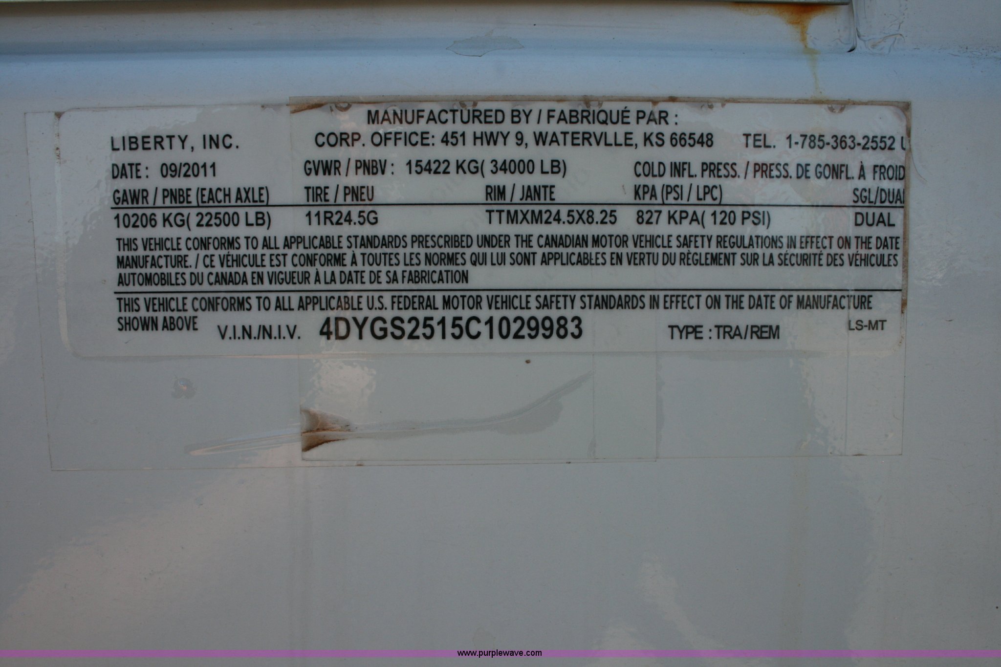 Purple Wave is selling a used Grain or Commodity Trailer in Oklahoma. This item is a 2011 Travalong Liberty 25' hopper trailer with the following: 8'W, 11R24.5 tires, GVWR 34,000 lbs, GAWR 22,500 lbs