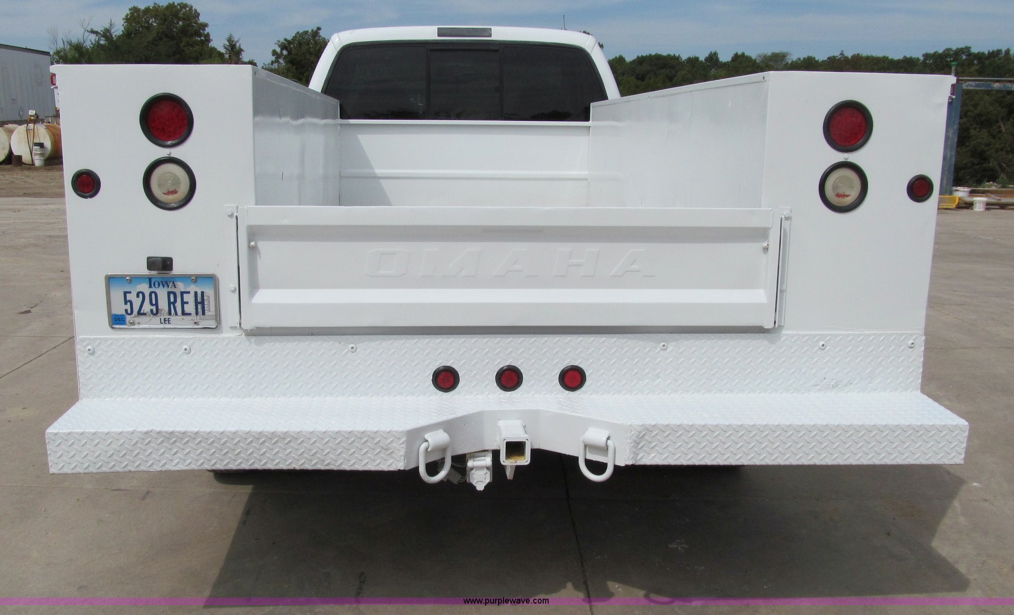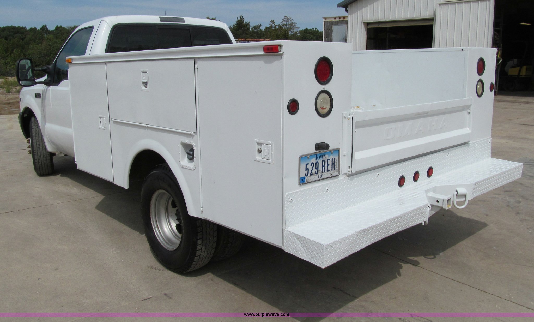 Purple Wave is selling a used Passenger Vehicle in Iowa. This item is a 2000 Ford F350 XL Super Duty service truck with the following: 217,986 miles on odometer, 6.8L V10 gas engine, Five speed manual transmission, AC and heat, AM/FM/CD, Manual windows and locks, Extendable side mirrors, Cloth interior, Brake controller, Omaha 9' utility body, Bumper, Receiver hitch, Trailer wiring, 144" wheelbase, LT235/85R16 tires