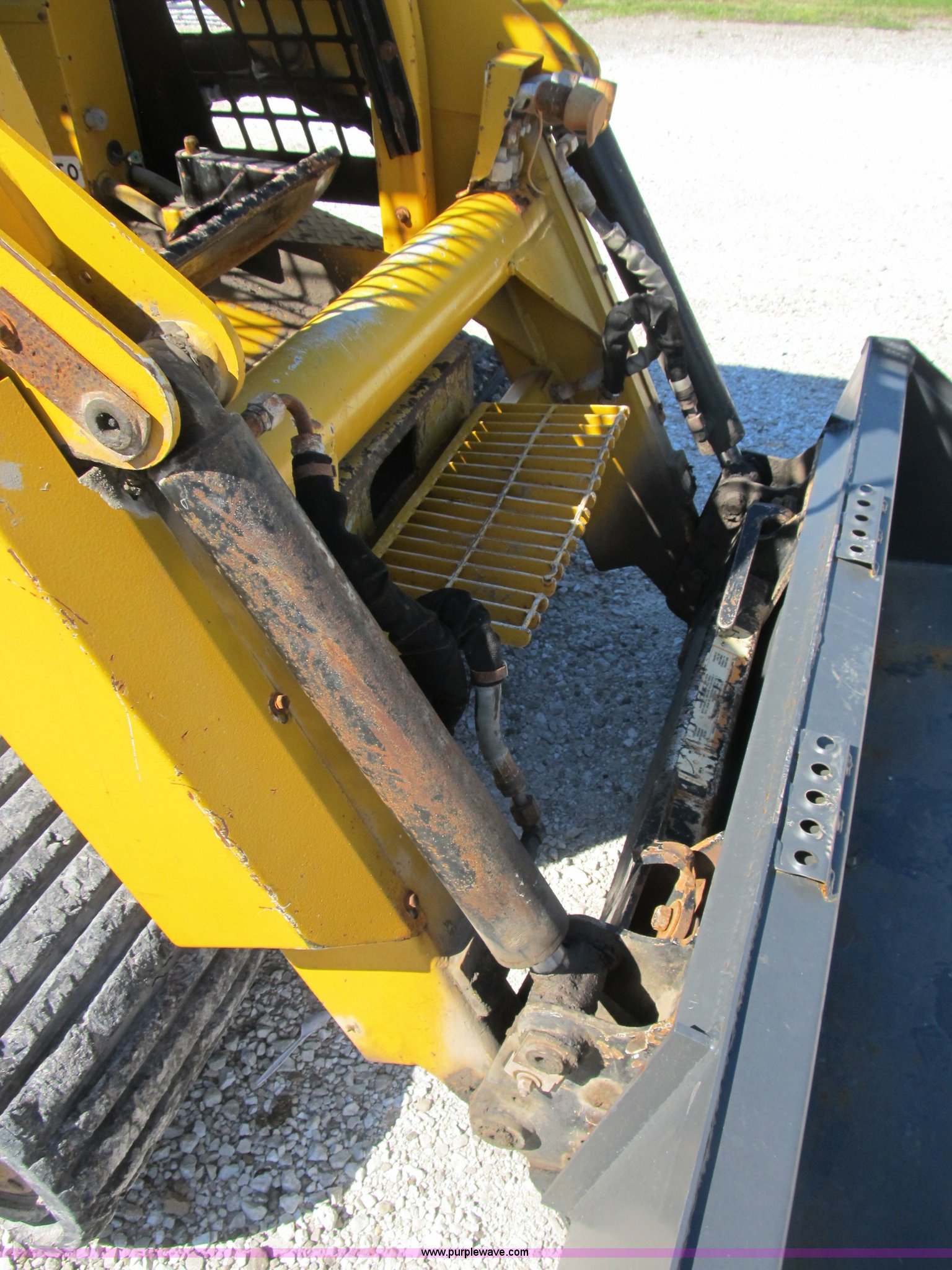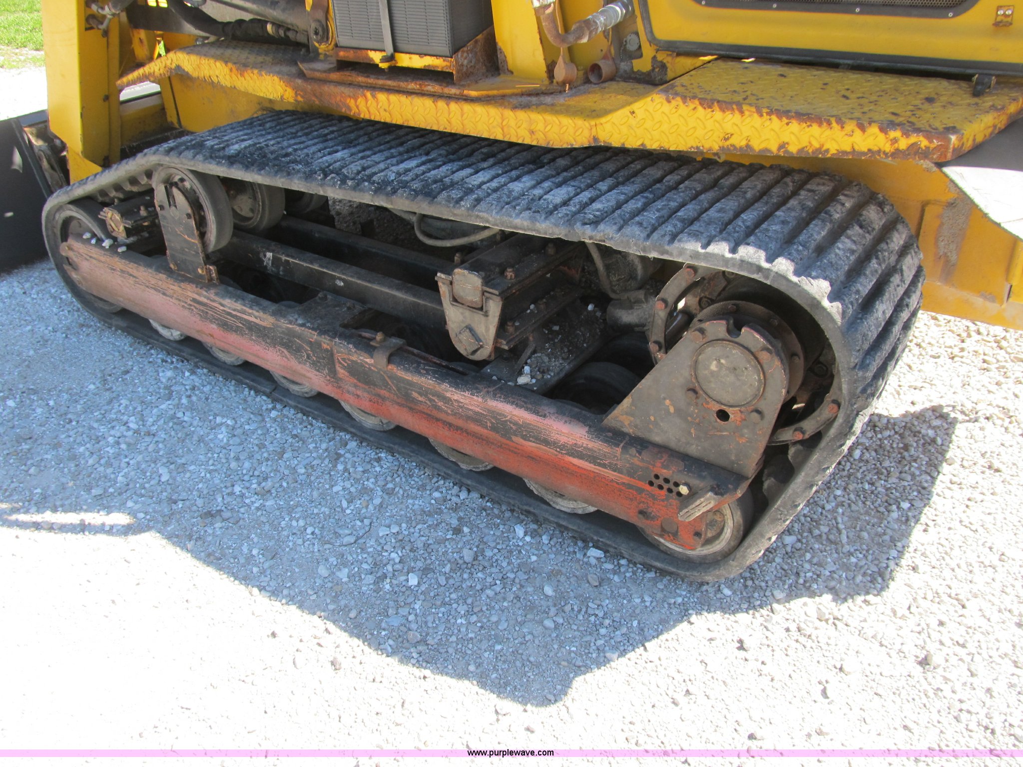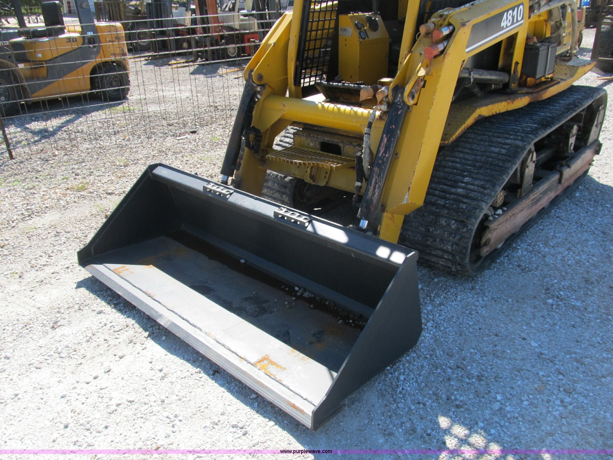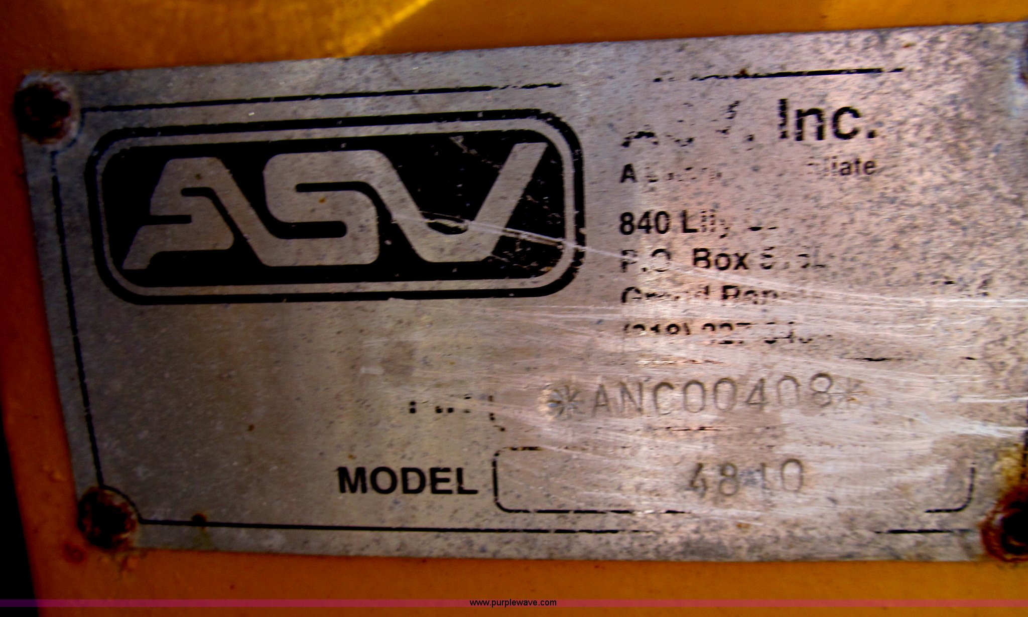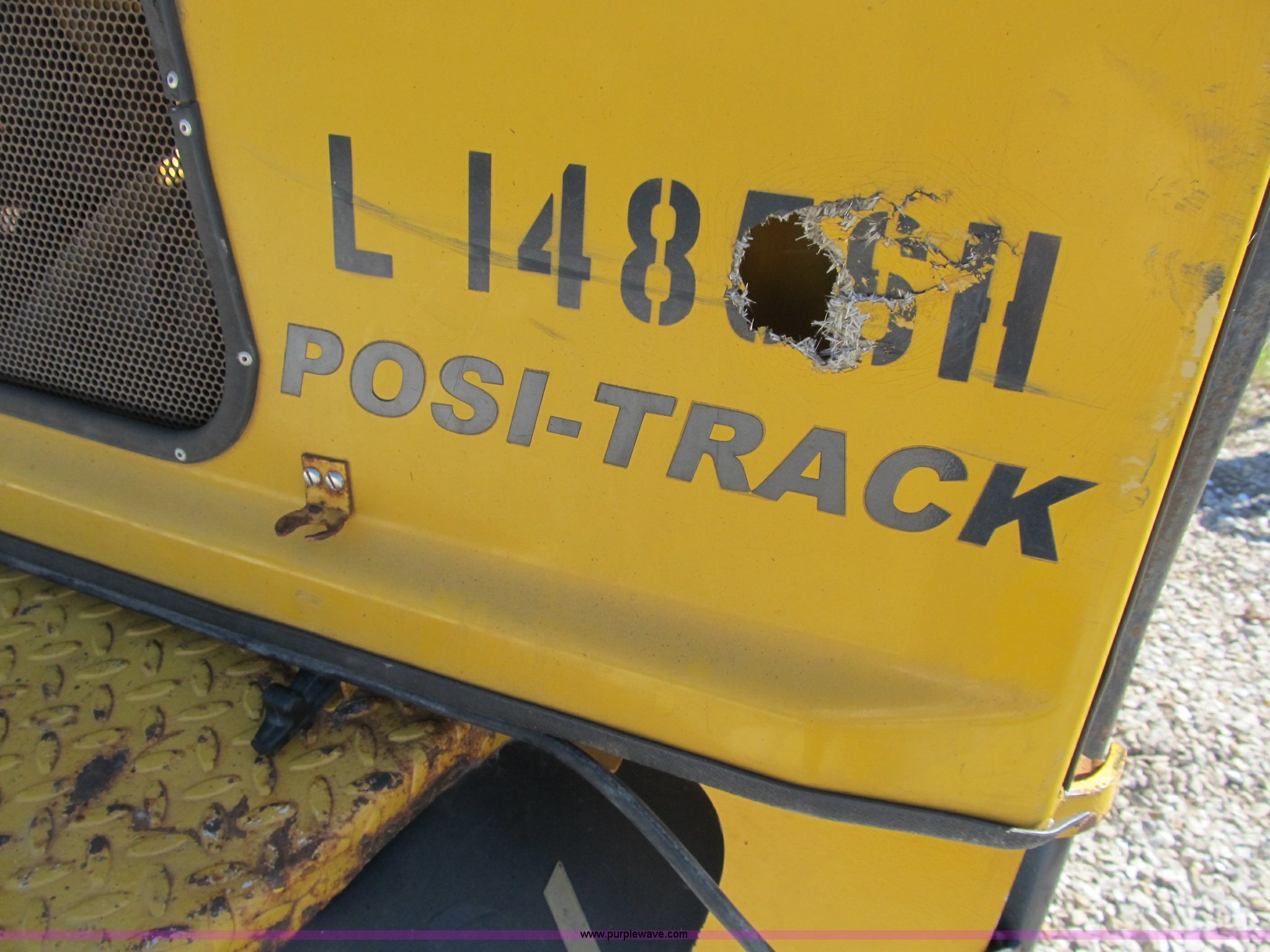 Purple Wave is selling a used Tracked Skid Steer Loader in Illinois. This item is a ASV 4810 Posi-Track track skid steer with the following: 220 hours on meter, Caterpillar 3054T four cylinder turbo diesel engine, 105 HP, Joystick controls, OROPS, (5) front auxiliary hydraulics, Loflin 72" low profile smooth bucket, Model 72LFLP, Serial 0412093, Universal quick attach, Receiver hitch, 18"W rubber tracks, Recently replaced drive components on left side, Planetary gear, bearings, and more, Right side tracks are torn, Serial ANC00408