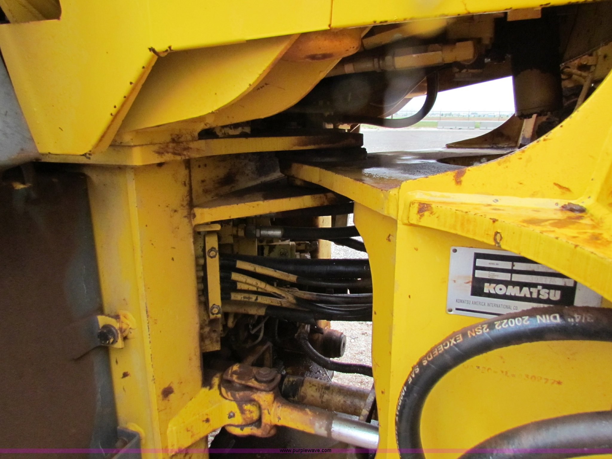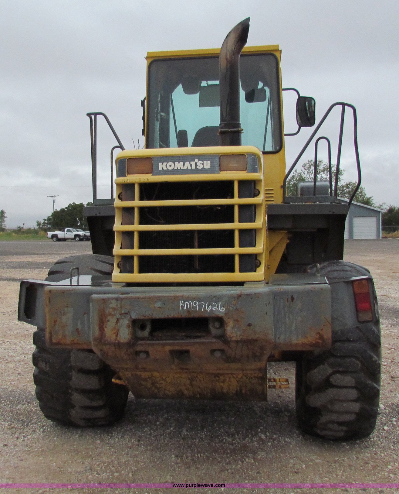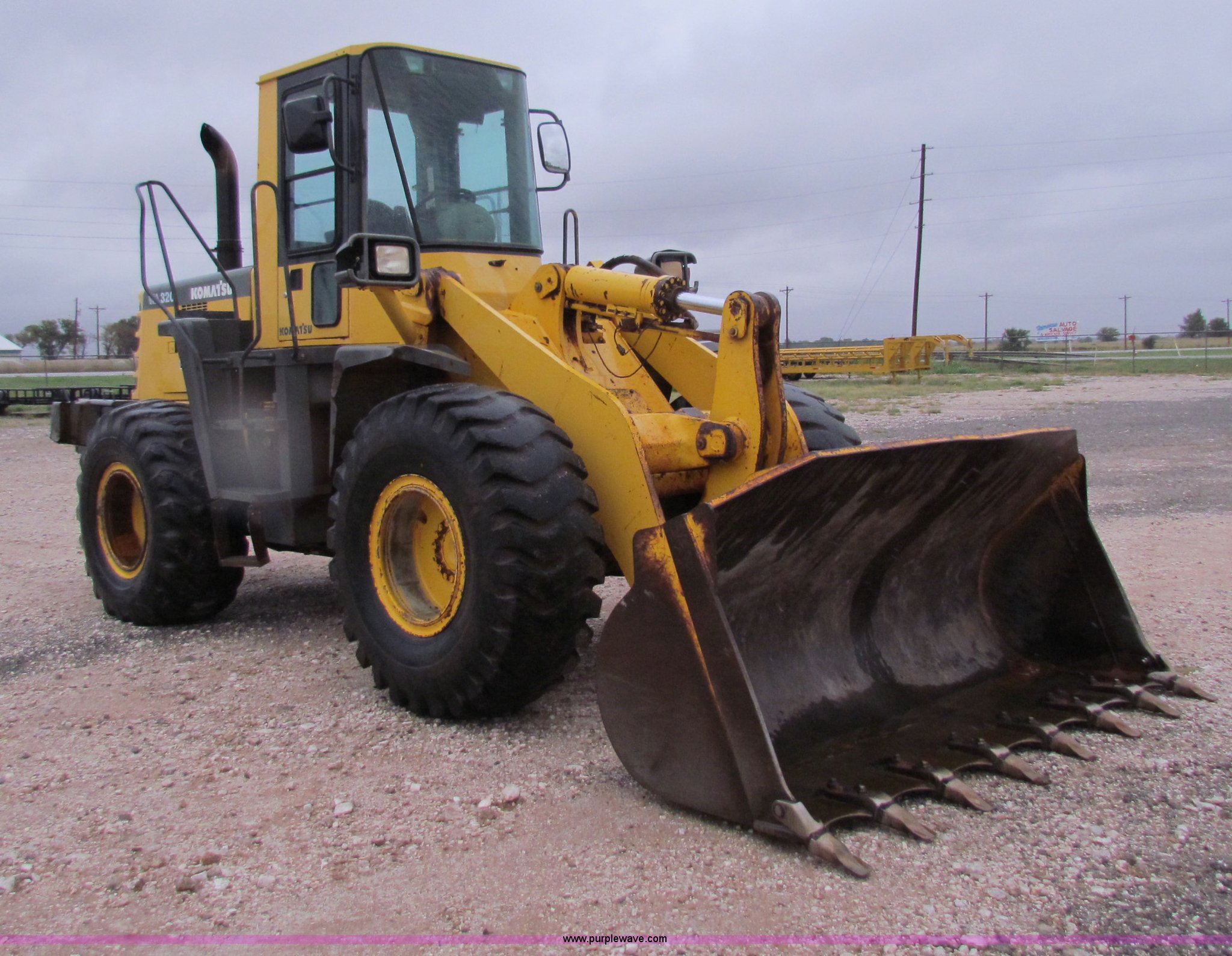 Purple Wave is selling a used Wheel Loader in Oklahoma. This item is a Komatsu WA320-3MC wheel loader with the following: 9,944 hours on meter, Approx. 18,000 actual hours, Komatsu diesel engine, Automatic transmission, Enclosed cab, AC and heat, Ride control, Joystick loader control, 3.53 cu. yd. bucket, (8) teeth, Work lights, Rear counter weights, 20.5-R25 tires, 31,200 lbs. base operating weight, Serial 30277