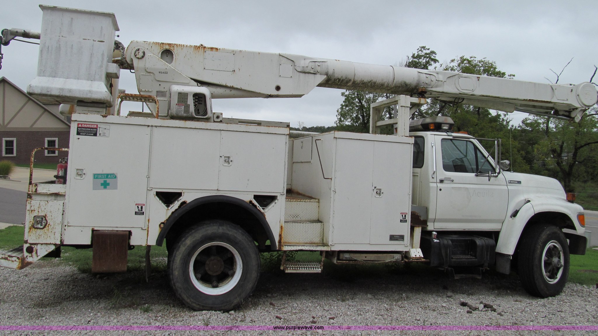 This 1995 Ford F800 bucket truck will sell to the highest bidder regardless of price.