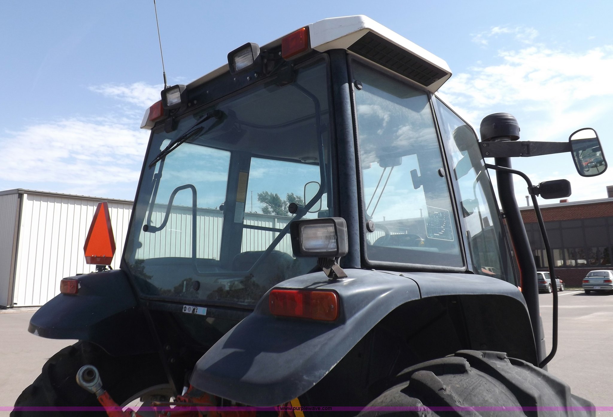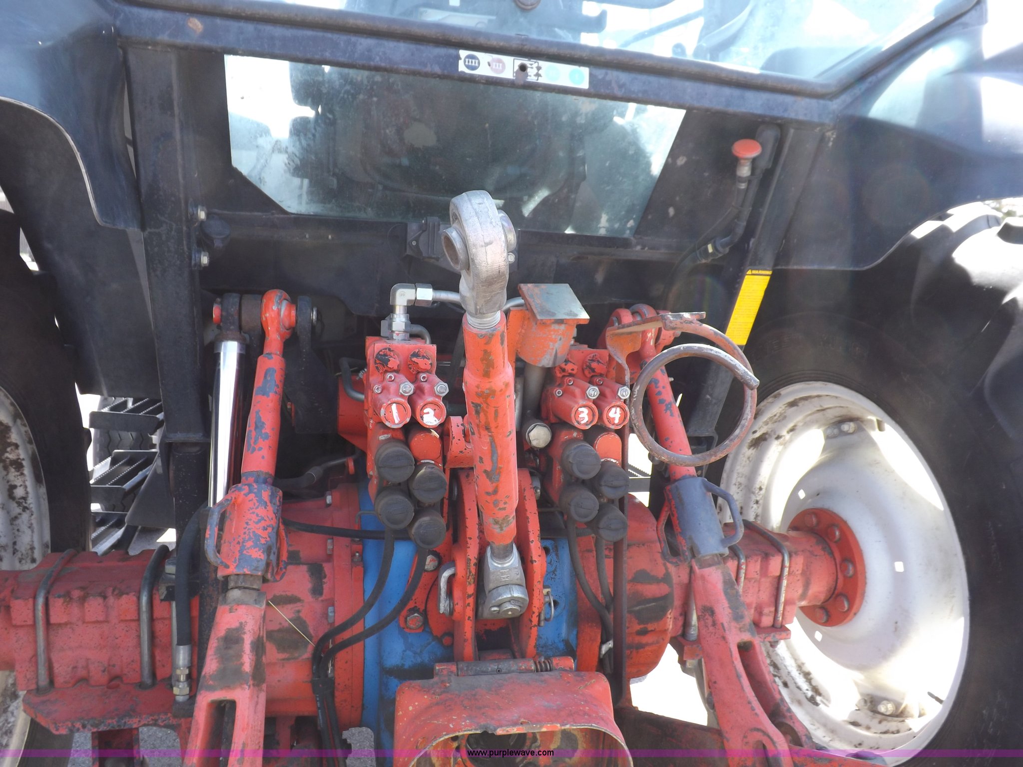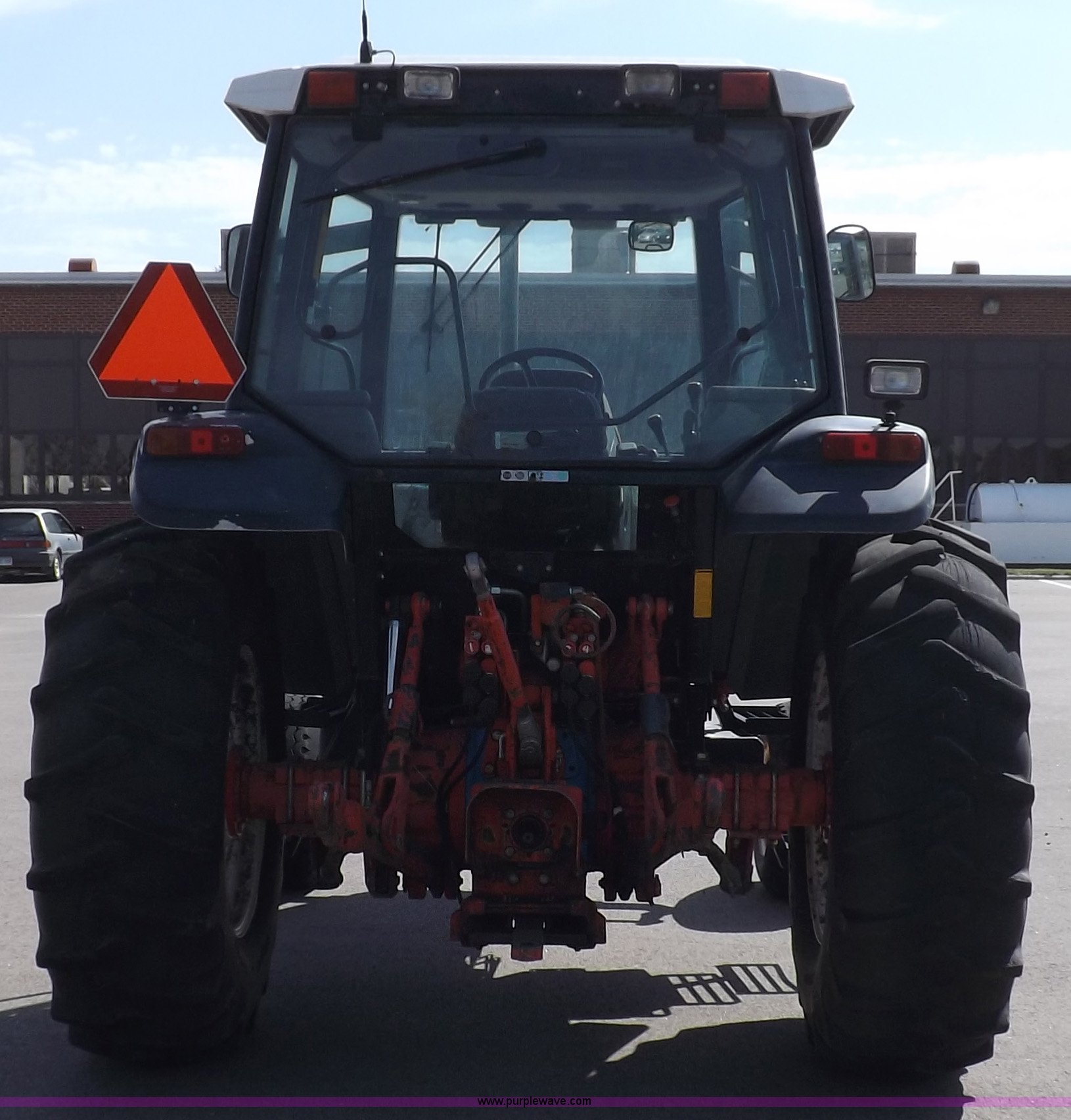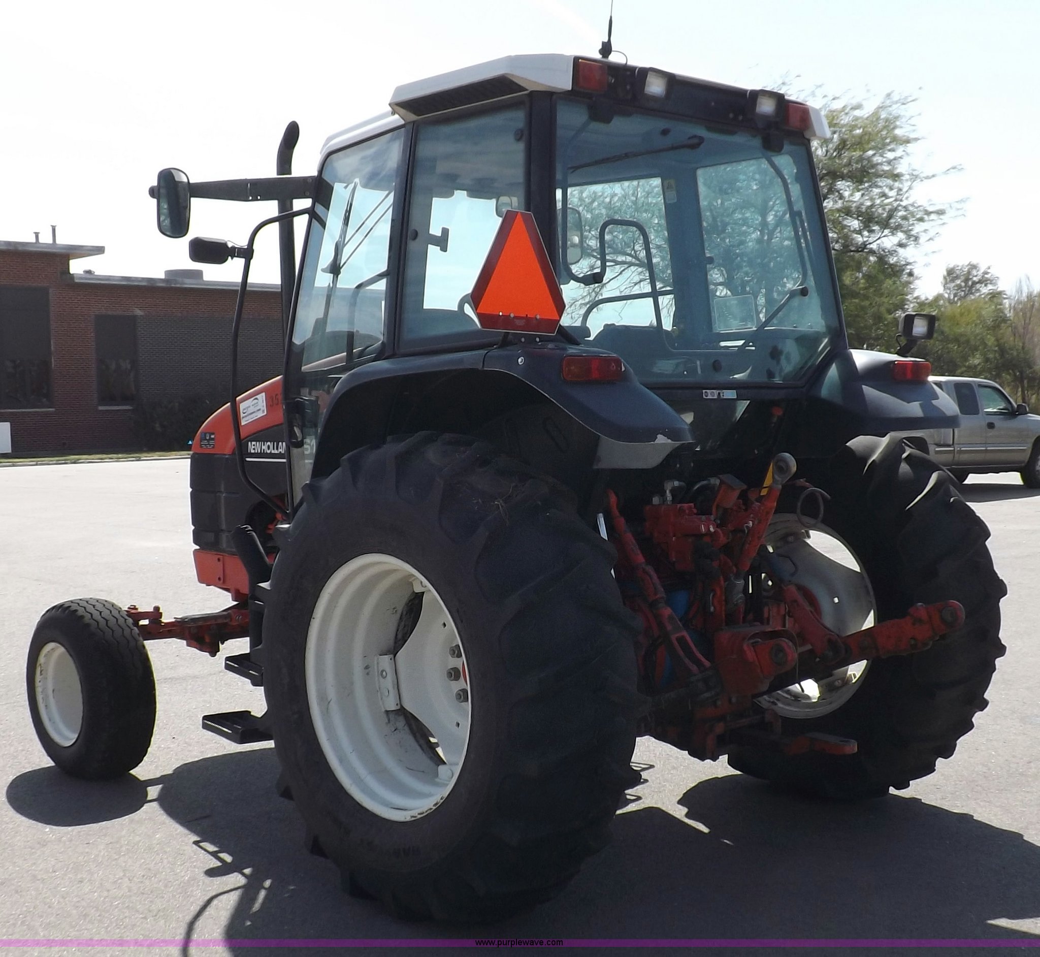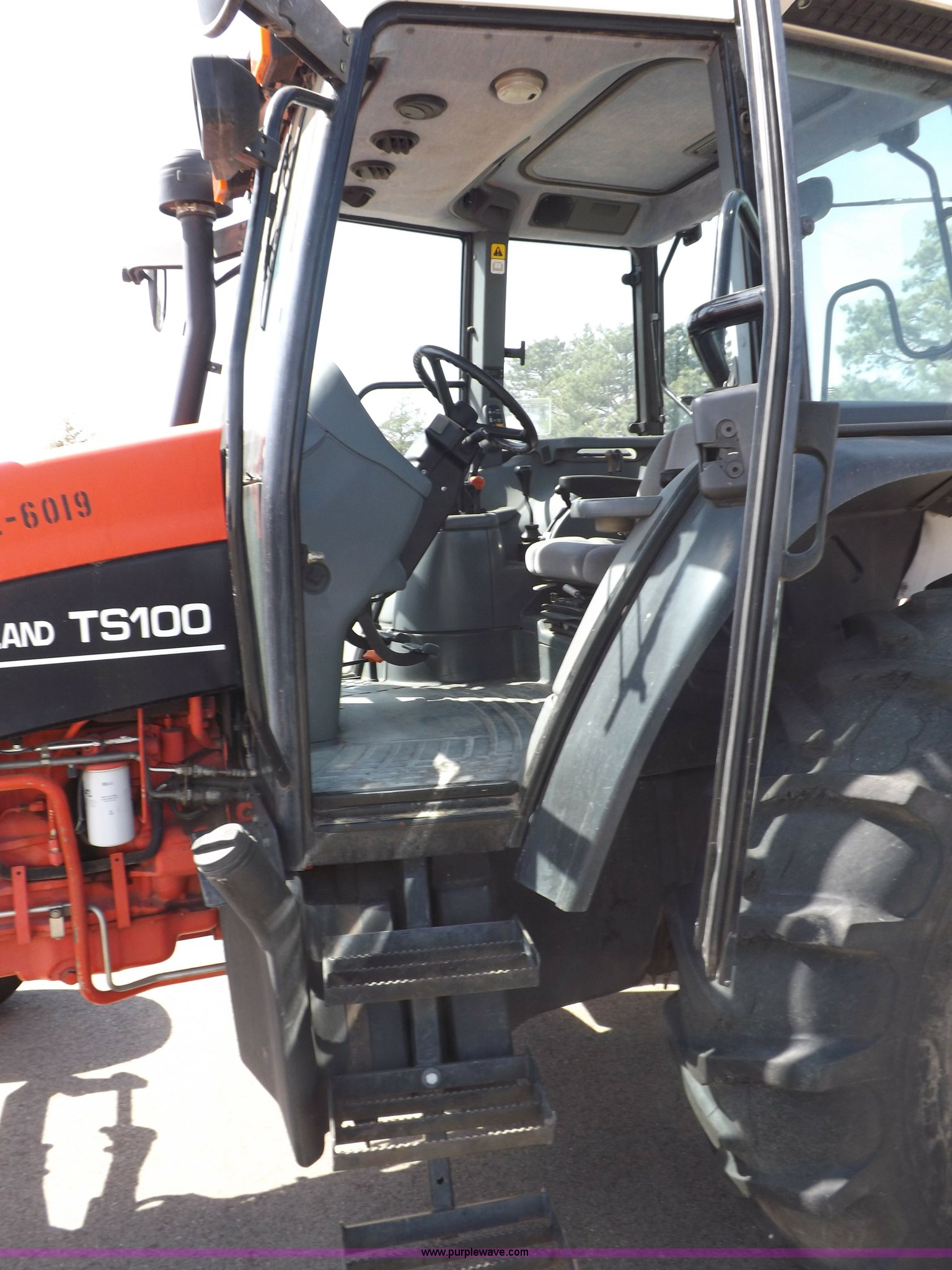 Purple Wave is selling a used Tractor in Kansas. This item is a 1999 New Holland TS100 tractor with the following: 4,985 hours on meter, Four cylinder turbo diesel engine, 80hp, 12 speed transmission, 12F-12R gears, Enclosed cab, AC and heat, AC inoperable, AM/FM, Tilt steering wheel, Suspension seat, Three point, 540 PTO, Draw bar, (4) sets of rear hydraulic remotes, Front and rear windshield wipers, Front and rear work lights, 92" wheelbase, 11L-16 tires, 18.4-30 rear tires, 8,664 lbs. base operating weight, Weak batteries, must be jump started, Serial 135568B, KDOT ID 352-6019