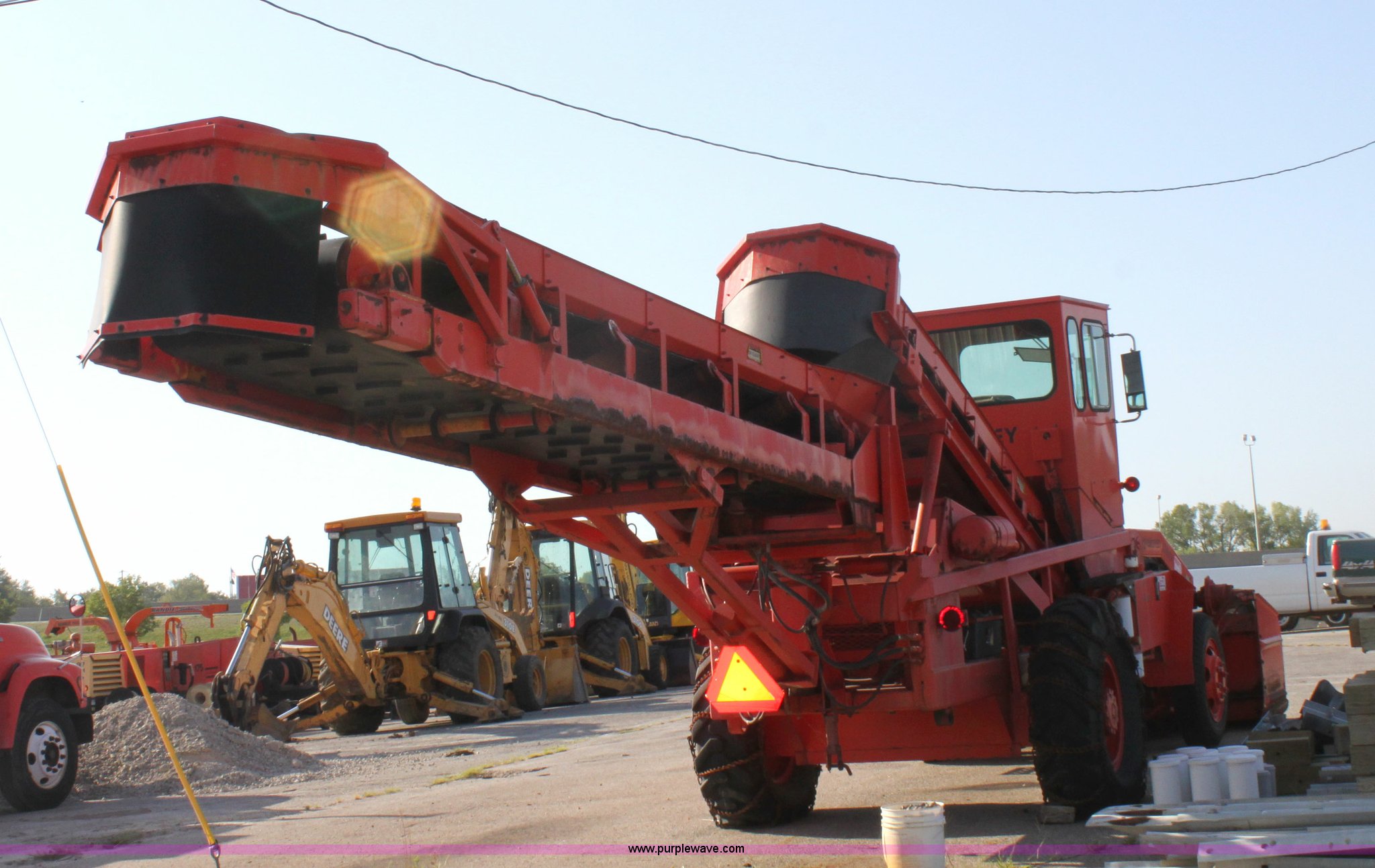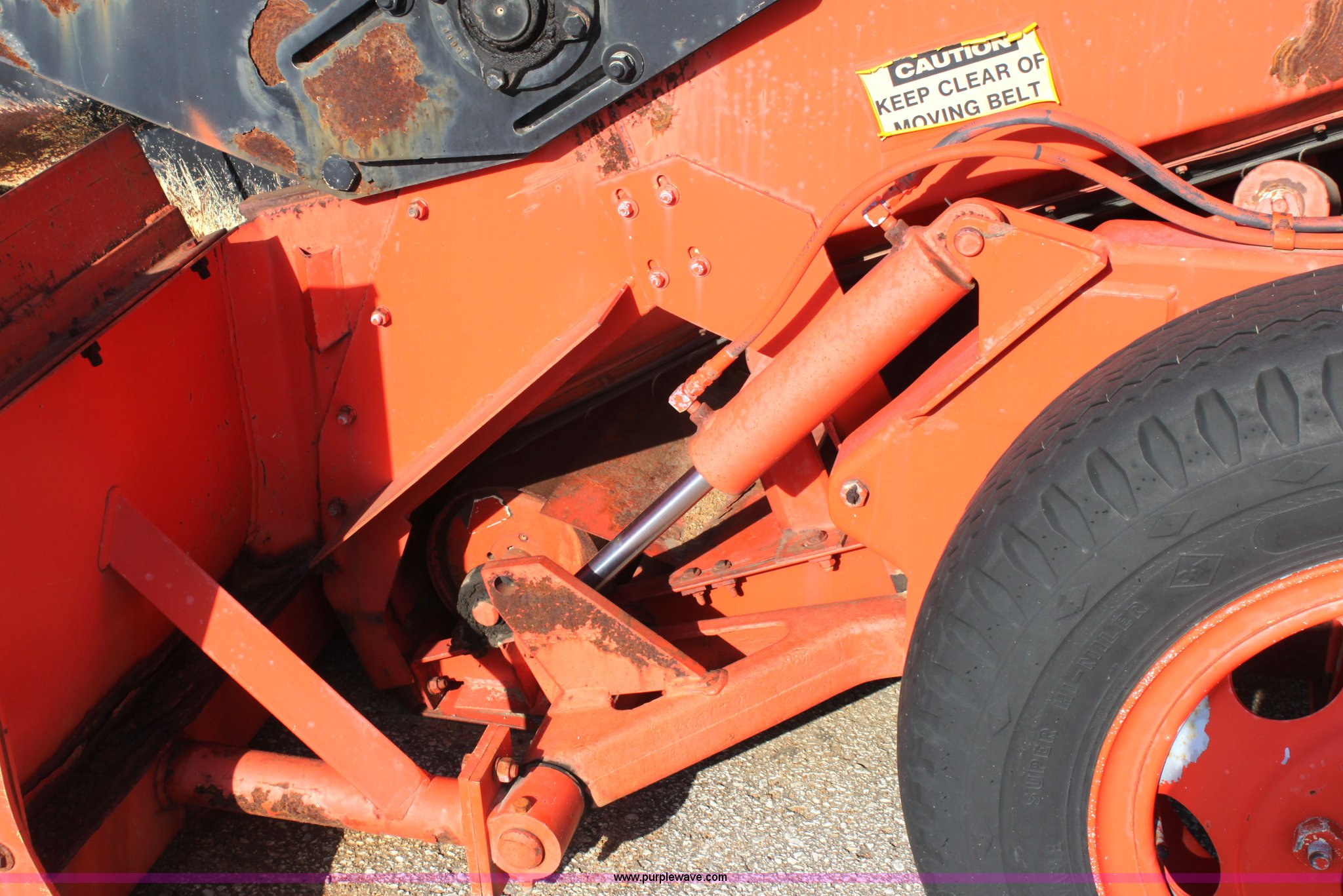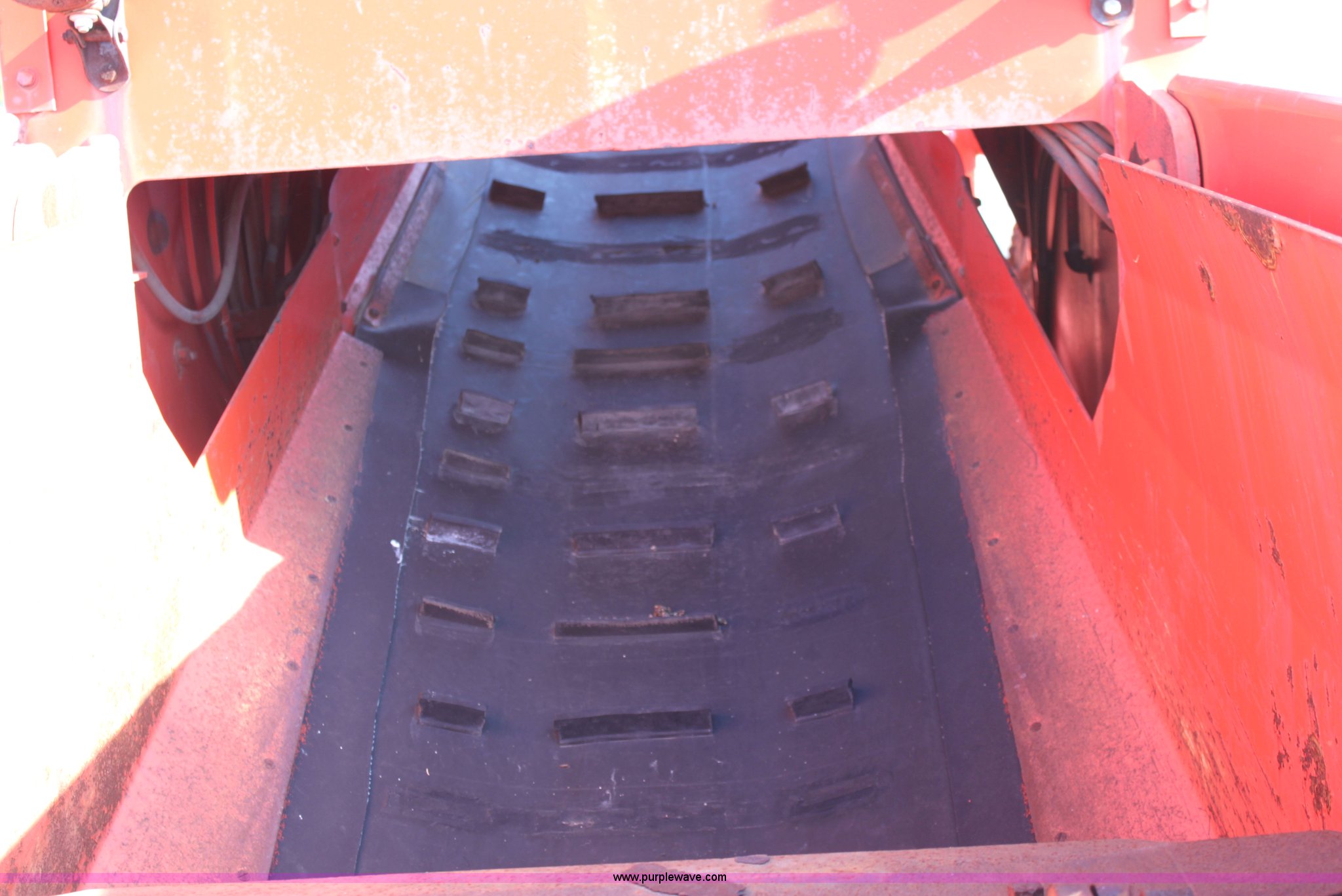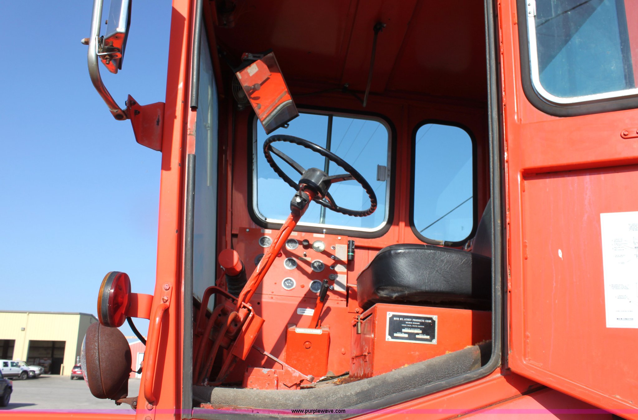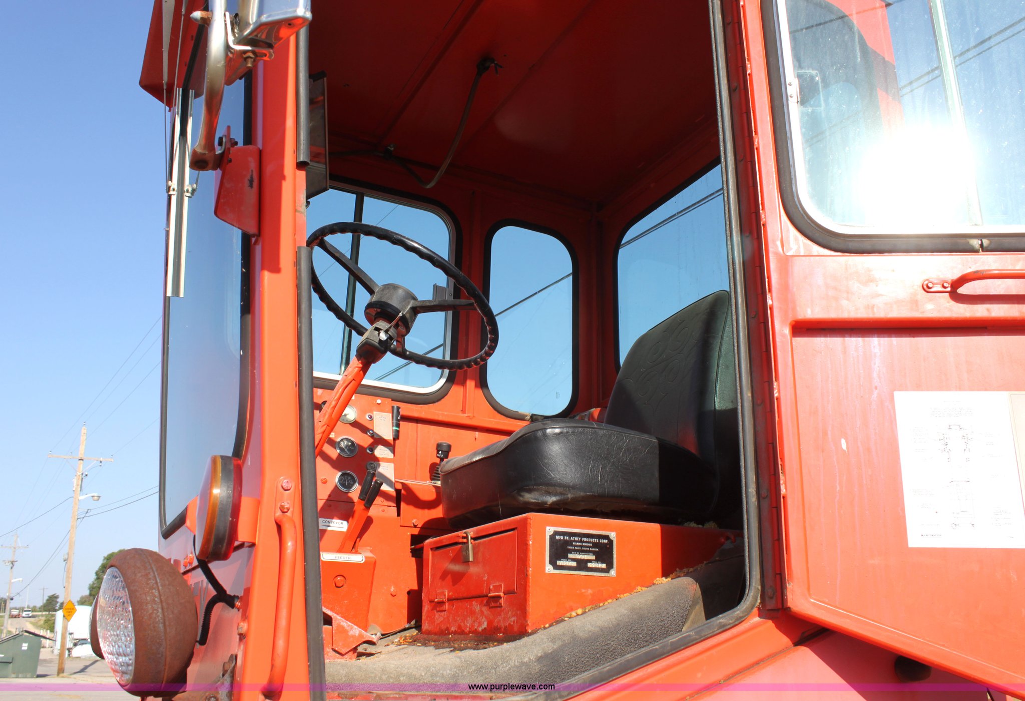Purple Wave is selling a used Windrow or Belt Placer in Kansas. This item is a 1991 Athey 7-125 force feed loader with the following: 192 hours on meter, John Deere four cylinder diesel engine, Two speed hydrostatic transmission, 17'L x 30" rear swivel conveyor, 20' x 30" front conveyor, Dual front augers, 37"L x 6"H front paddles, Heat, Front and rear work lights, Front windshield wiper, 8.25-20 front tires, 14-24 rear tires, Not ran in two years, Batteries need replaced, Serial 722816K, KDOT ID 374-1021
