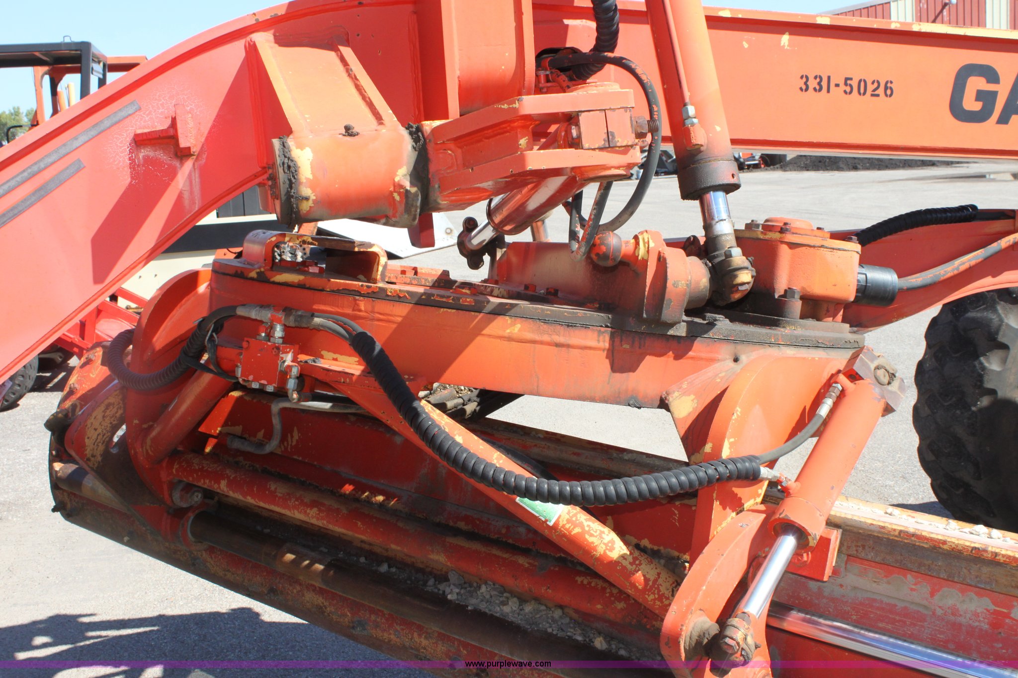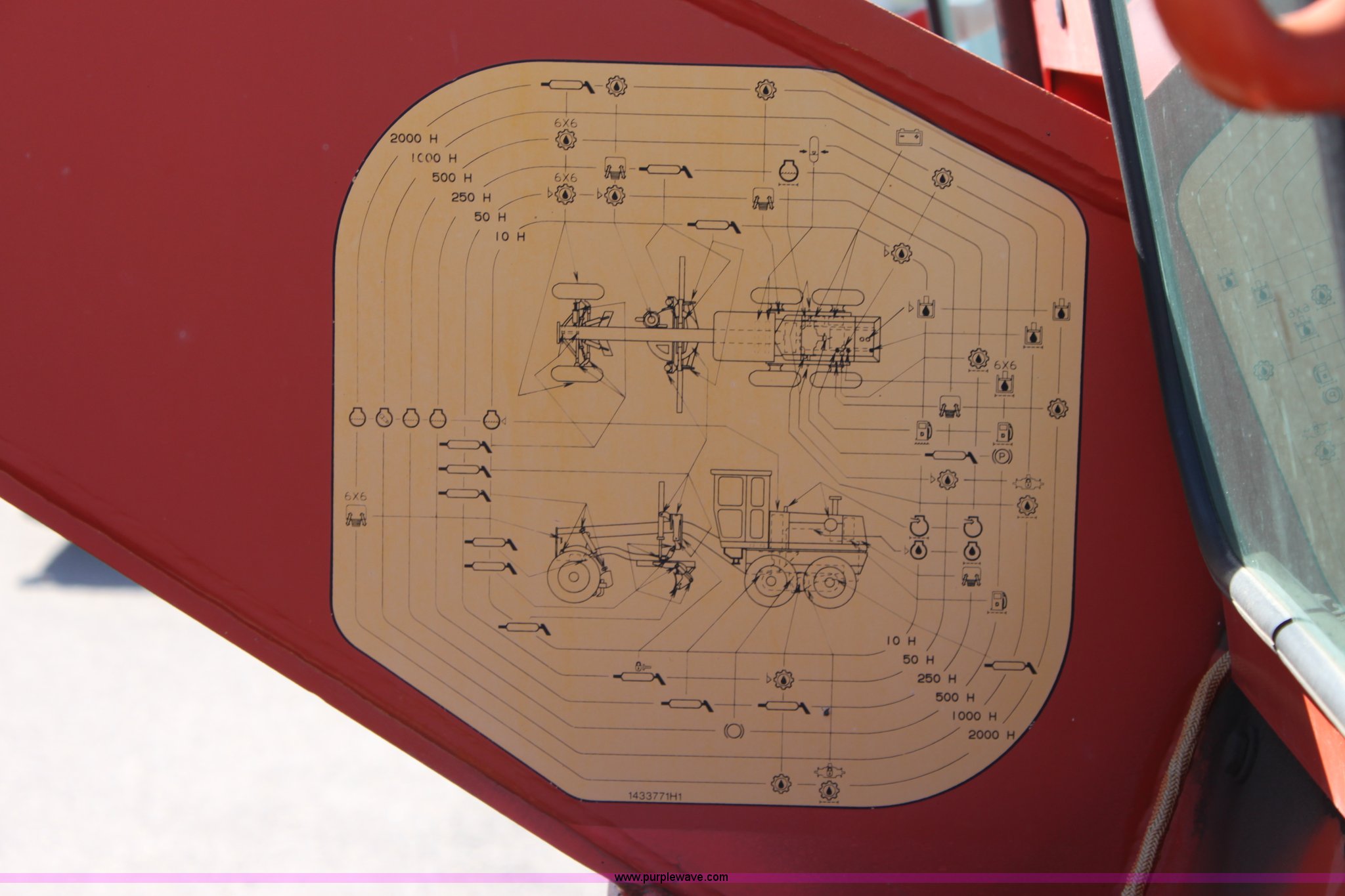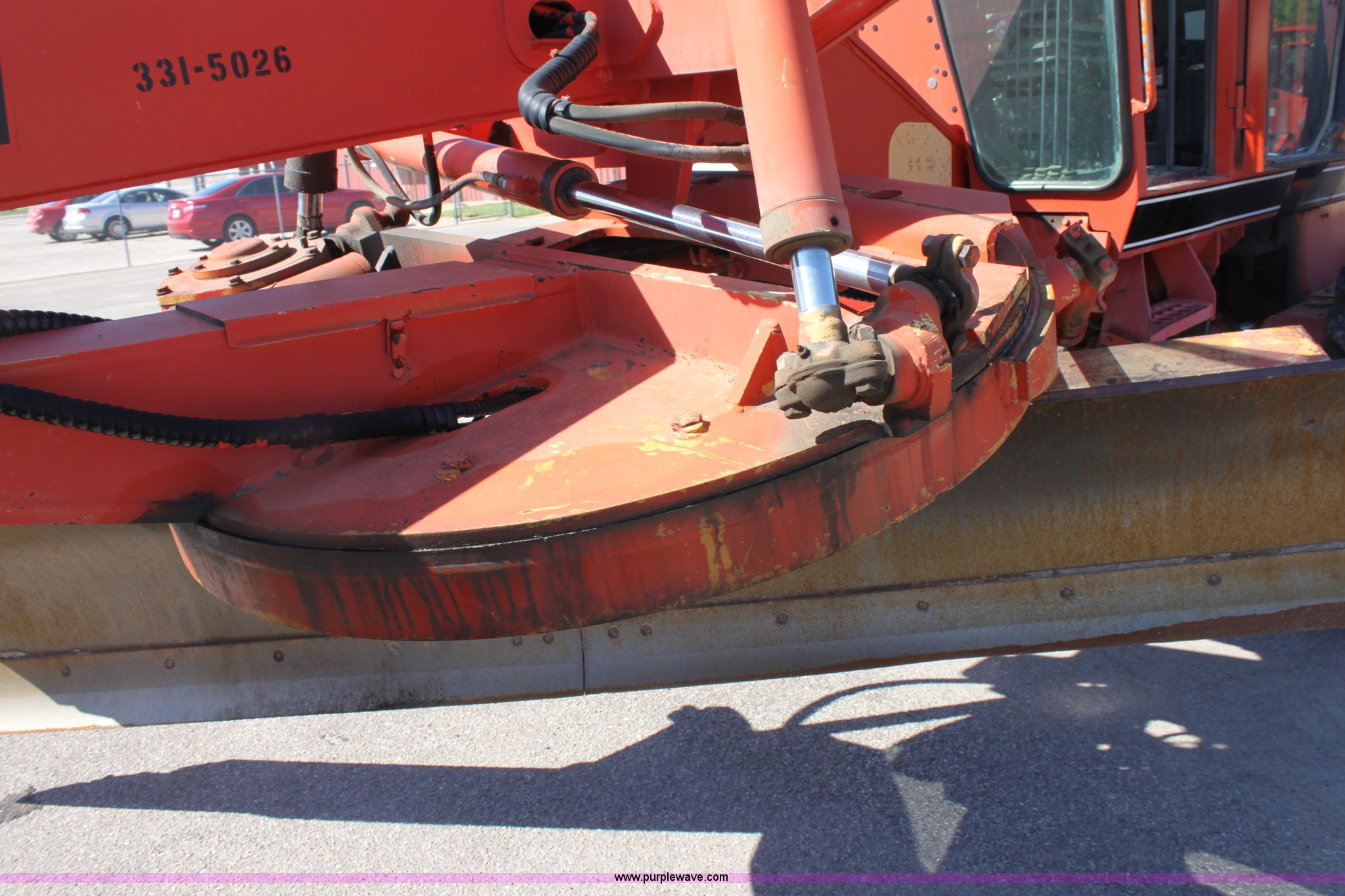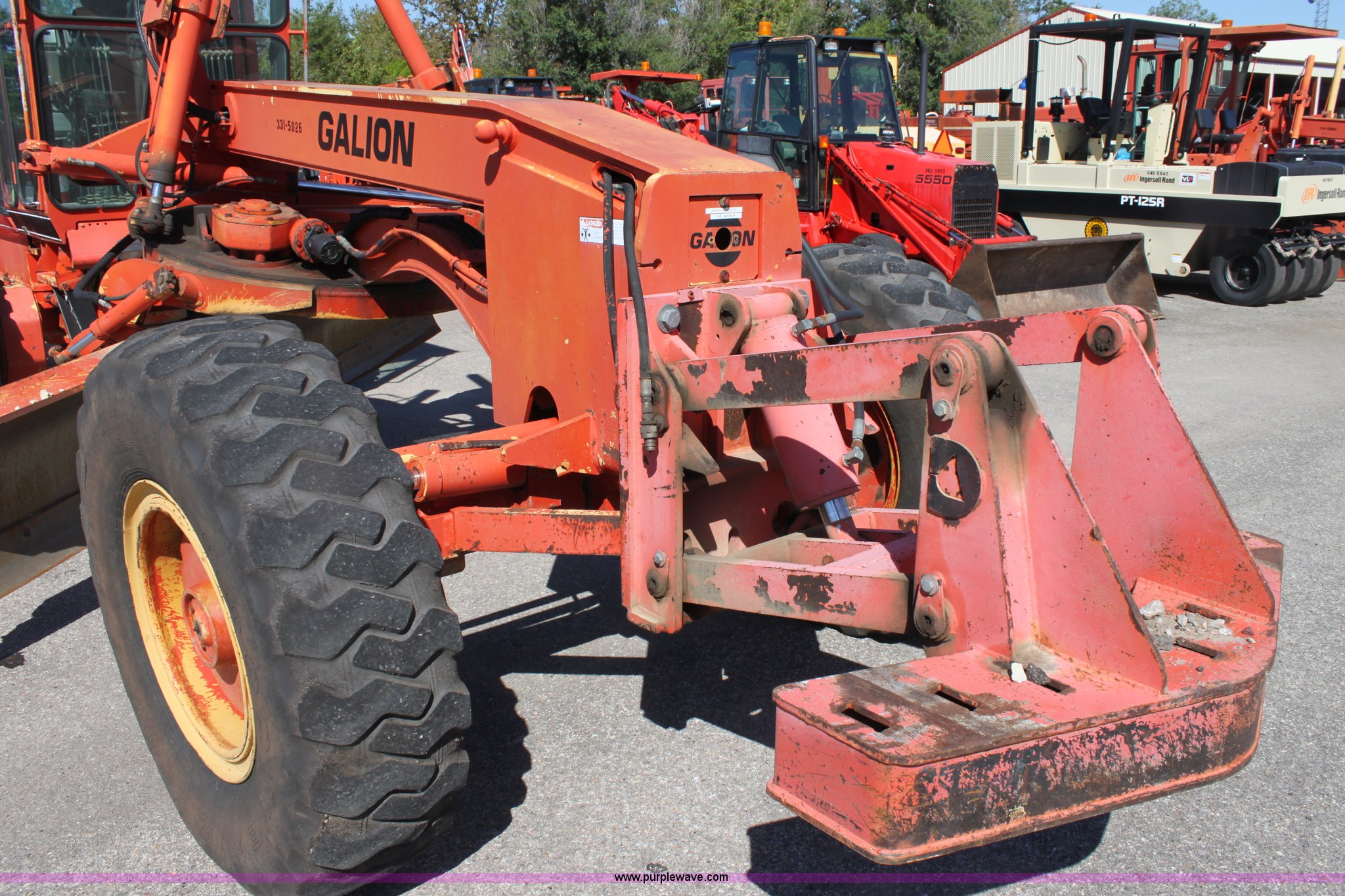 Purple Wave is selling a used Motor Grader in Kansas. This item is a 1996 Galion 830B motor grader with the following: 2,884 hours on meter, Cummins 5.9L diesel engine, Serial 45387556, Manual transmission, 6F-3R gears, AC and heat, AM/FM, Suspension seat, Tilt stick, Front and rear windshield wipers, Front and rear work lights, 12' moldboard with snow wing, Snow wing not attached, Dymax DES-MG nine tooth front scarifier, Missing teeth, 14.00-24 tires, Serial G380020U202903, KDOT ID 331-5026