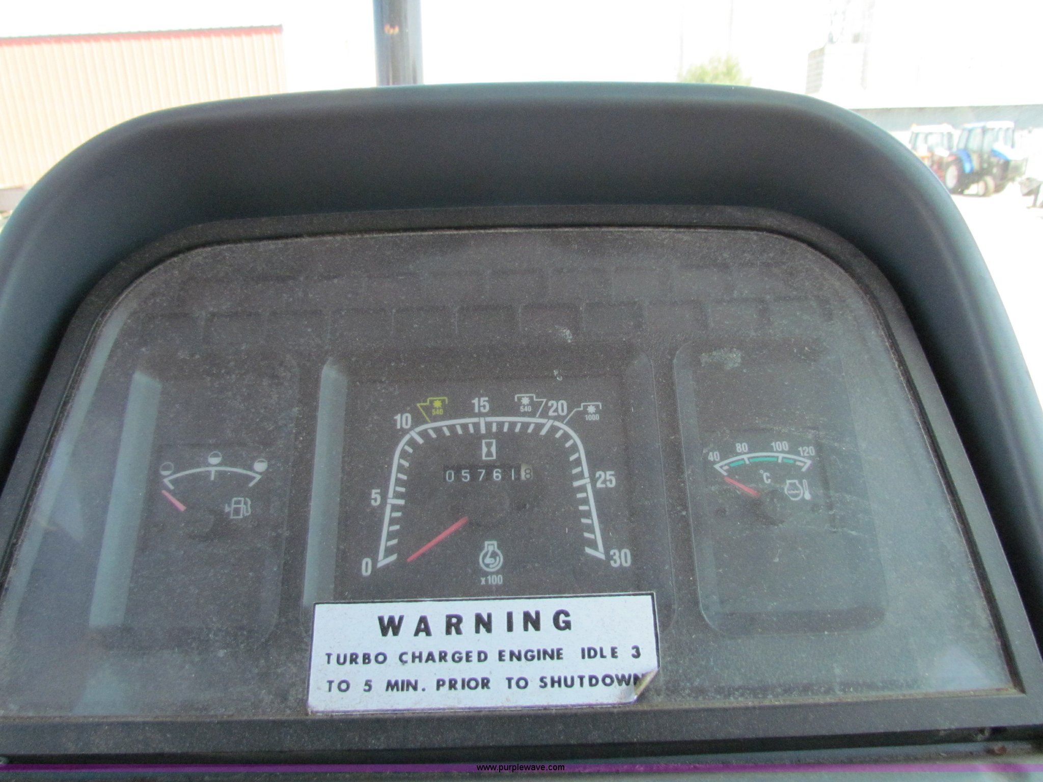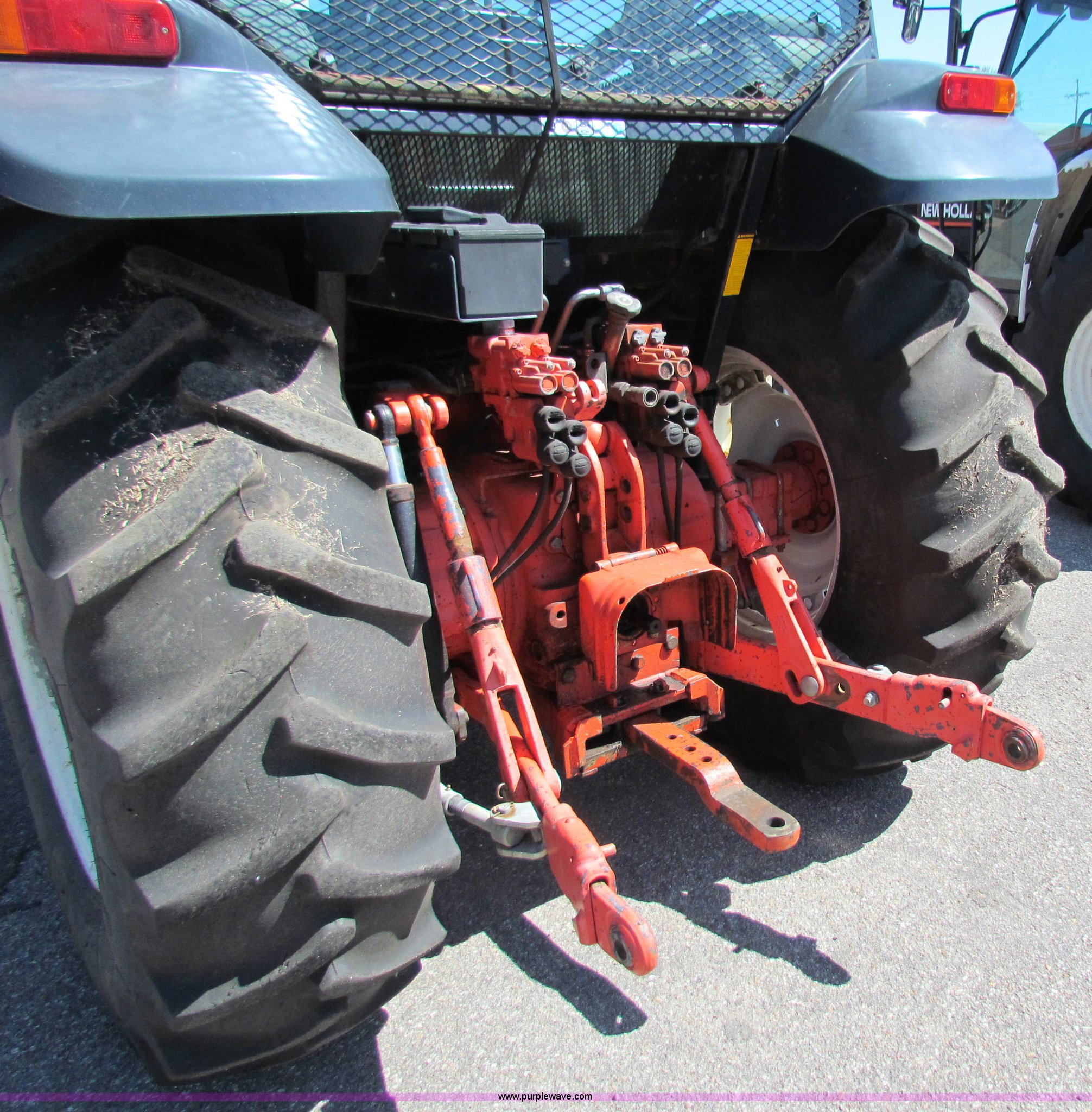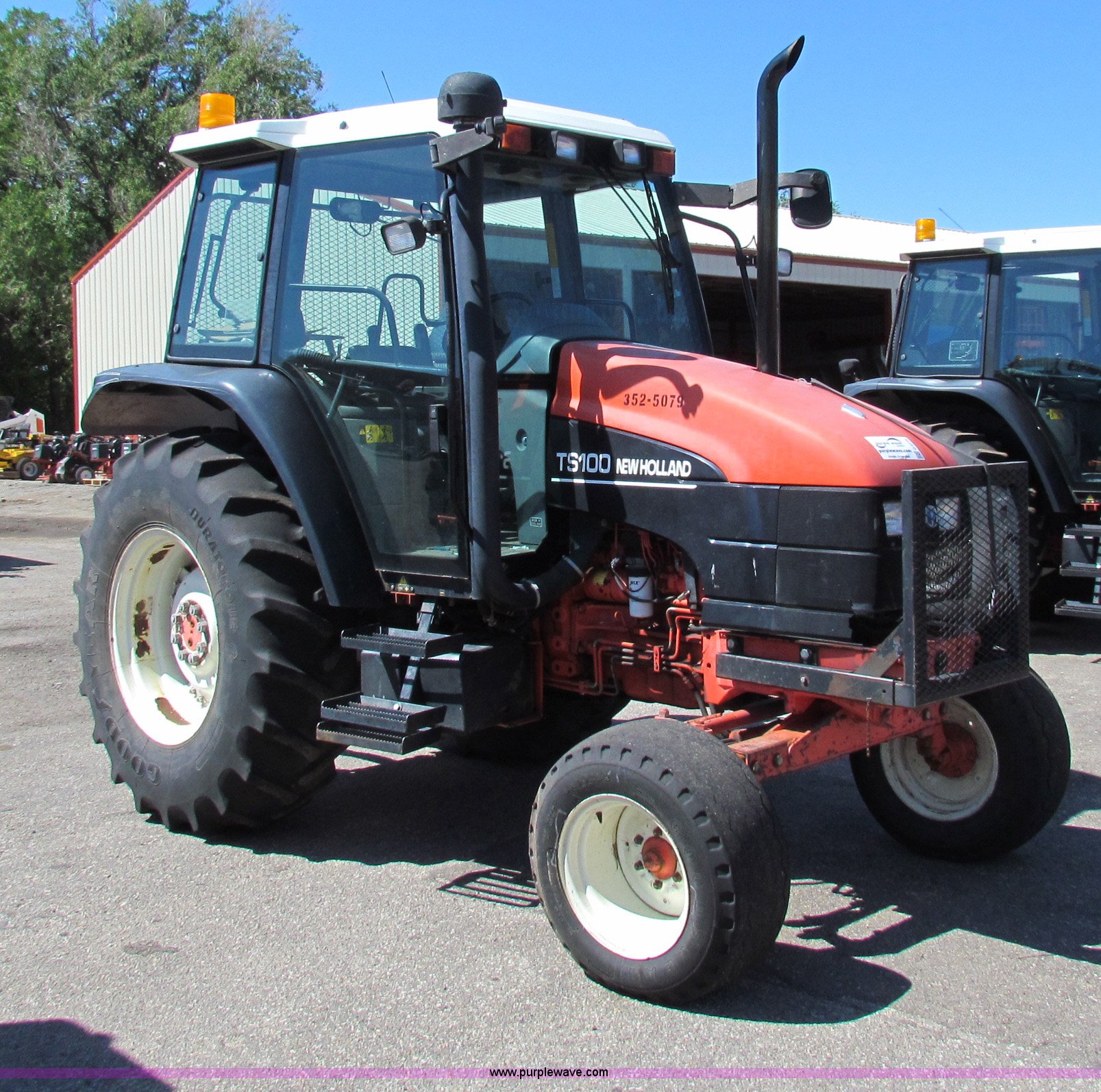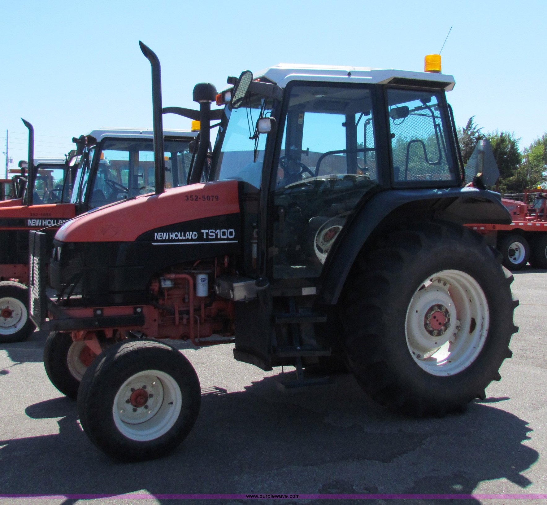 Purple Wave is selling a used Tractor in Kansas. This item is a 1999 New Holland TS100 tractor with the following: 5,761 hours on meter, Four cylinder diesel engine, 85 HP, 12 speed transmission, 12F-12R gears, Locking differential, AC and heat, AC blower motor inoperable, AM/FM, Tilt steering wheel, Suspension seat, Front and rear windshield wiper, Front and rear work lights, Three point, 540 PTO, Draw bar, (4) sets of rear hydraulic remotes, Front mounted toolbox, 11L-16 front tires, 18.4 rear tires, Tires in poor condition, Dead batteries, Oil leak, Serial 135604B, KDOT ID 352-5079