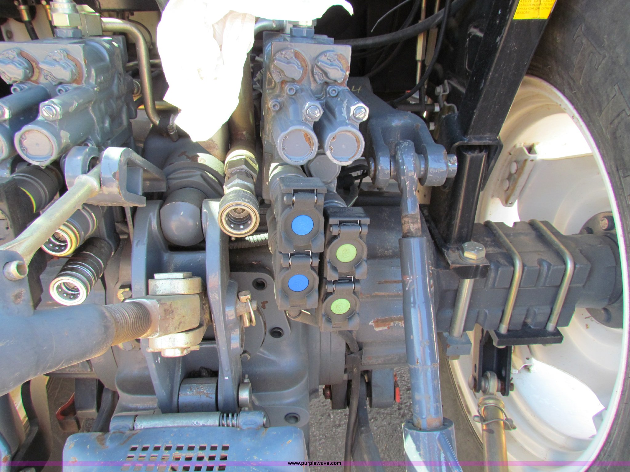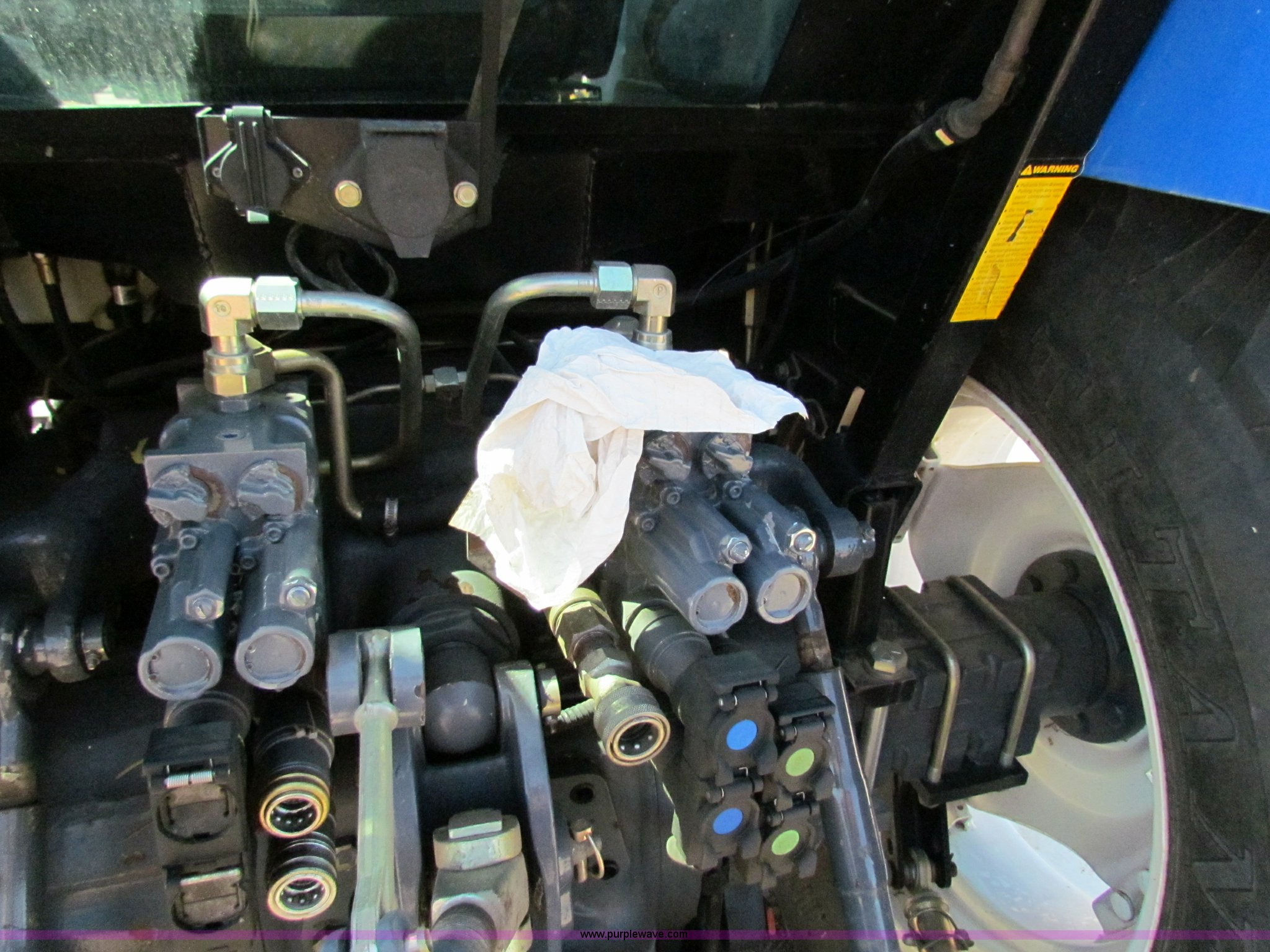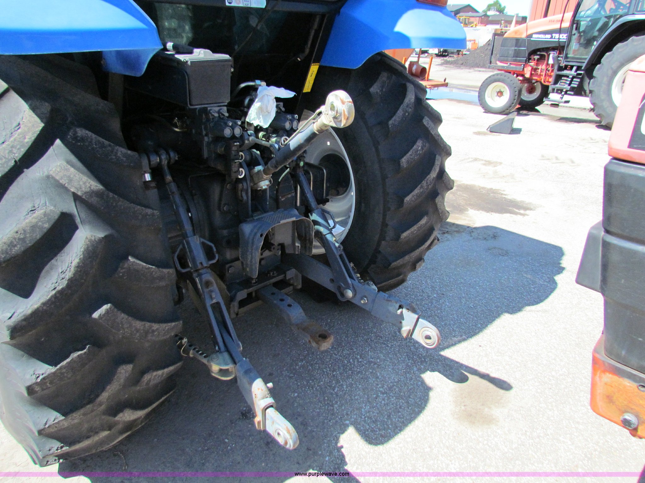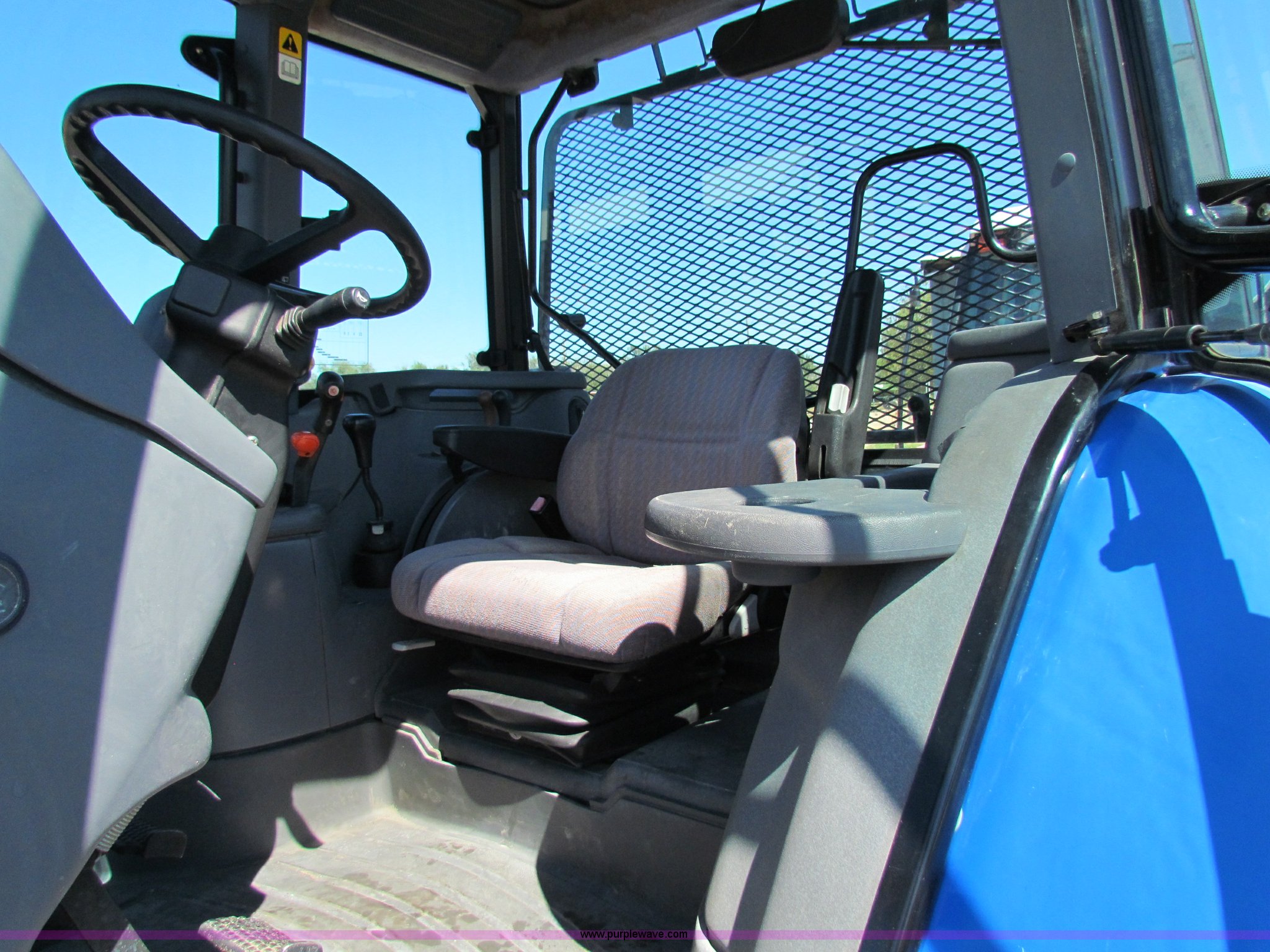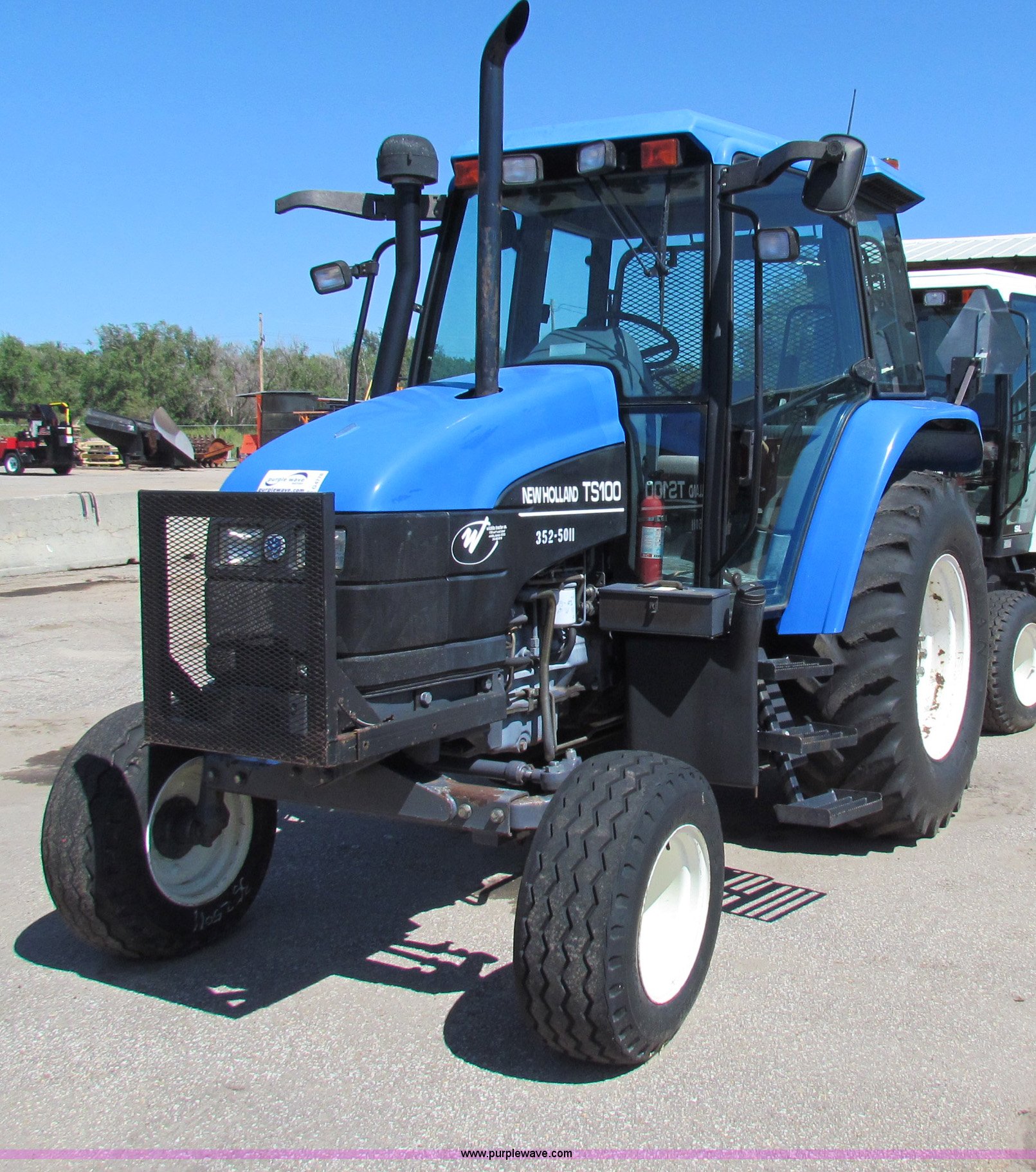 Purple Wave is selling a used Tractor in Kansas. This item is a 2001 New Holland TS100 tractor with the following: 5,673 hours on meter, Four cylinder diesel engine, 85 HP, 12 speed transmission, 12F-12R gears, Locking differential, AC and heat, AM/FM, Tilt steering wheel, Suspension seat, Front and rear windshield wiper, Front and rear work lights, Three point, 540 PTO, Draw bar, (4) sets of rear hydraulic remotes, 11L-16 front tires, 18.4-30 rear tires, Tires in poor condition, Oil leak, Dead batteries, Serial 174764B, KDOT ID 352-5011
