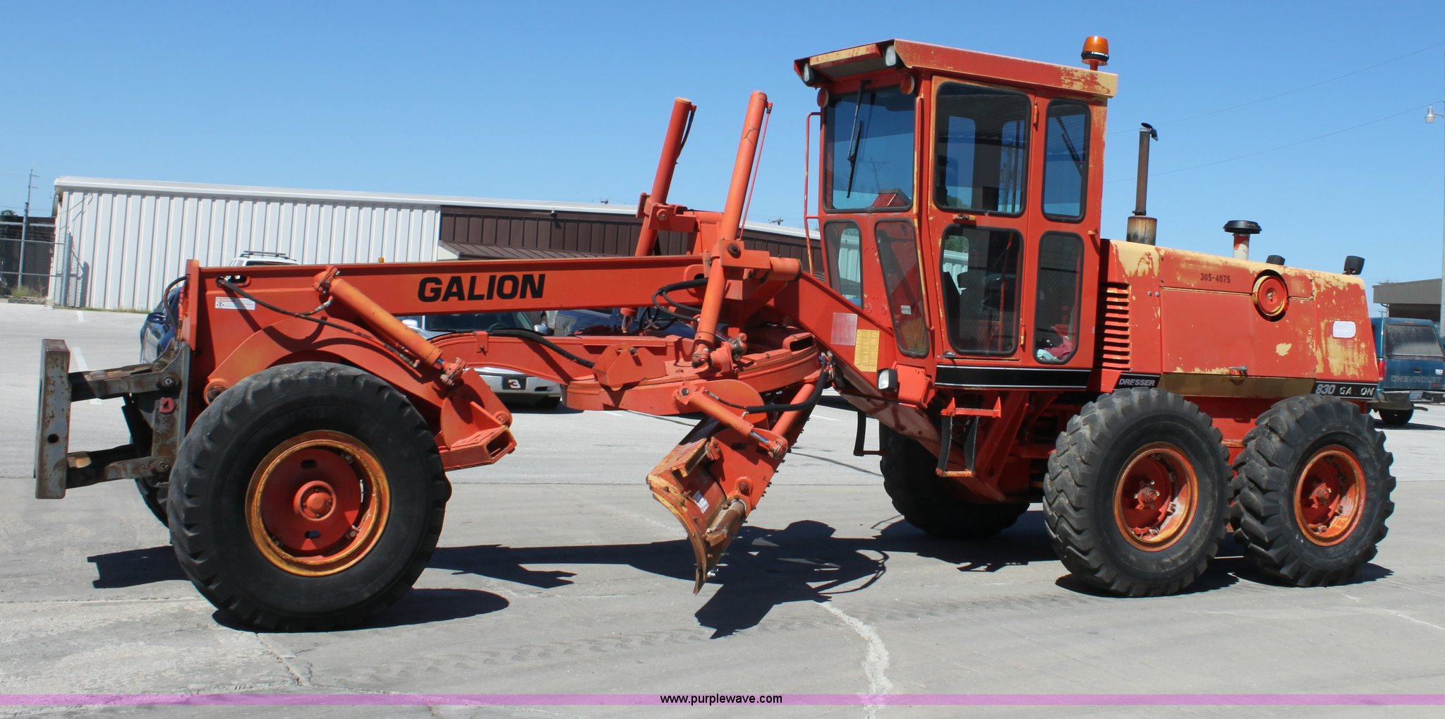 Purple Wave is selling a used Motor Grader in Kansas. This item is a 1995 Galion 830 motor grader with the following: 5,280 hours on meter, Cummins 610T 5.88L I6 diesel engine, 152 HP, Manual transmission, 6F-3R gears, Locking differential, Heat, AM/FM, Suspension seat, Front and rear windshield wipers, 10 valve stick, Tilt stick, Front and rear work lights, Auxiliary float, (9) tooth mid-mount scarifier, Missing teeth, Plow mount, 2' wing extension, 14.00R24 tires, Tires in poor condition, Parking brake will not hold, Blade leaks down, Serial 201210, KDOT ID 305-4075