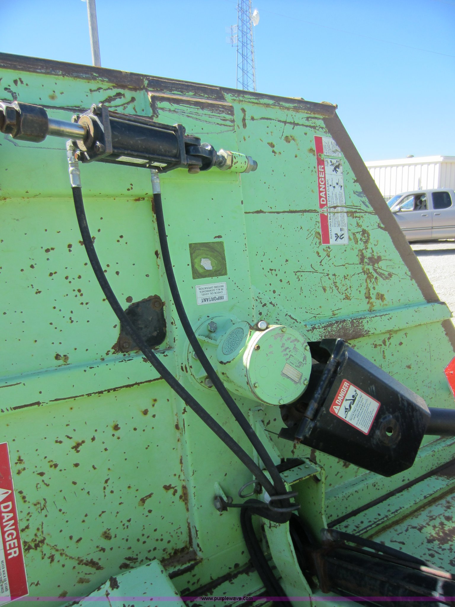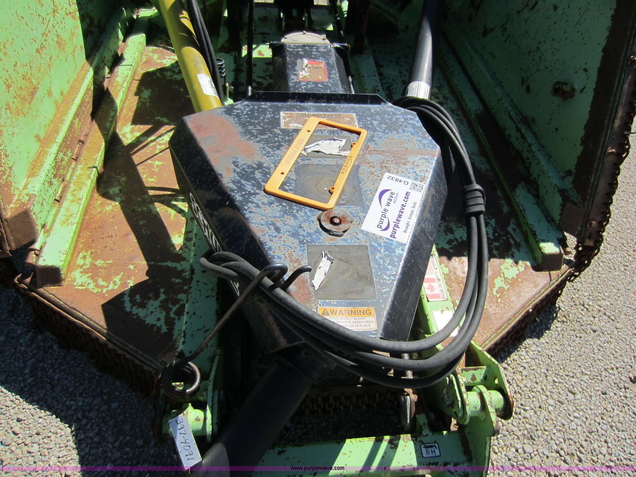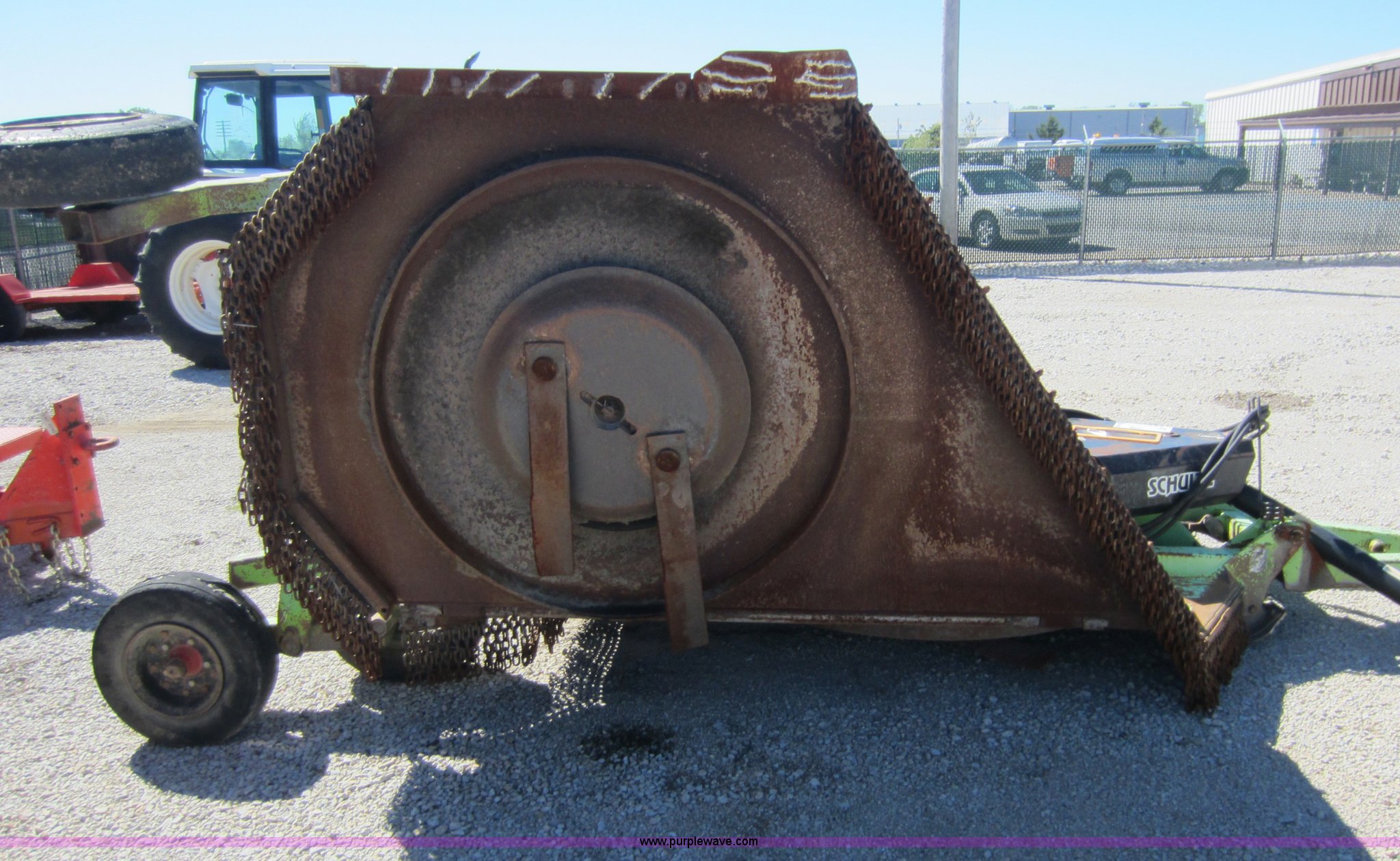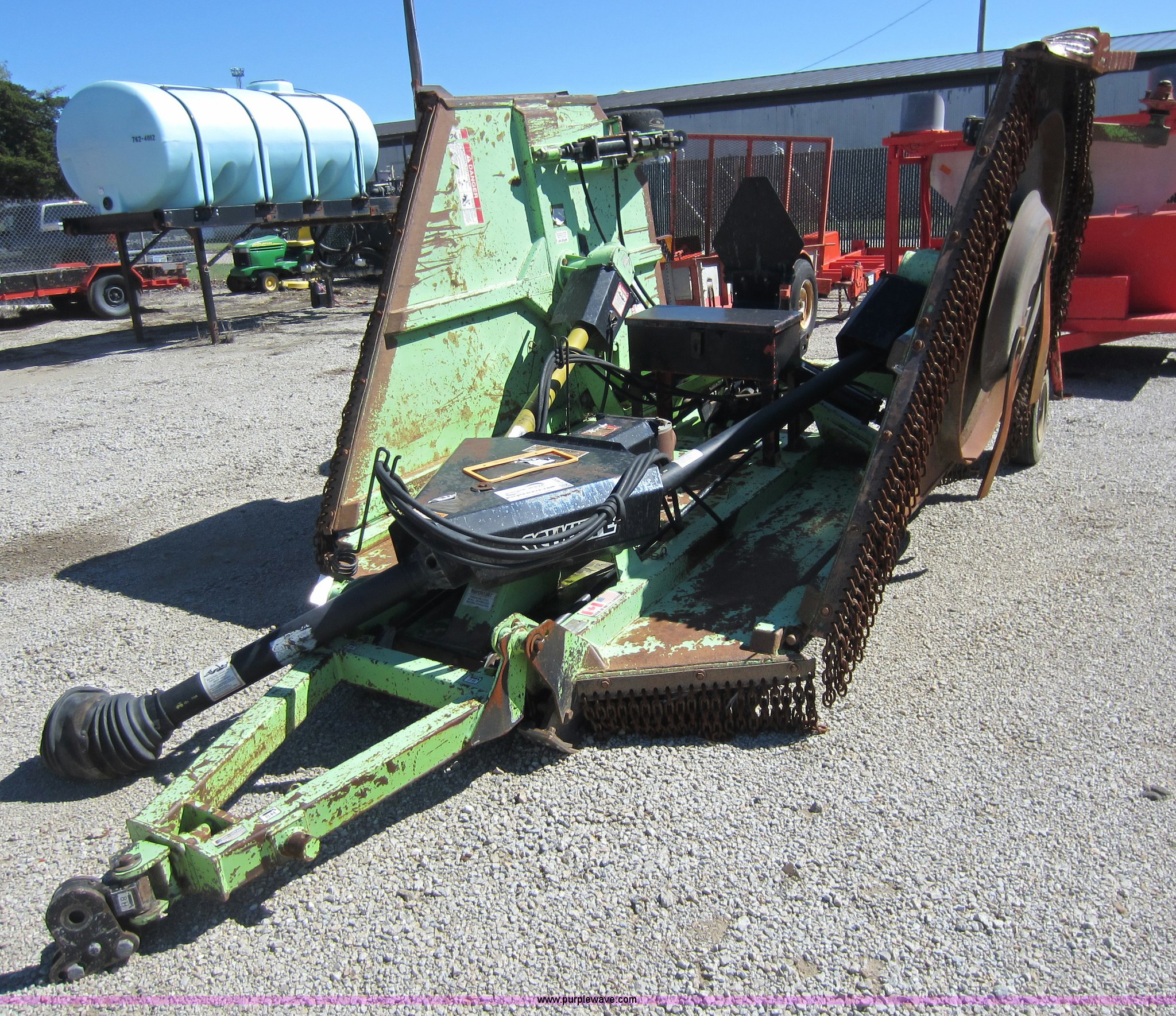 Purple Wave is selling a used Mower, Cutter, Shredder in Kansas. This item is a 2001 Schulte XH1500 batwing rotary mower with the following: 15'W, Hydraulic fold and lift, Clevis hitch, 540 PTO, Walking beam bushings or bearings need replaced, Gearbox leaks, Serial C30101829108, KDOT ID 397-4091