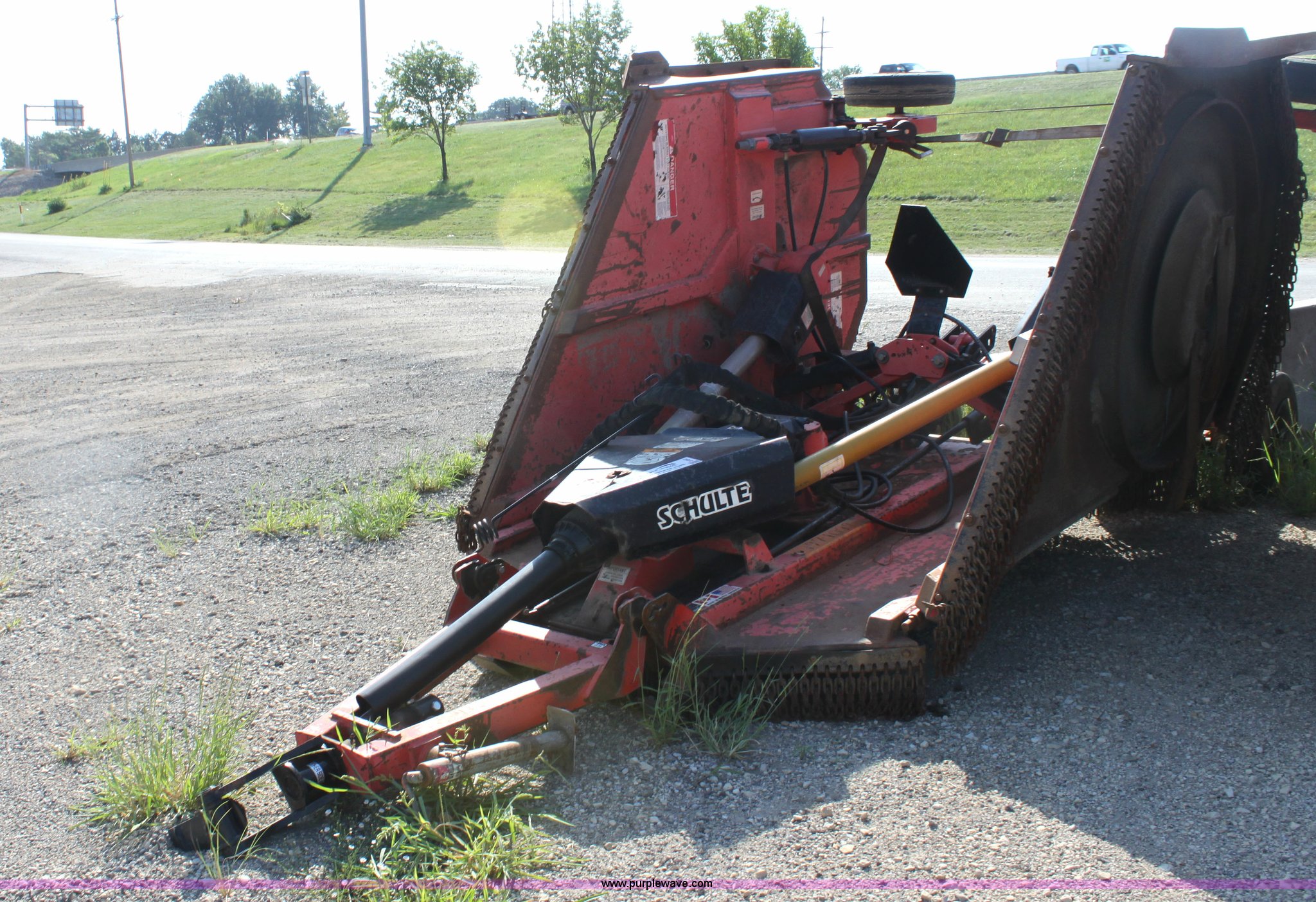 Purple Wave is selling a used Mower, Cutter, Shredder in Kansas. This item is a 2000 Schulte XH1500 batwing rotary mower with the following: 15'W, Hydraulic fold and lift, 540 PTO, Clevis hitch, Center gearbox leaks, Serial C30101296004K, KDOT ID 397-1099