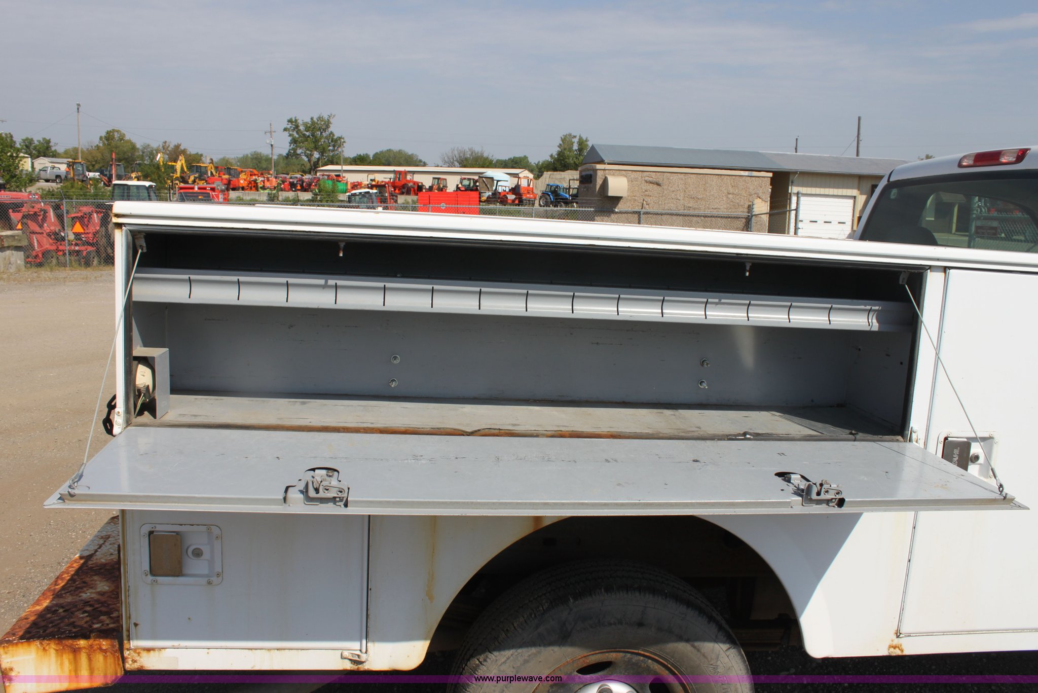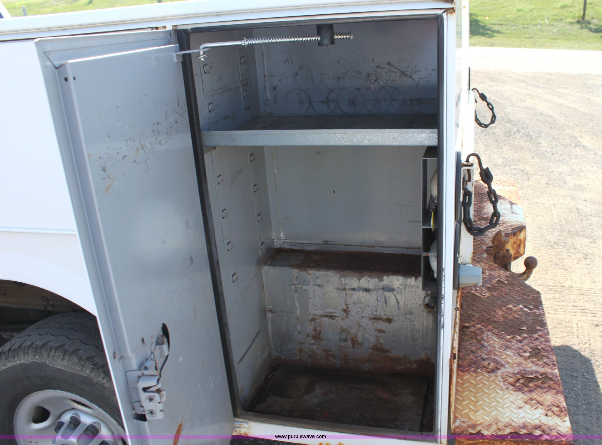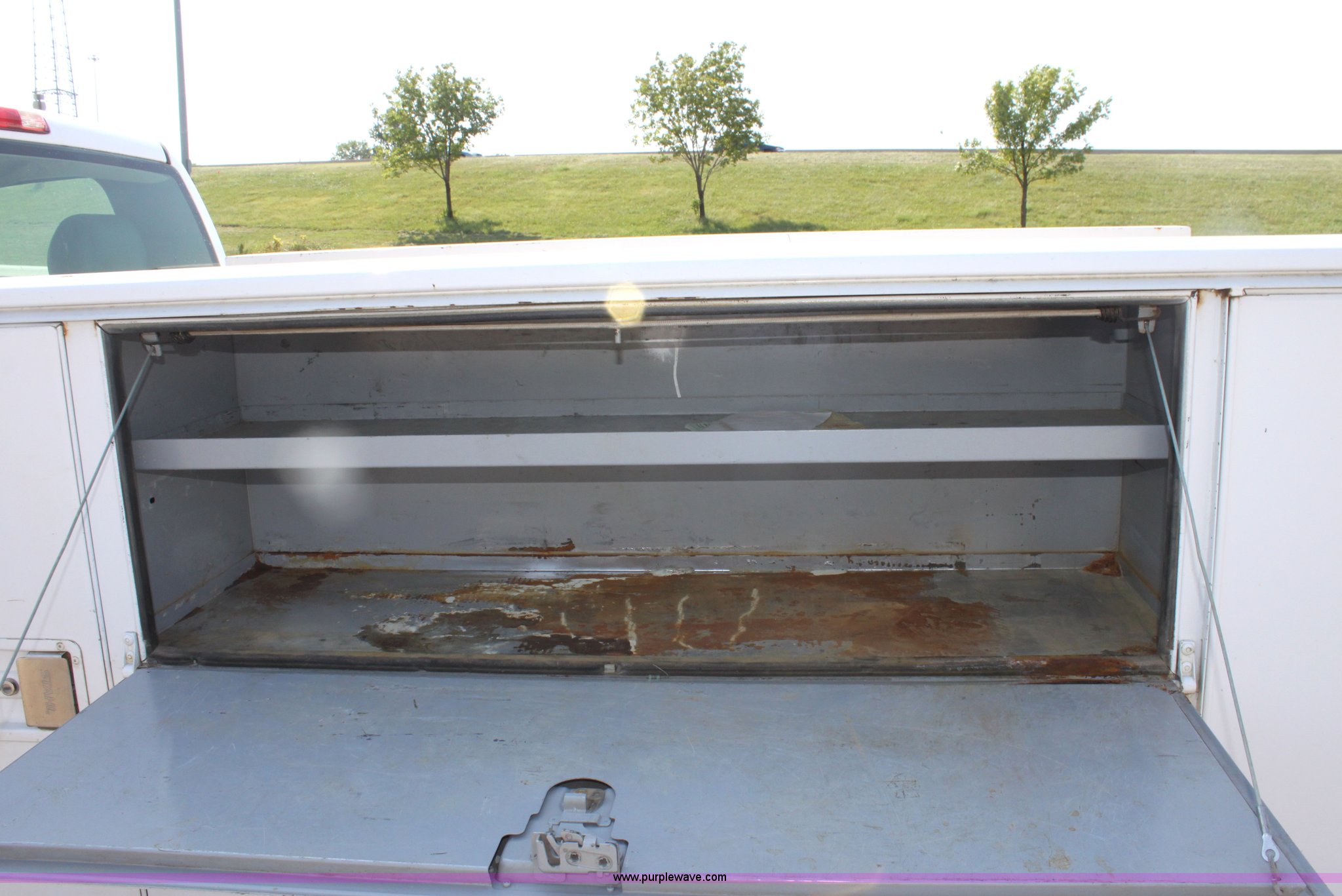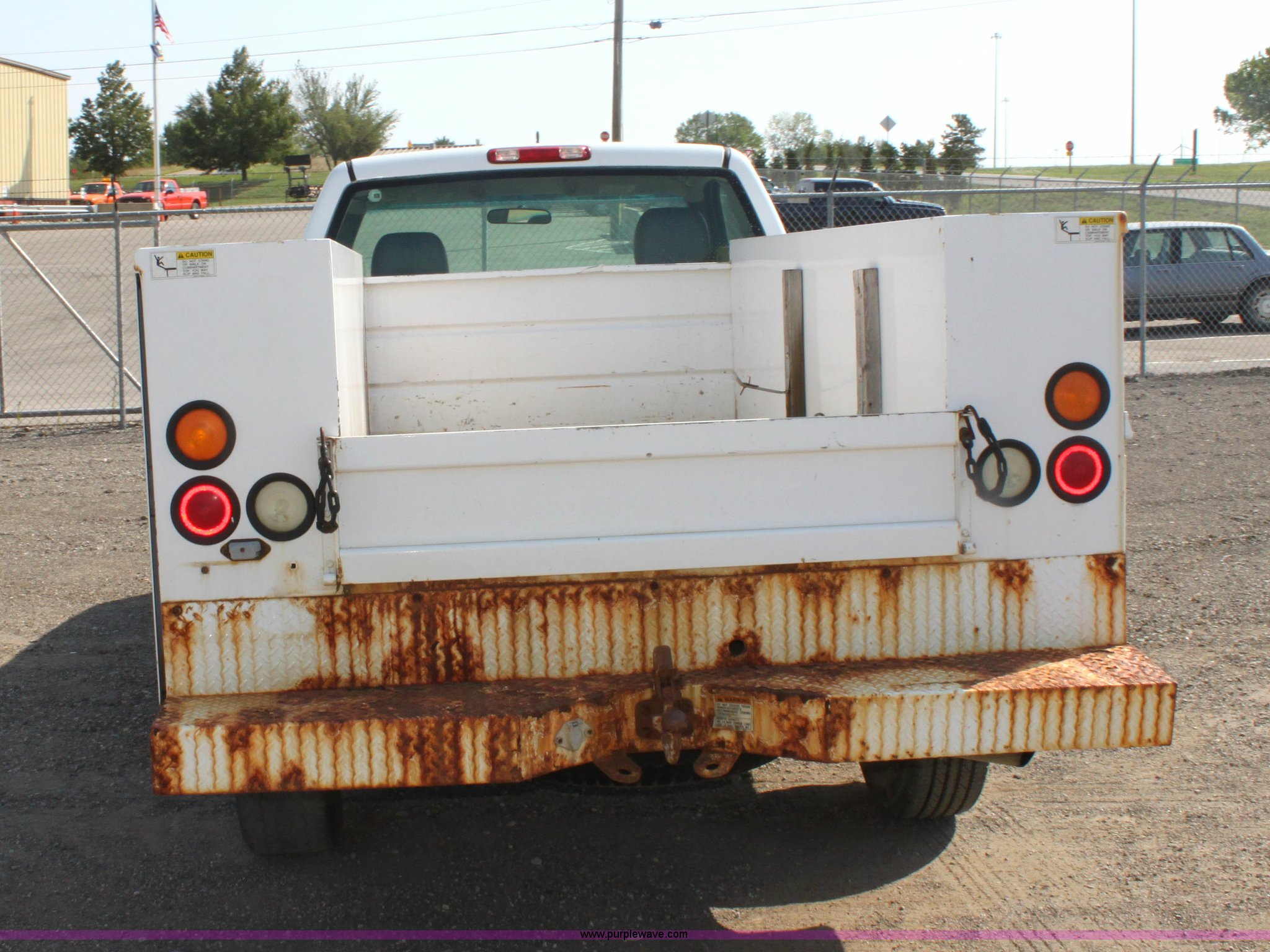 Purple Wave is selling a used Service Truck in Kansas. This item is a 2003 Chevrolet Silverado C2500HD pickup truck with the following: 240,695 miles on odometer, Duramax 6.6L V8 diesel engine, Allison automatic transmission, AC and heat, AC non-functional, AM/FM, Tilt, Cruise, Vinyl interior, Utility bed, Pintle hitch, Trailer wiring, 245/75R16 tires, Paint faded and scratched, Rust holes in bed, KDOT ID 112-0032