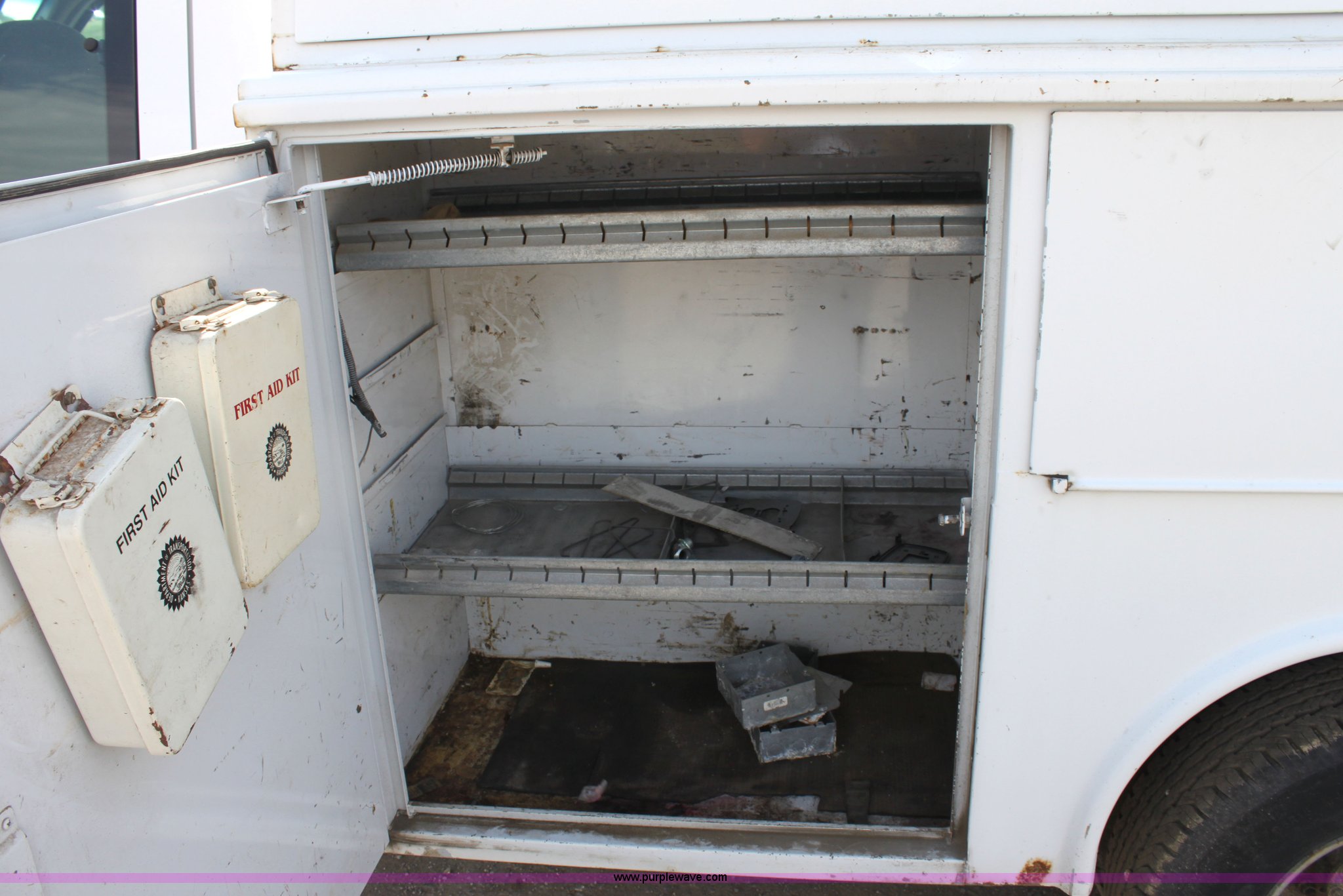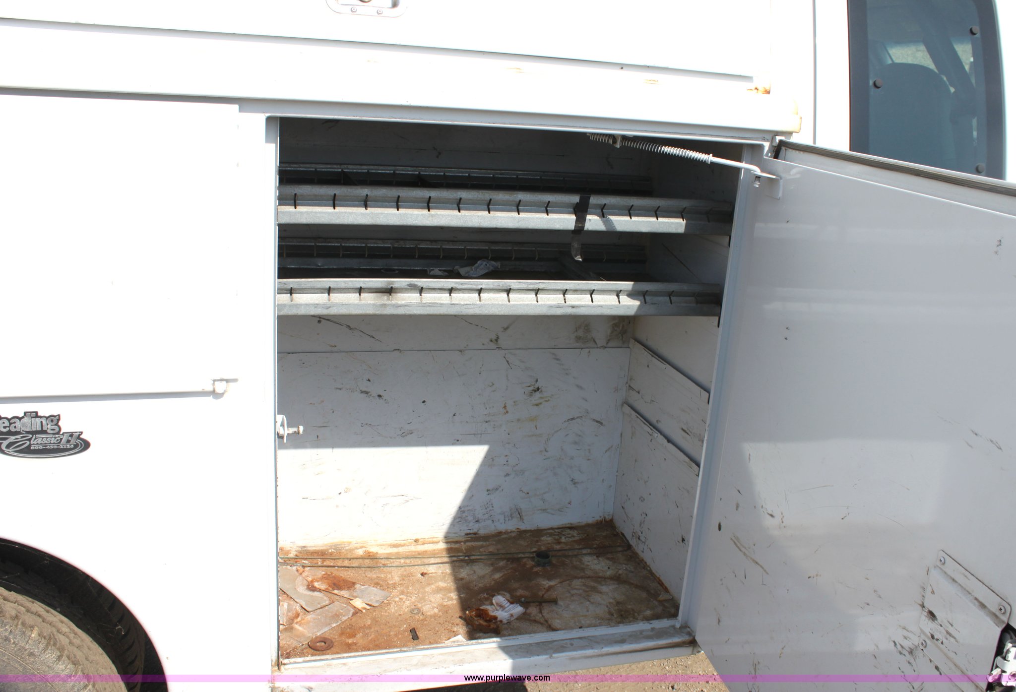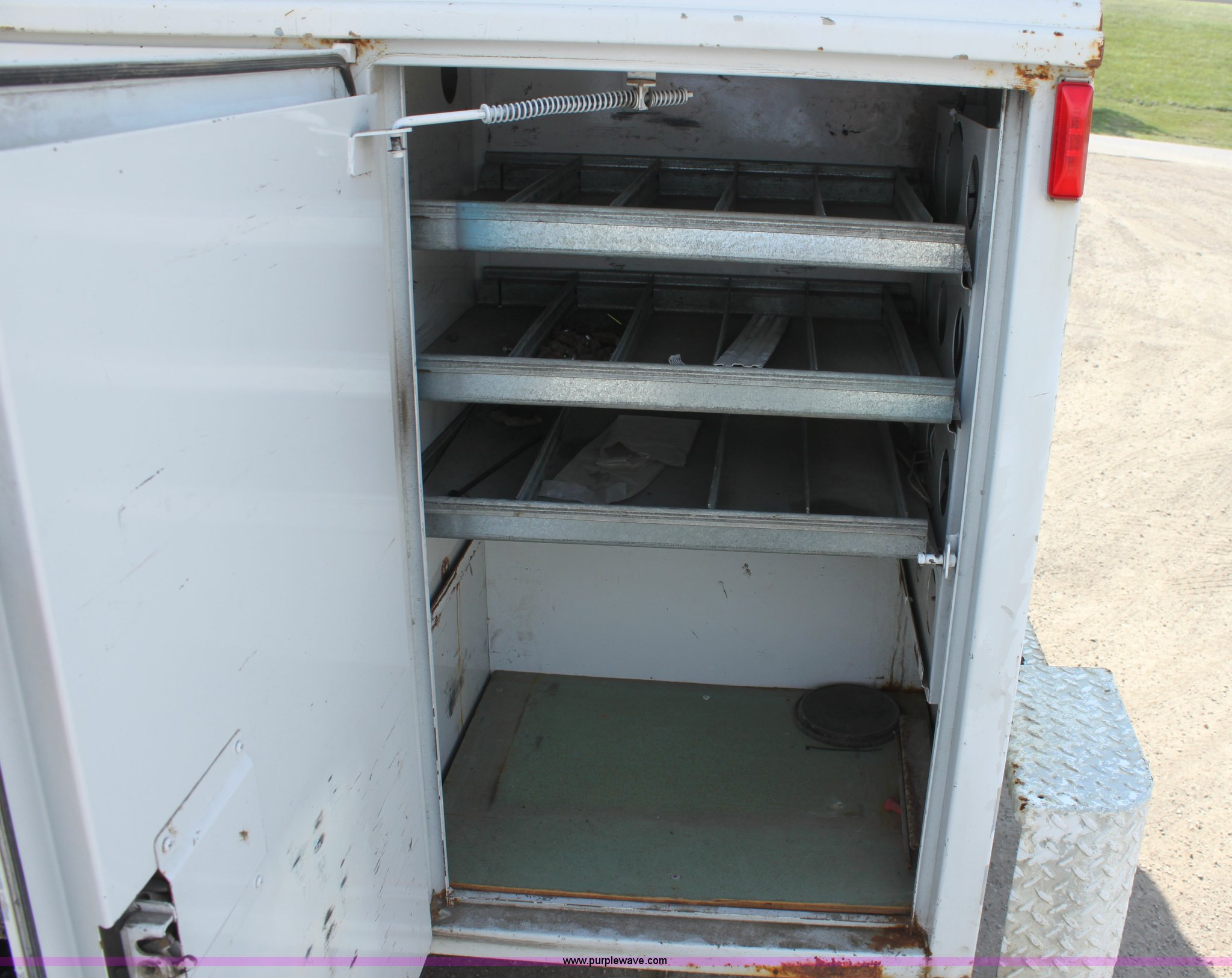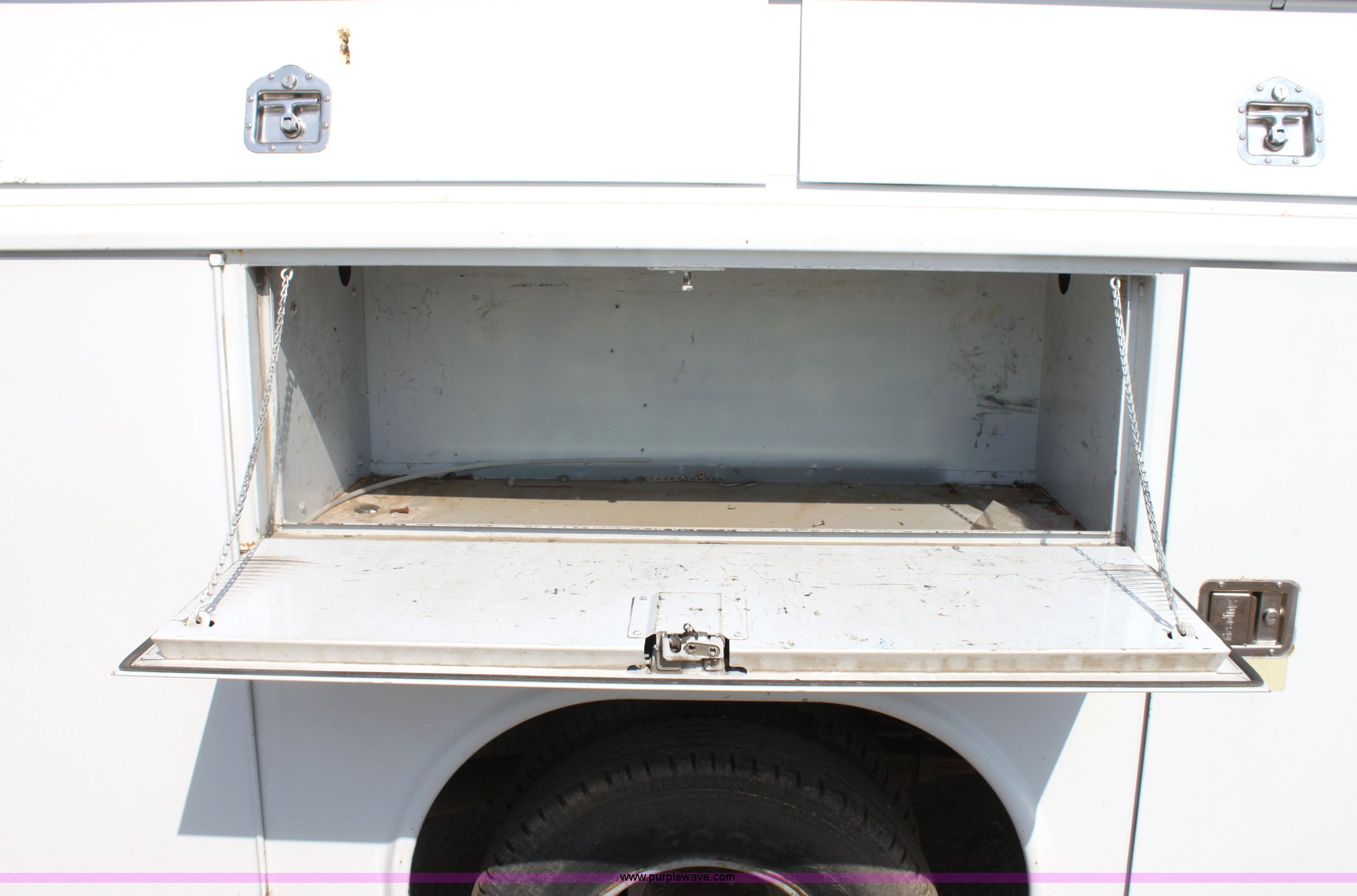 2002 Ford F350 Super Duty pickup truck. 123,650 miles on odometer, Powerstroke V8 7.3L turbo diesel engine, Automatic transmission No forward gears, AC and heat, AM/FM/cassette, Tilt, Cruise, Manual windows and locks, Front tow hooks, Reading enclosed utility bed 49"H interior, Ladder rack, Pintle hitch, Trailer wiring, 215/85R16 tires, Bad transmission, no forward gears, Battery needs replaced, Paint faded and scratched, KDOT ID 153-1012. 1FDWX36F72ED12949. Shipping quotes available. KDOT - Topeka. 101 Gage Blvd. Topeka, KS 66606