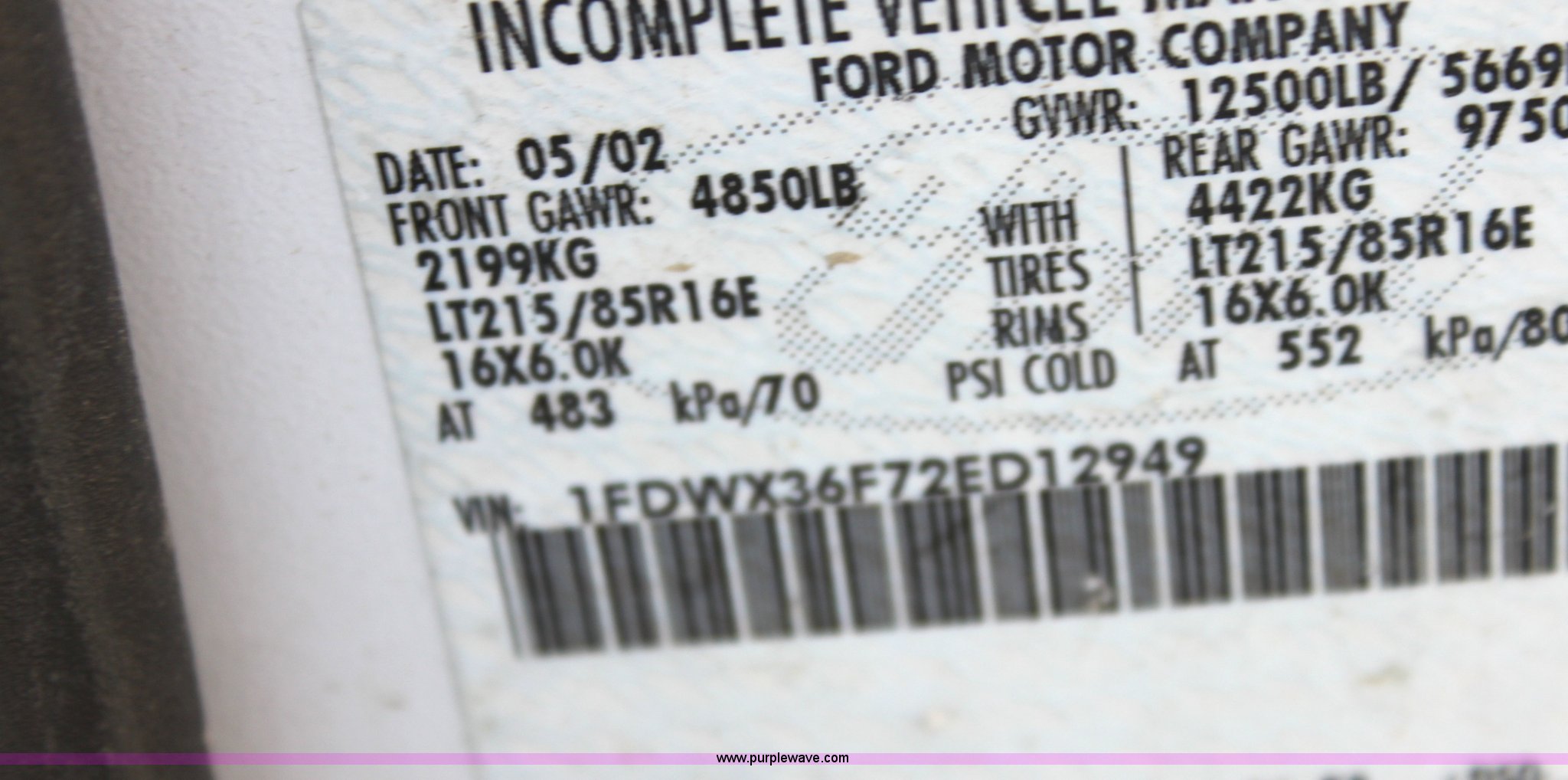 Purple Wave is selling a used Passenger Vehicle in Kansas. This item is a 2002 Ford F350 Super Duty pickup truck with the following: 123,650 miles on odometer, Powerstroke V8 7.3L turbo diesel engine, Automatic transmission, No forward gears, AC and heat, AM/FM/cassette, Tilt, Cruise, Manual windows and locks, Front tow hooks, Reading enclosed utility bed, 49"H interior, Ladder rack, Pintle hitch, Trailer wiring, 215/85R16 tires, Bad transmission, no forward gears, Battery needs replaced, Paint faded and scratched, KDOT ID 153-1012