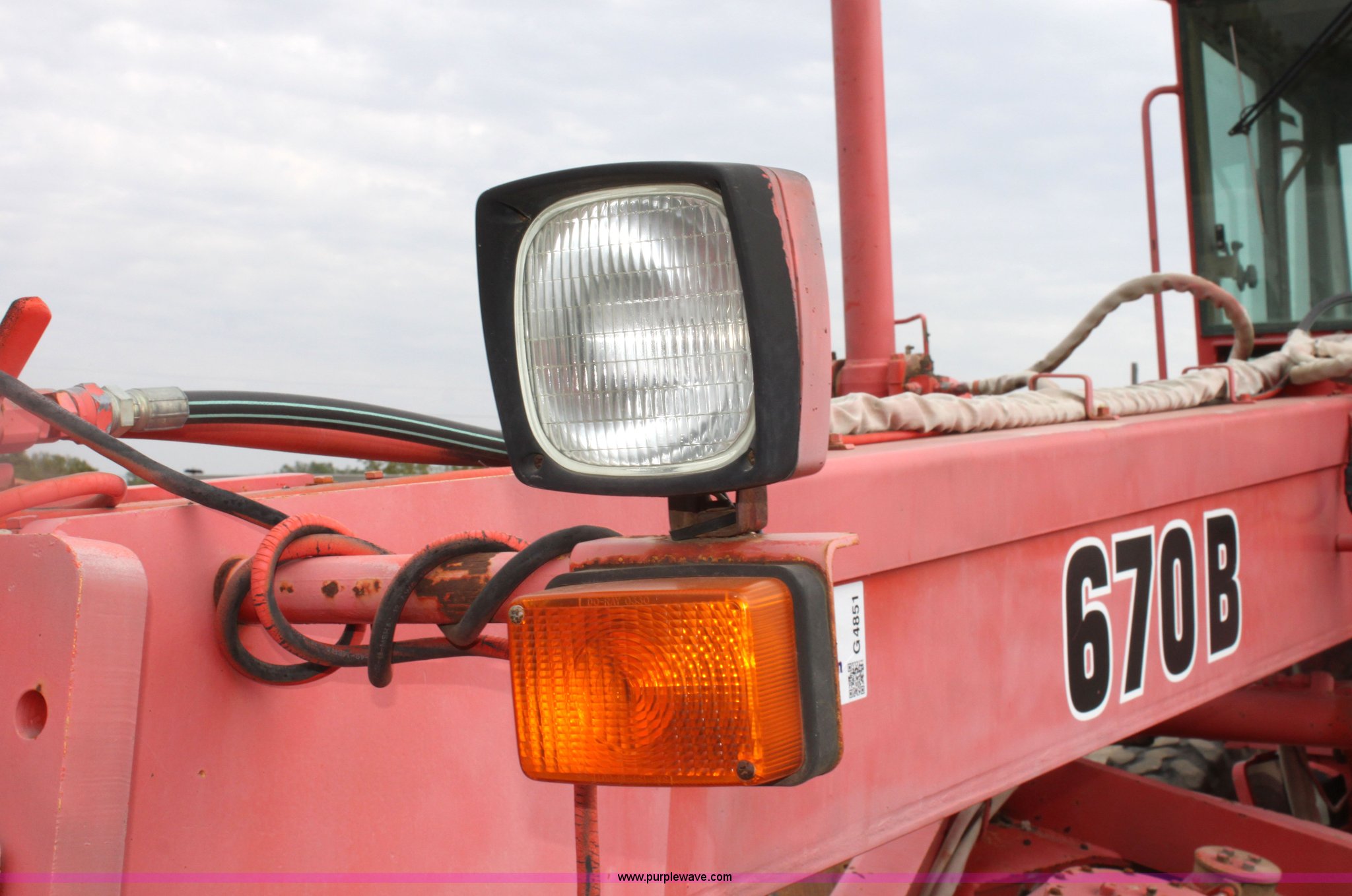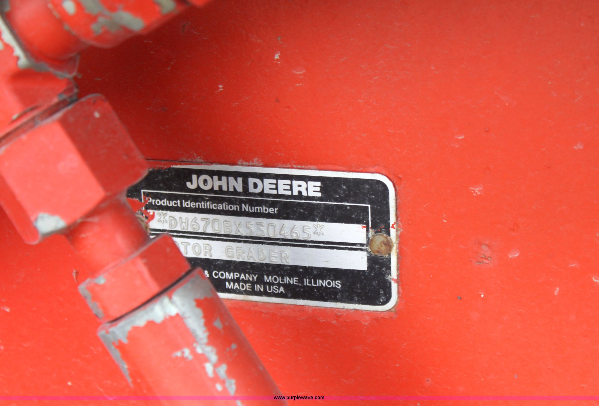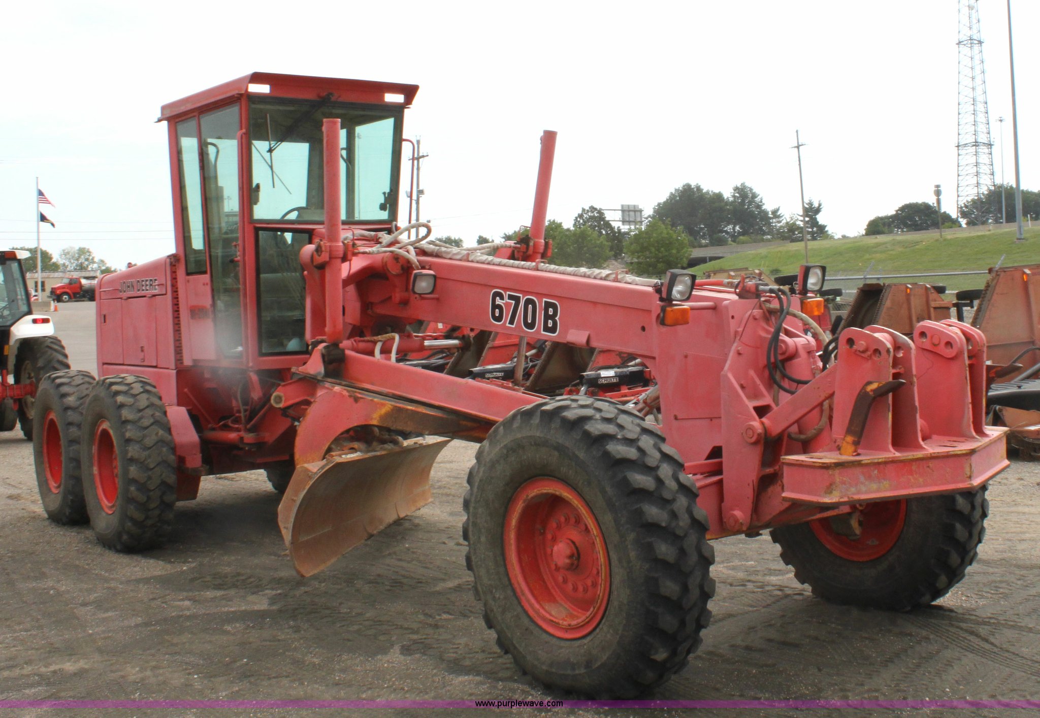 Purple Wave is selling a used Motor Grader in Kansas. This item is a 1991 John Deere 670B motor grader with the following: 8,240 hours on meter, Six cylinder diesel engine, 125 HP, Powershift transmission, 8F-4R gears, Differential lock, Oscillating frame, 14' moldboard, Nine tooth front scarifier, Front hydraulics, Heat, Suspension seat, 9 valve stick, Tilt stick, Front and rear wipers, Front and rear work lights, 14.00-24 tires, Blade cylinder leaks, Fuel gauge broken, No AC, Cab rusted through, Body rust, Serial DW670BX530465, KDOT ID 311-2041