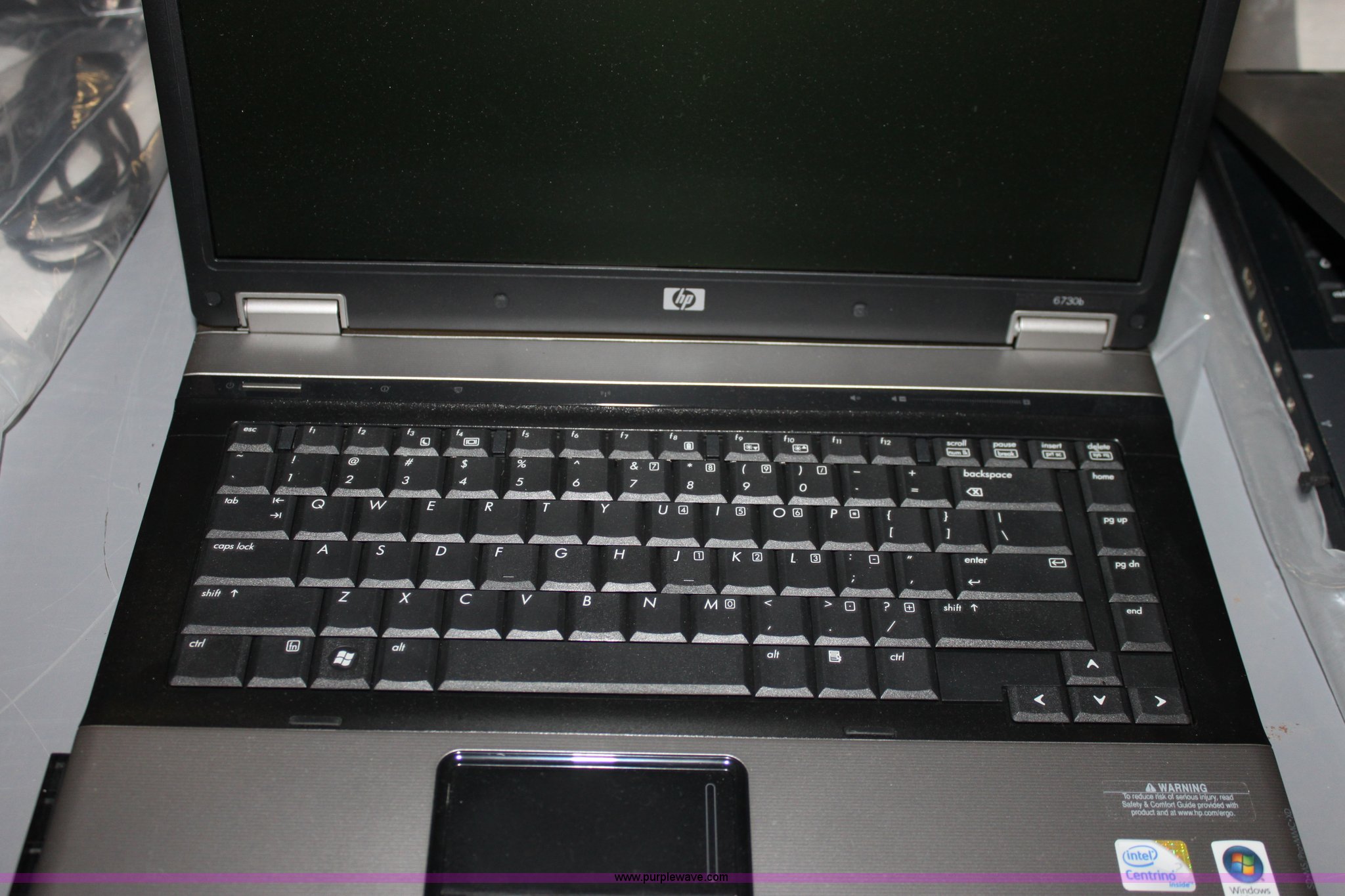 Purple Wave is selling a used Computers in Kansas. This item is a HP 6730B laptop computer with the following: Intel Core 2 Duo processor, 2.4 GHz speed, 2 GB RAM, 160 GB hard drive, DVD, Power supply, No operating system installed, KDOT ID 916739