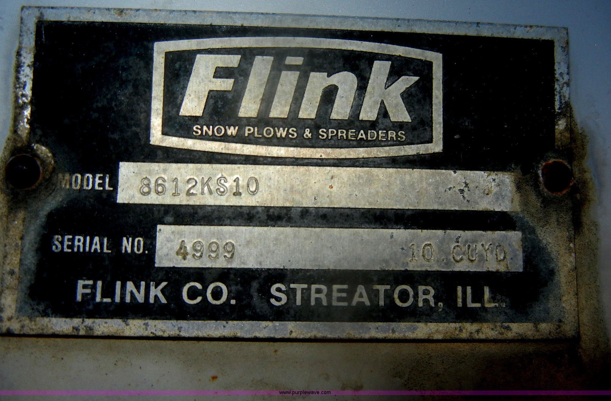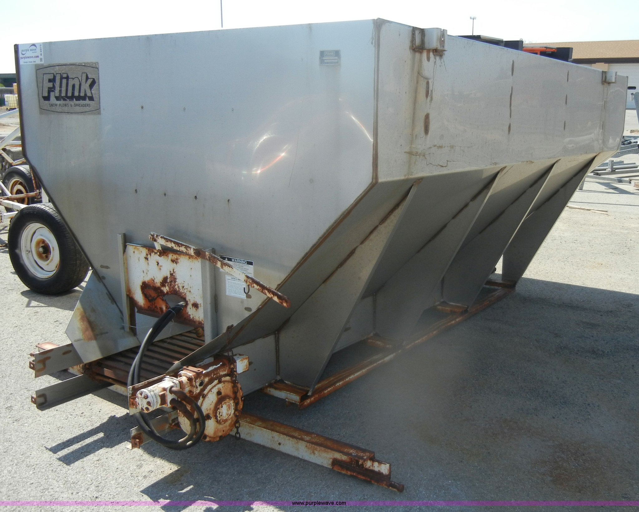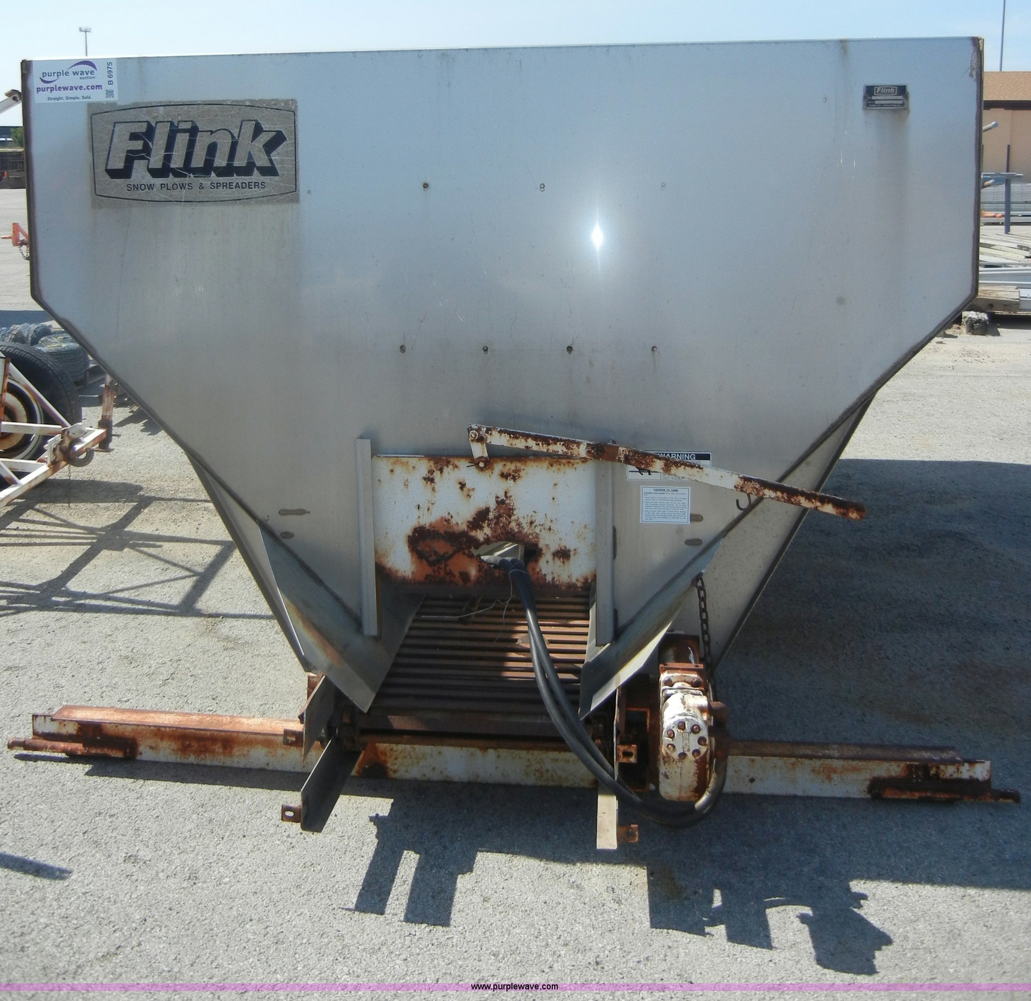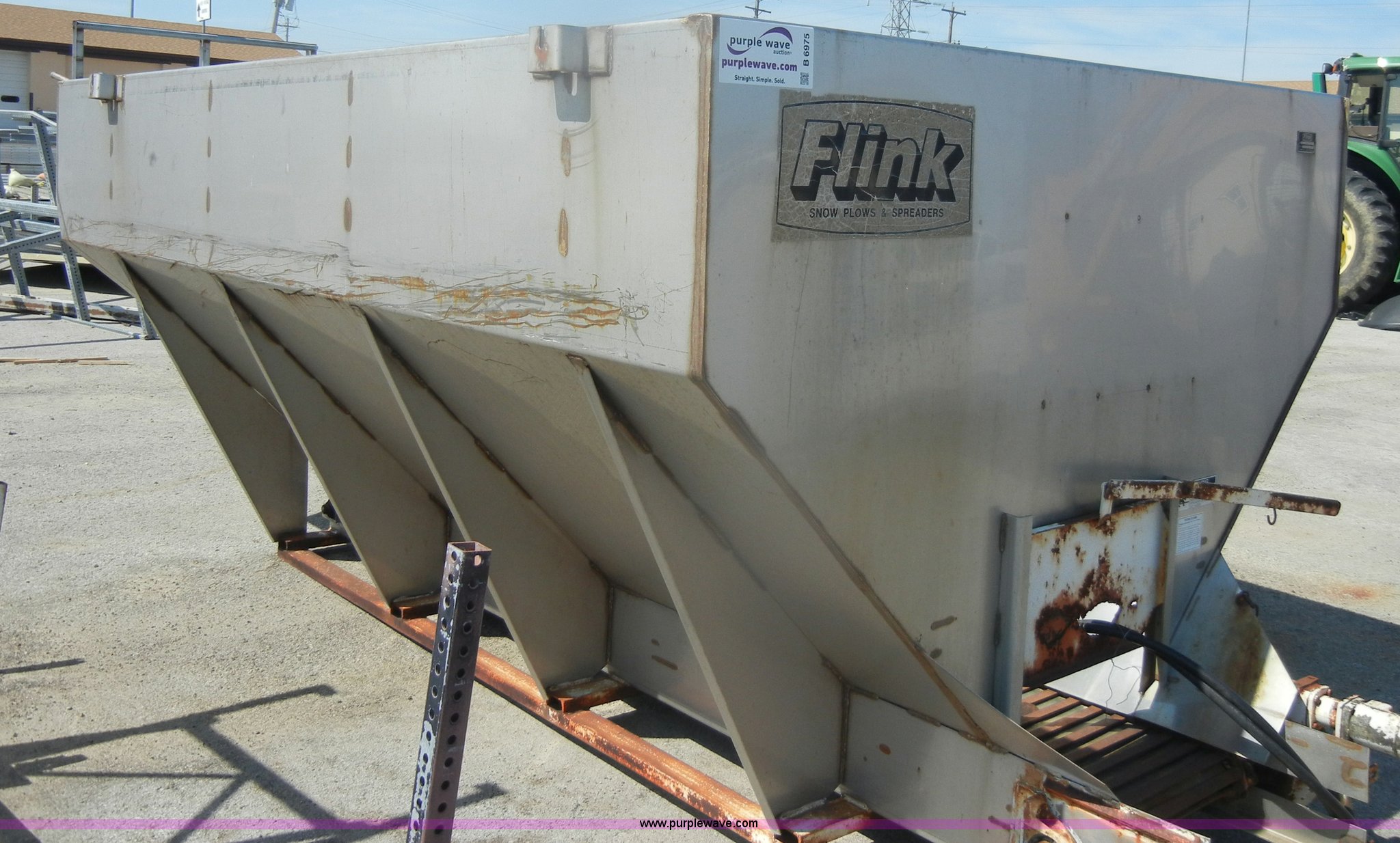Purple Wave is selling a used Truck Part and Attach. in Kansas. This item is a Flink stainless steel spreader with the following: Model 3612KS10, 10 cu. yd. capacity, Hydraulic hookups, Serial 4999
