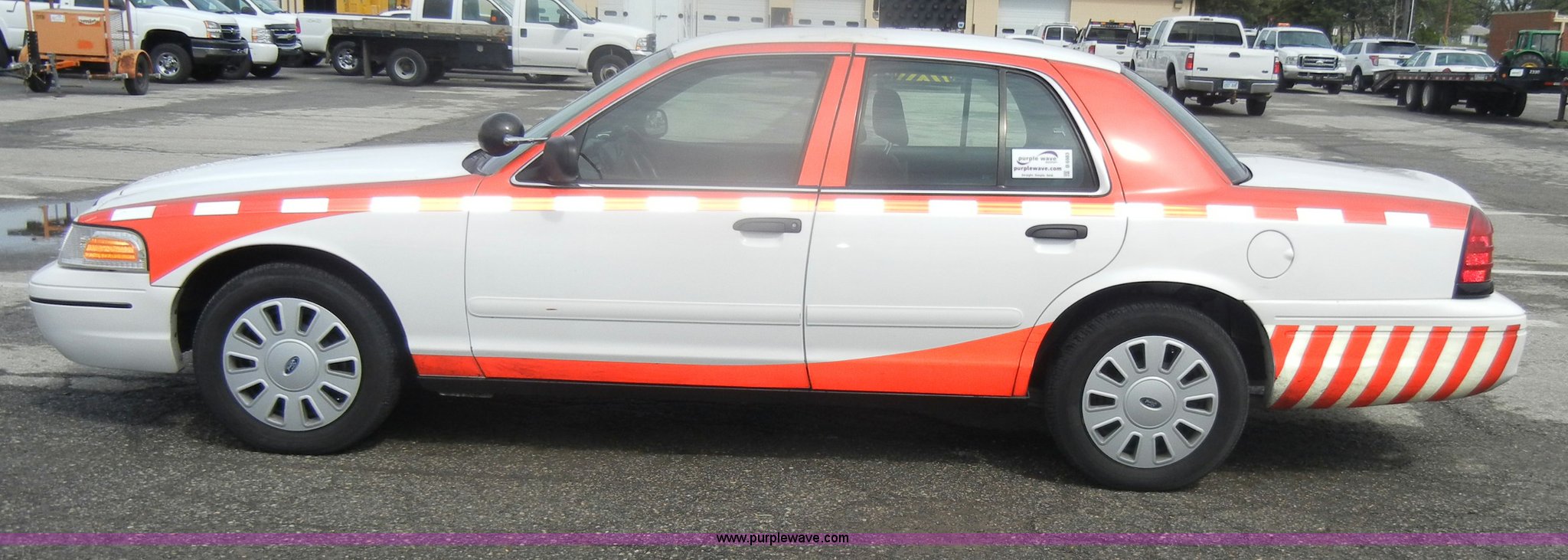 Purple Wave is selling a used Passenger Vehicle in Kansas. This item is a 2007 Ford Crown Victoria Police Interceptor with the following: 144,109 miles on odometer, 4.6L V8 EFI engine, Automatic transmission, AC and heat, Tilt, Cruise, AM/FM/CD, Power windows, locks, mirrors, and seats, Heated mirror, Cloth interior, Spotlight, Fire suppression, 235/55R17 tires, Equip# 5983