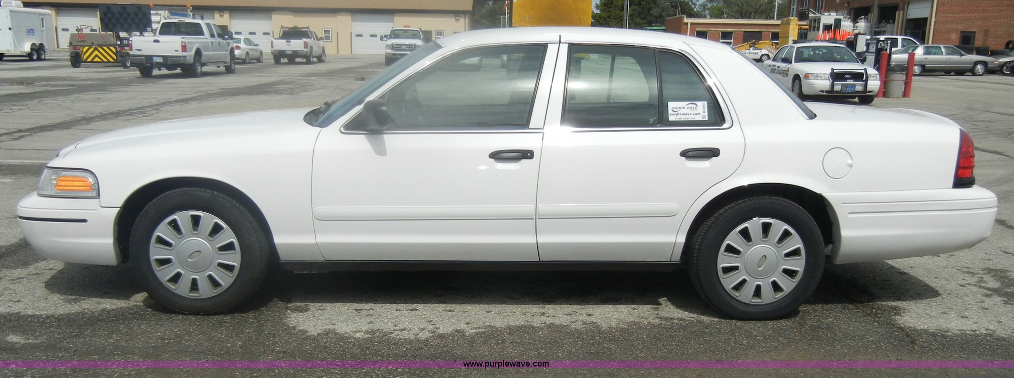 Purple Wave is selling a used Passenger Vehicle in Kansas. This item is a 2008 Ford Crown Victoria Police Interceptor with the following: 105,081 miles on odometer, 4.6L V8 EFI gas engine, Automatic transmission, AC and heat, Tilt, Cruise, AM/FM/CD, Power windows, locks, mirrors, and seats, Heated mirror, Cloth interior, Fire suppression, 235/55R17 tires, Equip# 5932