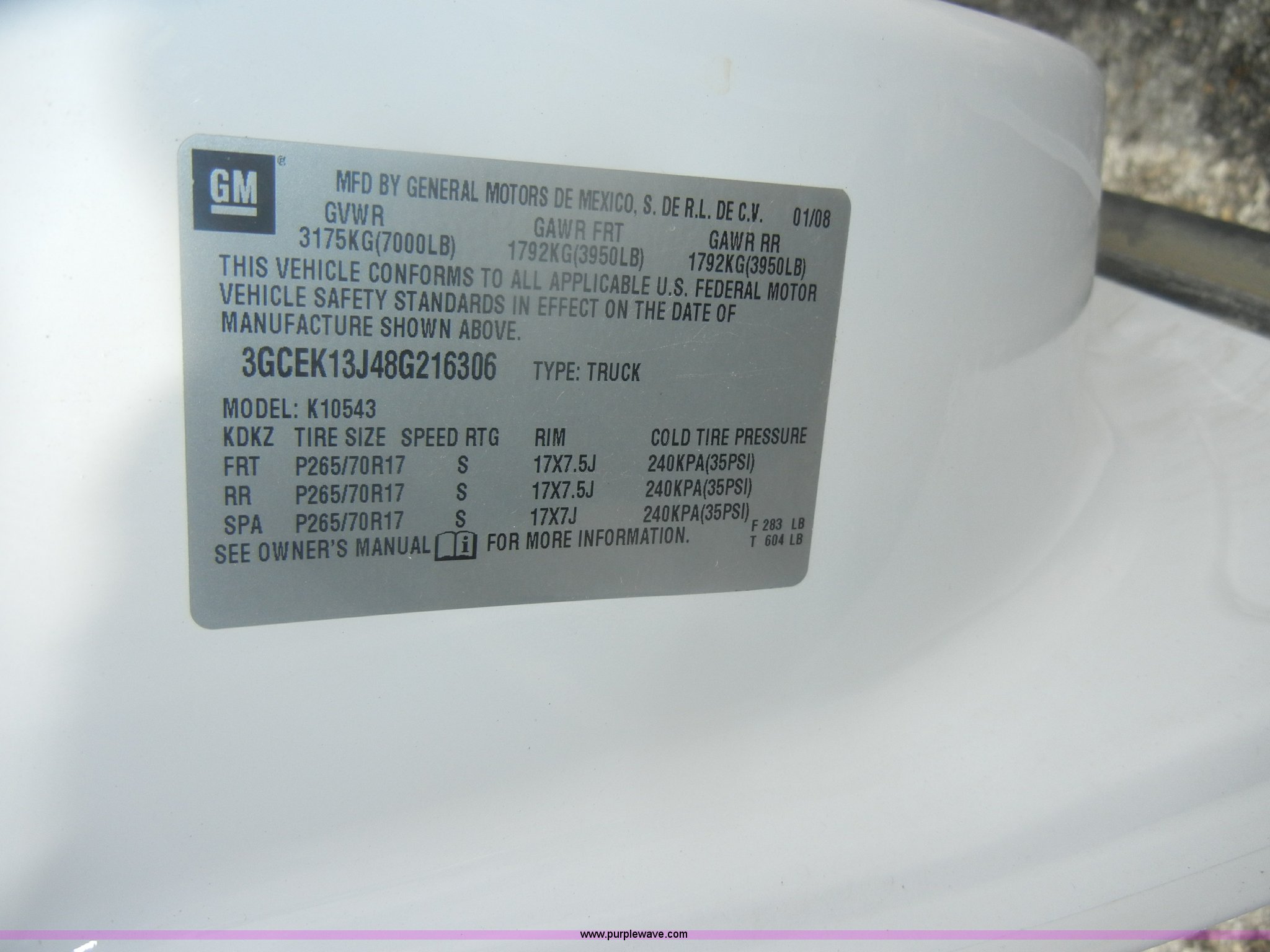 Purple Wave is selling a used 1/2 Ton Pickup or Van in Kansas. This item is a 2008 Chevrolet Silverado K1500 Crew Cab pickup truck with the following: 165,681 miles on odometer, Vortec 5.3L V8 SFI gas engine, Automatic transmission, Four wheel drive, AC and heat, Tilt, Cruise, AM/FM/CD, Power windows, locks, mirrors, and seats, Cloth interior, Built-in trailer brake controller, 6' short bed, Receiver hitch, 265/70R17 tires, Equip# 2088