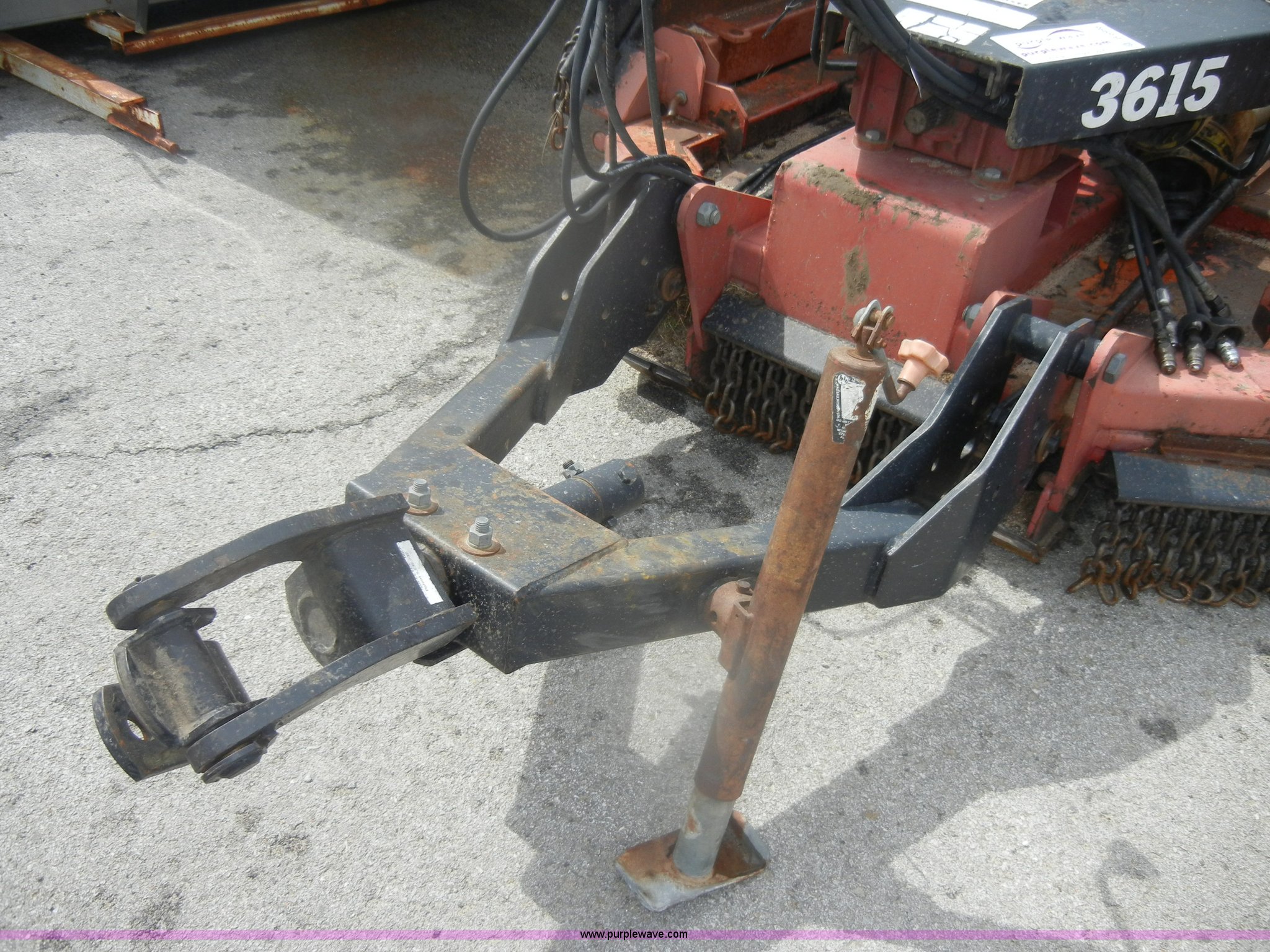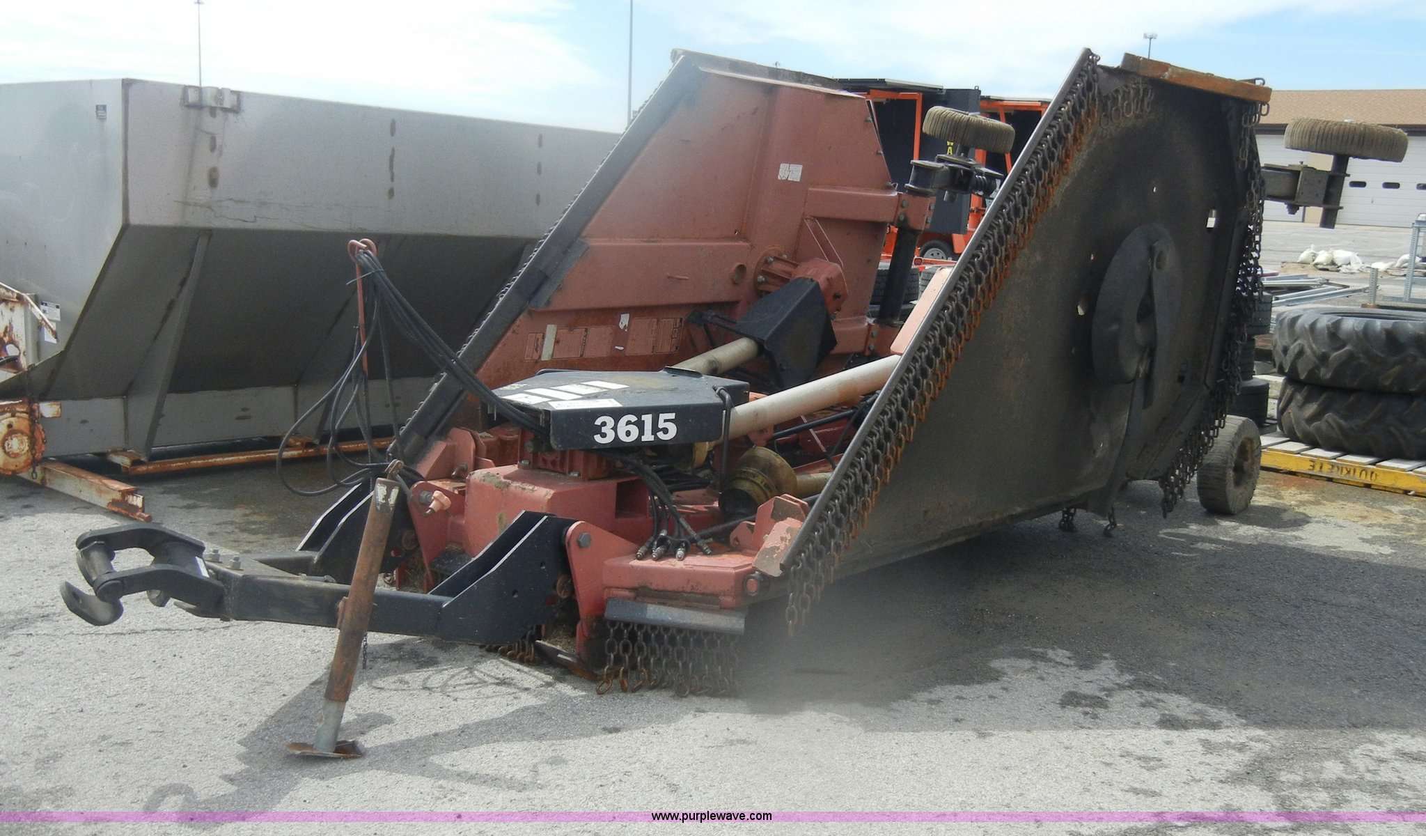 Purple Wave is selling a used Mower, Cutter, Shredder in Kansas. This item is a Bush Hog 3615 batwing rotary mower with the following: 15'W, 1000 PTO, Hydraulic lift and fold, Pin hitch, Serial 108139, Equip# 3638