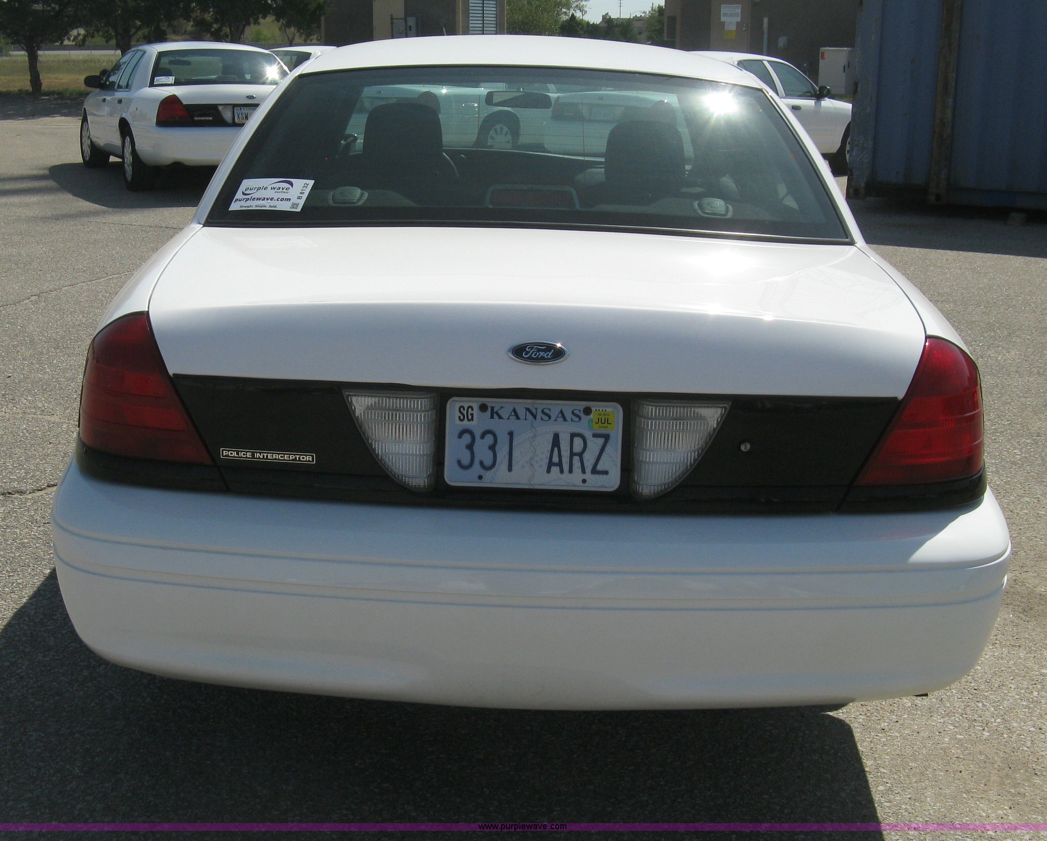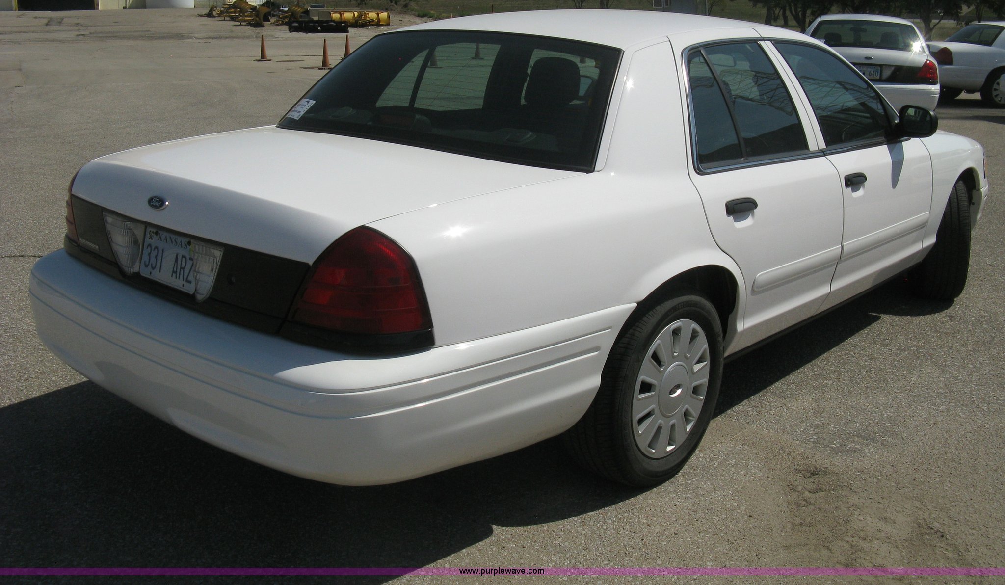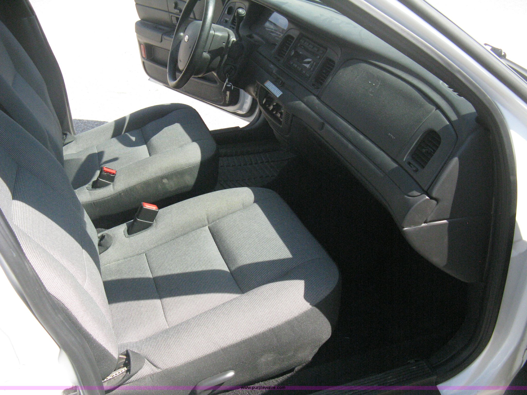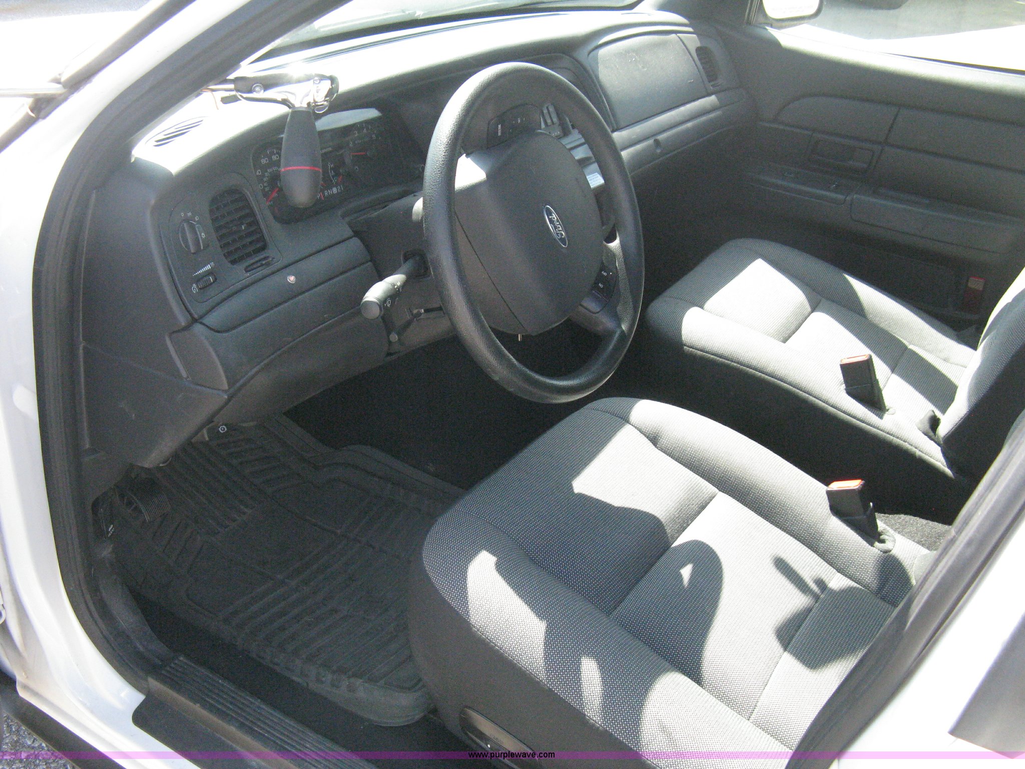 Purple Wave is selling a used Passenger Vehicle in Kansas. This item is a 2008 Ford Crown Victoria Police Interceptor with the following: 105,384 miles on odometer, 4.6L V8 EFI gas engine, Automatic transmission, AC and heat, Tilt, Cruise, AM/FM/CD, Power windows, locks, mirrors, and seats, Cloth interior, Spotlight, P235/55R17 tires, Spare tire, Equip# 5926