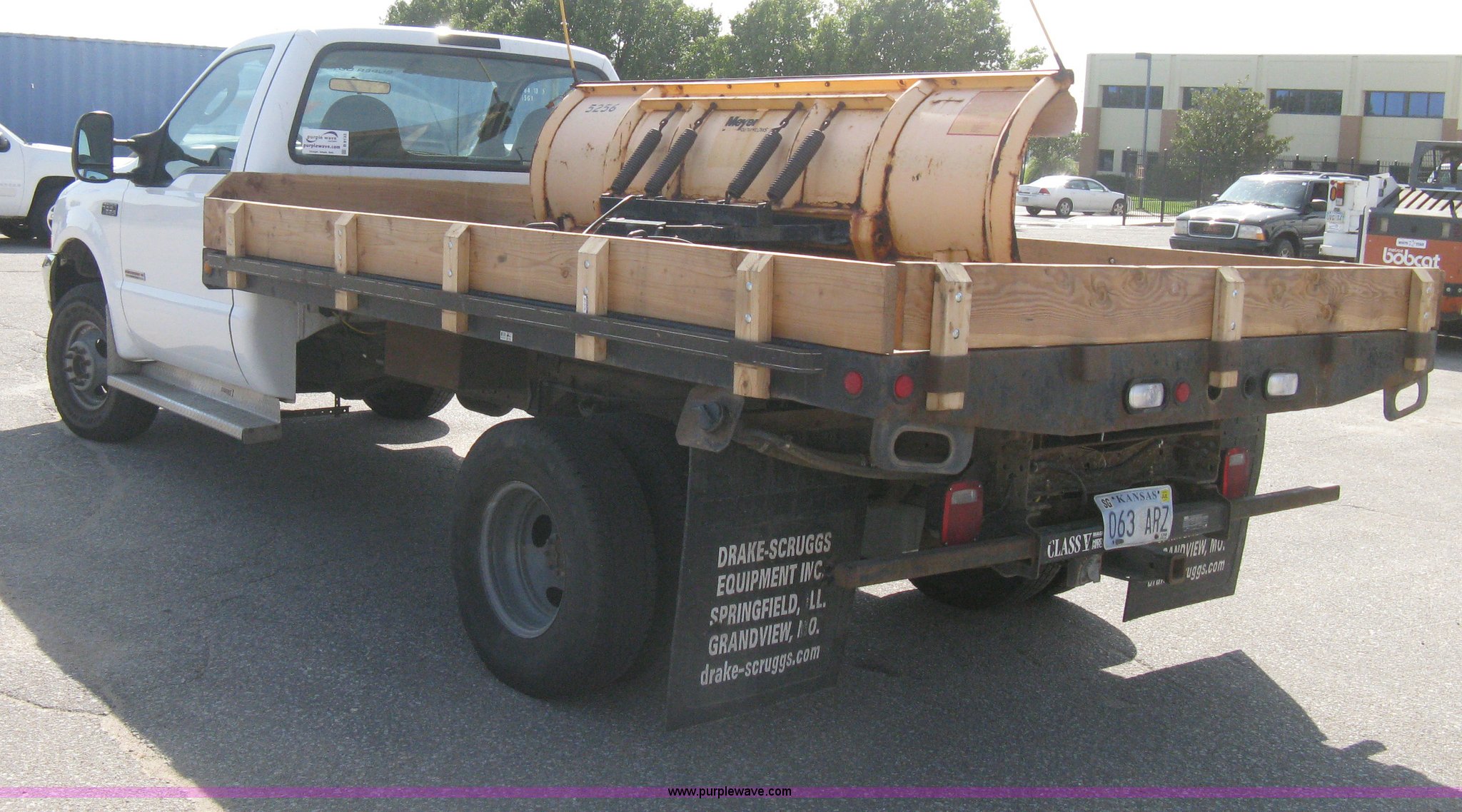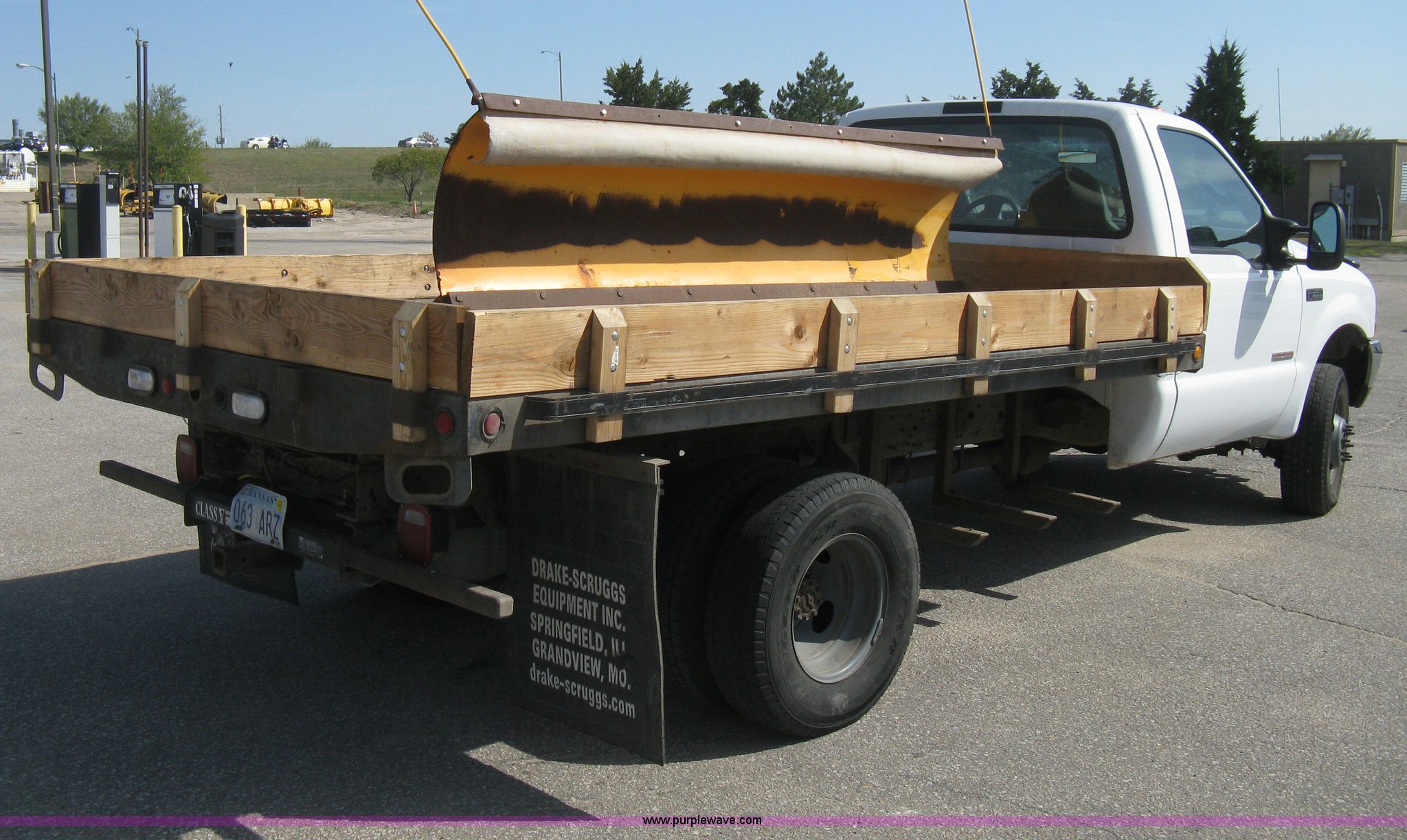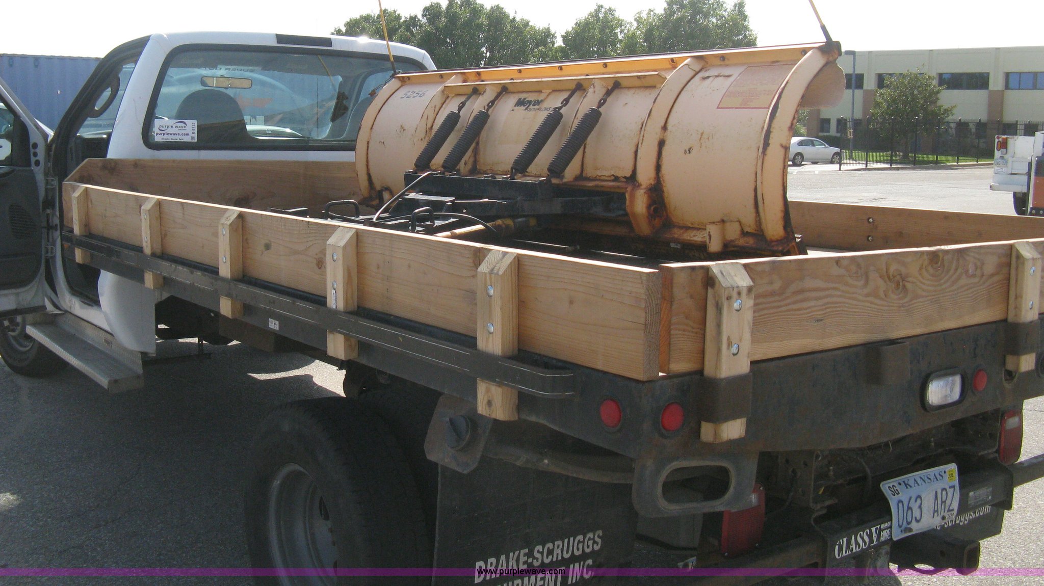 Purple Wave is selling a used 3/4 or 1 Ton Pickup or Van in Kansas. This item is a 2003 Ford F350 XL Super Duty flatbed pickup truck with the following: 150,887 miles on odometer, Powerstroke 6.0L V8 turbo diesel engine, Automatic transmission, Four wheel drive, AC and heat, Tilt, Cruise, AM/FM, Power windows and locks, Vinyl interior, Meyer snow plow remote, Strobe/plow light switch, Electric dump bed hoist remote, Venco dump flatbed, 11.6'L, Steel floor, Stake side pockets, 2" x 6" wood side boards, Electric scissor-style bed hoist, Meyer 8.6'W snow plow, Running boards, Receiver hitch, Trailer wiring, LT235/85R16 tires, Equip# 2076