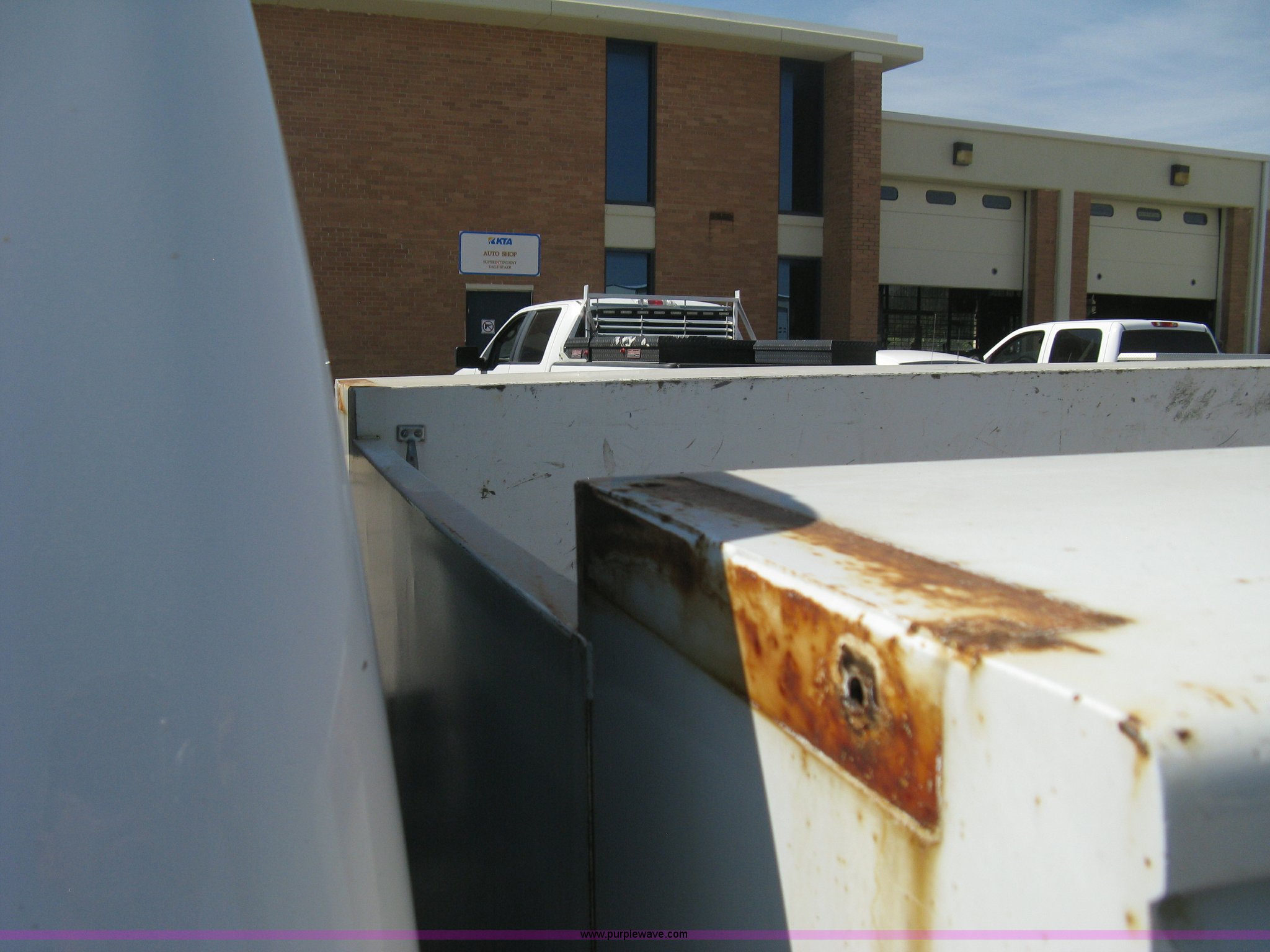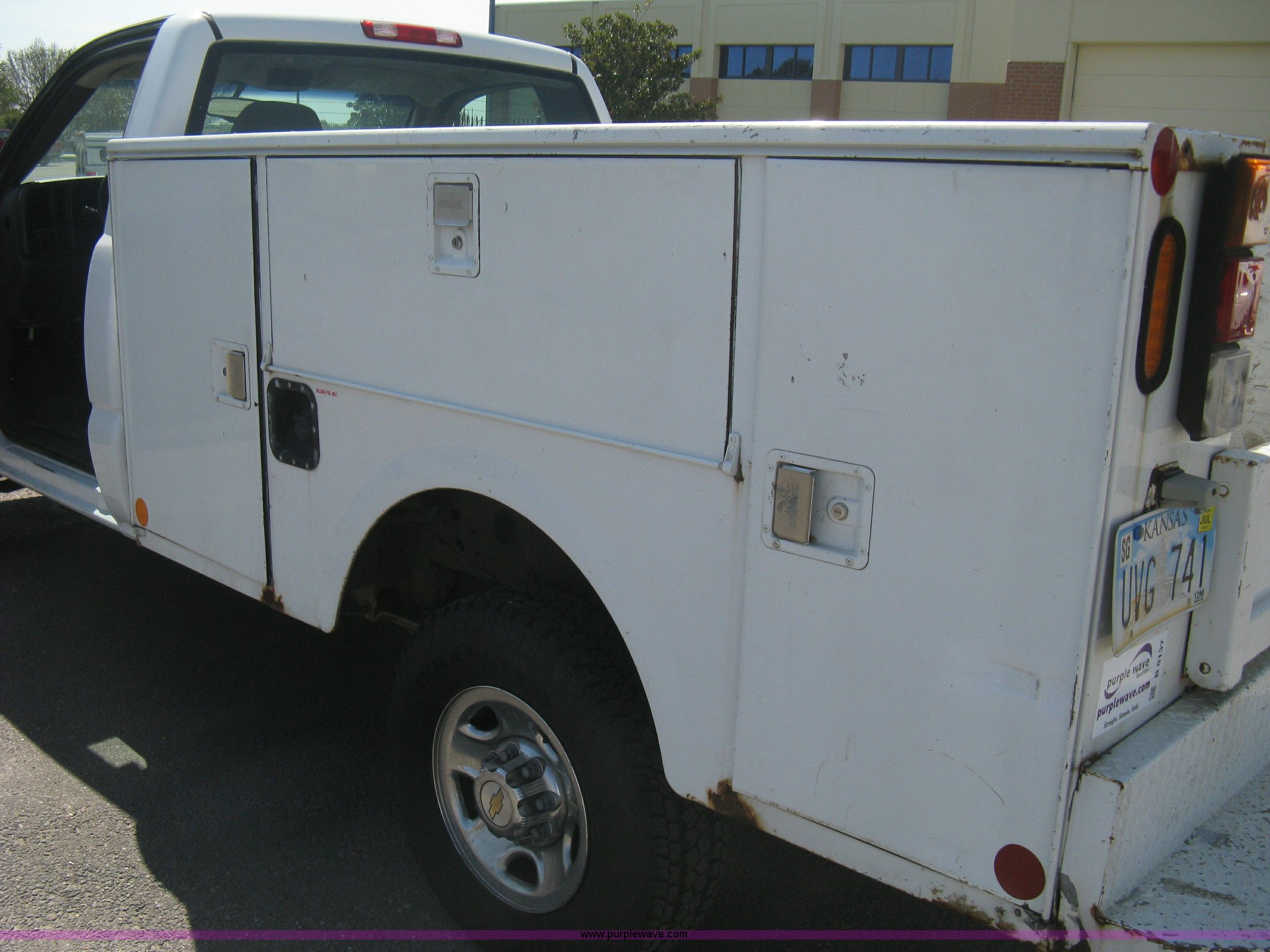 Purple Wave is selling a used Service Truck in Kansas. This item is a 2003 Chevrolet Silverado 2500HD utility pickup truck with the following: 164,193 miles on odometer, 6.0L V8 gas engine, Automatic transmission, AC and heat, Tilt, Cruise, AM/FM/CD, Power windows, locks, and mirrors, Cloth interior, Key fob, Digital compass and temperature display, Stahl utility body, 8'L x 78"W, (6) side toolboxes, Diamond plate floor, Extended rear bumper, Receiver hitch, Trailer wiring, LT245/75R16 tires, Paint peeling, Equip# 2049