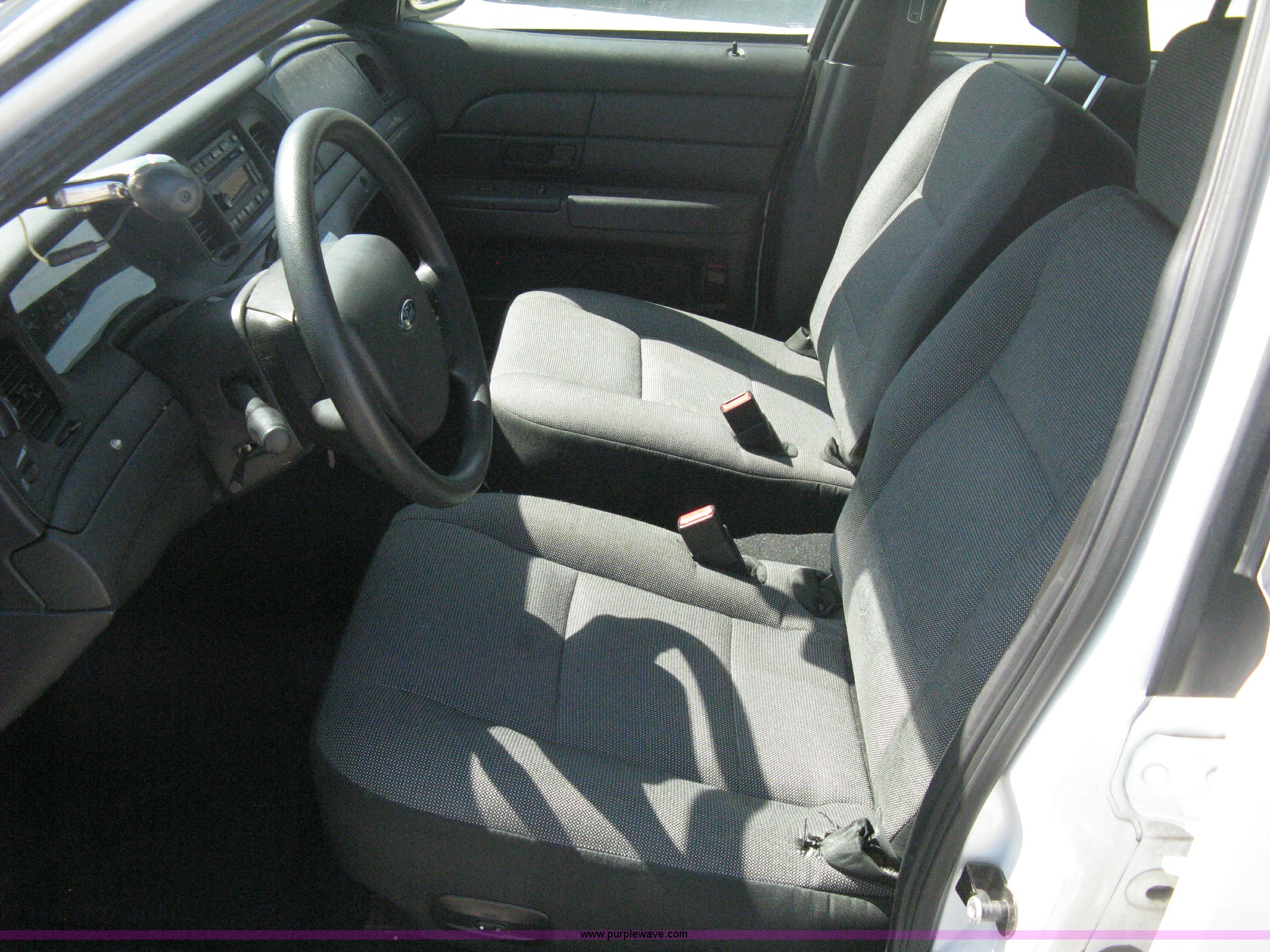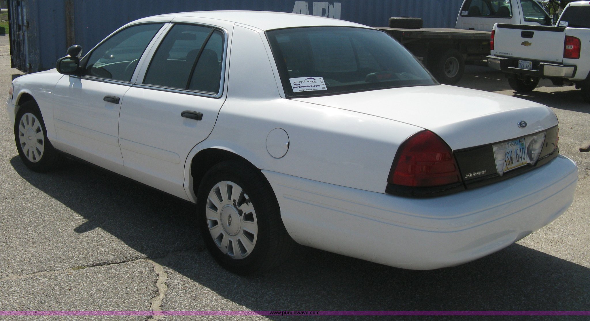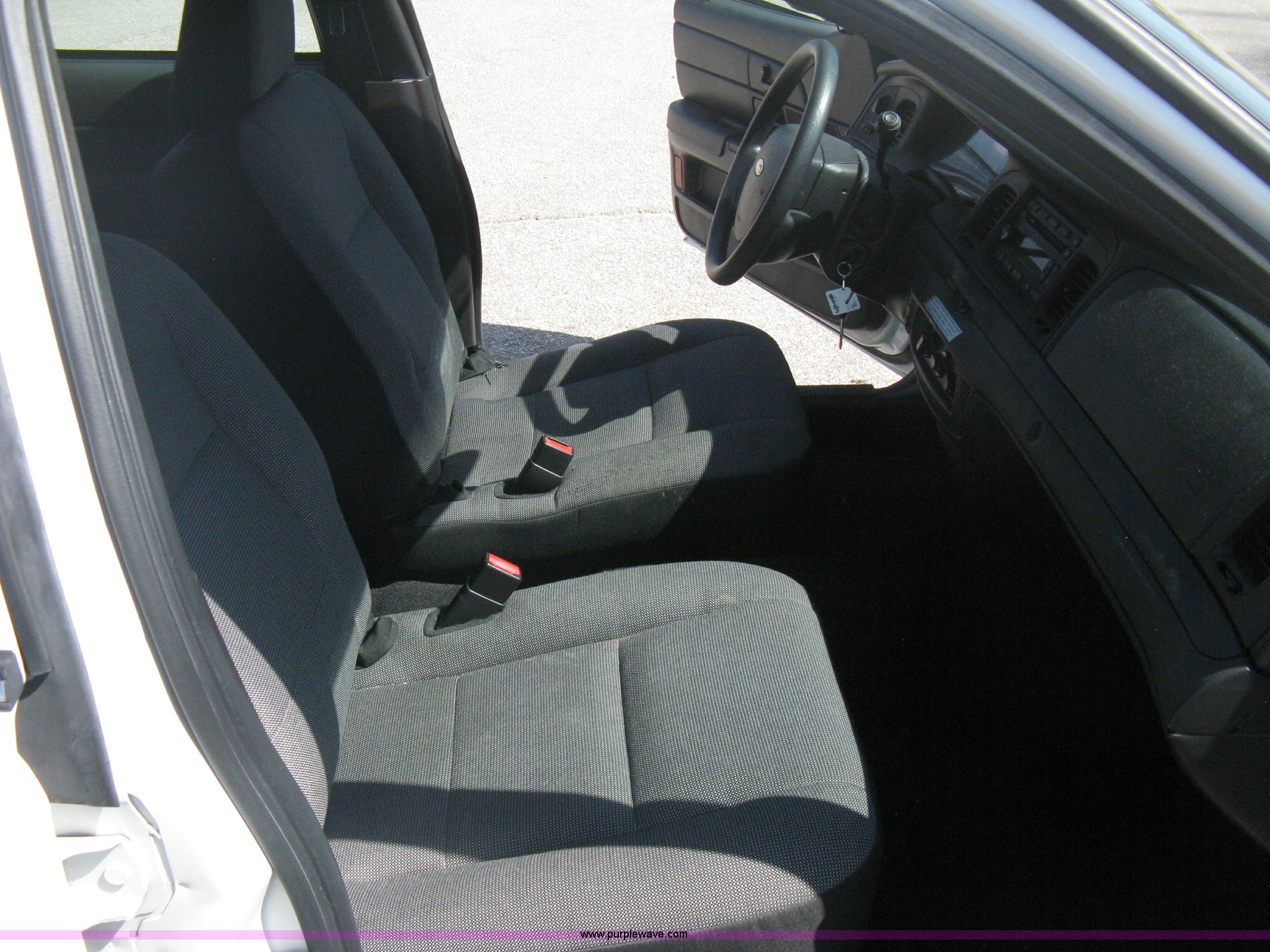 Purple Wave is selling a used Passenger Vehicle in Kansas. This item is a 2007 Ford Crown Victoria Police Interceptor with the following: 119,571 miles on odometer, 4.6L V8 EFI gas engine, Automatic transmission, AC and heat, Tilt, Cruise, AM/FM/CD, Power windows, locks, mirrors, and seats, Cloth interior, Spotlight, P235/55R17 tires, Spare tire, Body molding strip on passenger door missing, Equip# 5996