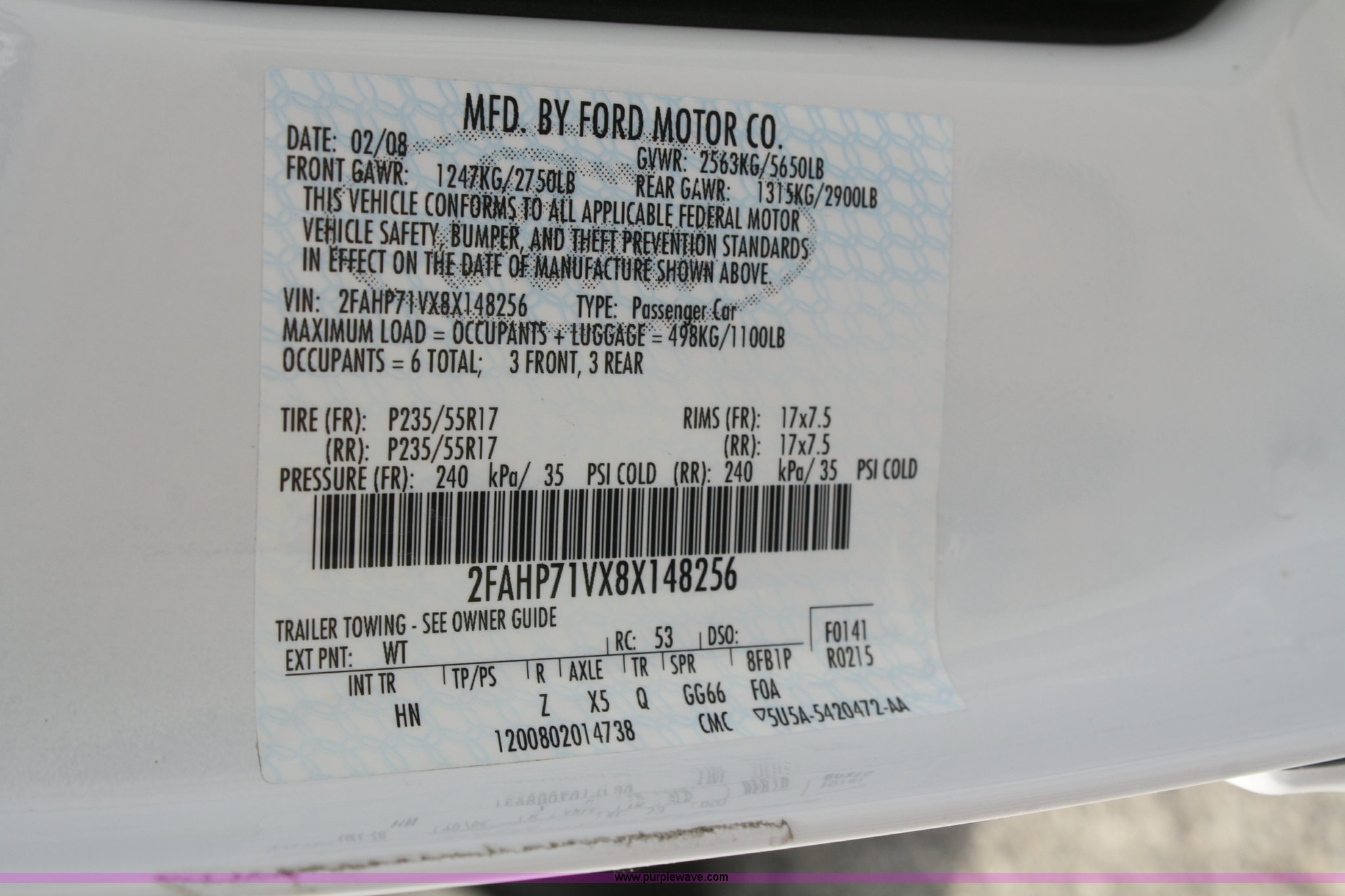 Purple Wave is selling a used Passenger Vehicle in Kansas. This item is a 2008 Ford Crown Victoria Police Interceptor with the following: 100,536 miles on odometer, 4.6L V8 EFI gas engine, Automatic transmission, AC and heat, Tilt, Cruise, AM/FM/CD, Power windows, locks, mirrors, and seats, Cloth interior, Fire suppression system, Spotlight, 235/55R17 tires, Equip# 5908