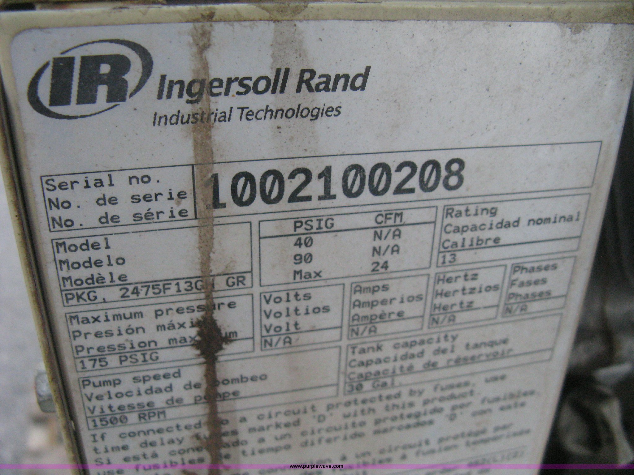 Ingersoll Rand gas powered air compressor. Honda GX390 engine, IR 2475 compressor, Serial 1002100208. Shipping quotes available. Kansas Turnpike Authority. 9401 E Kellogg. Wichita, KS 67207