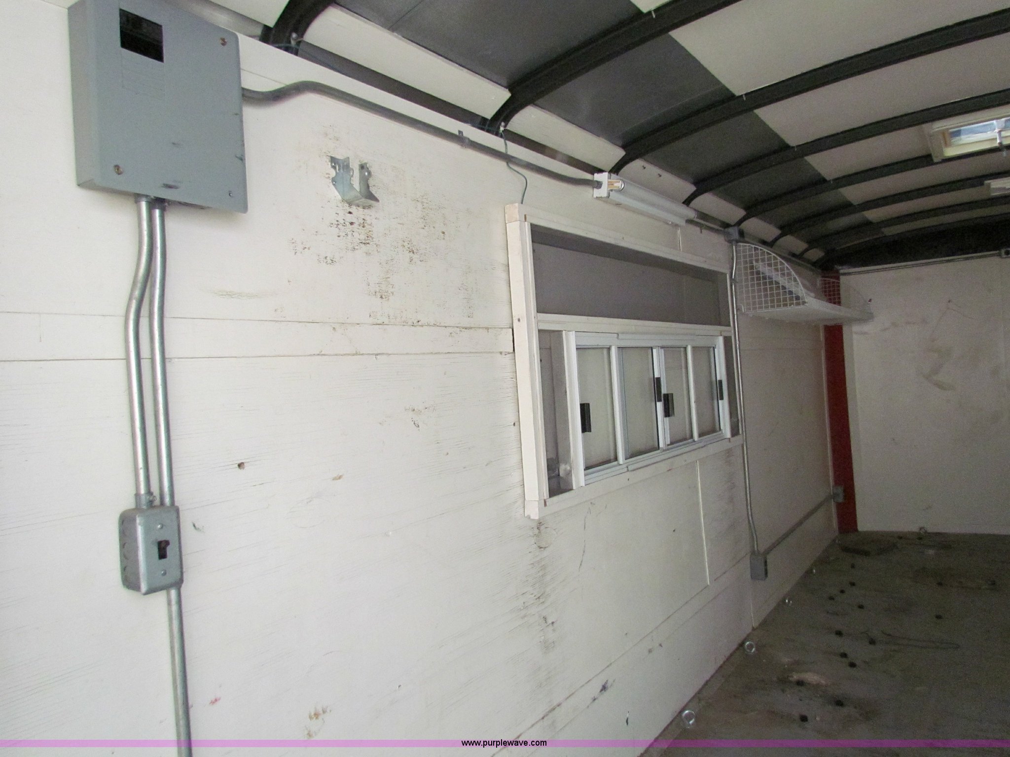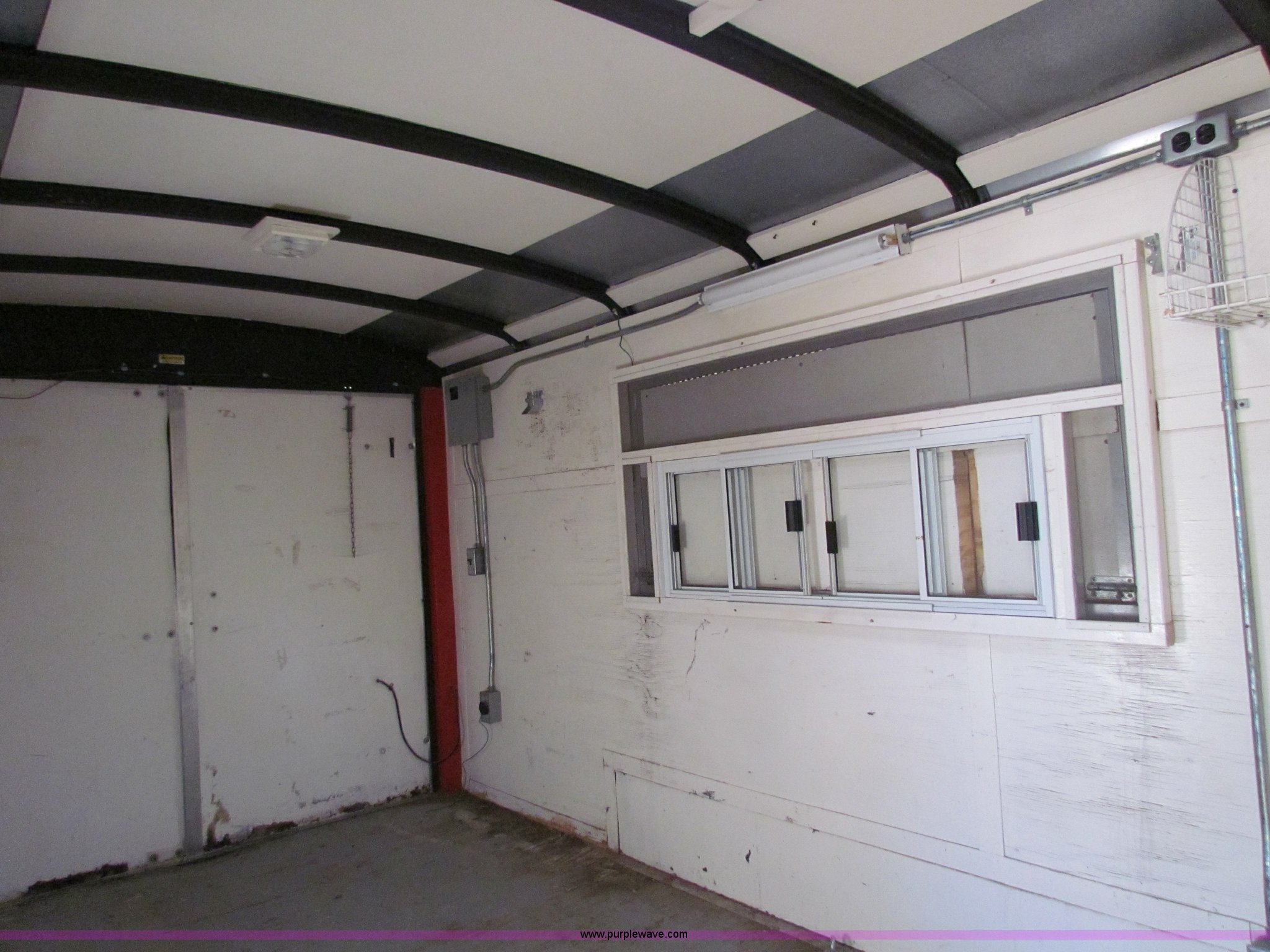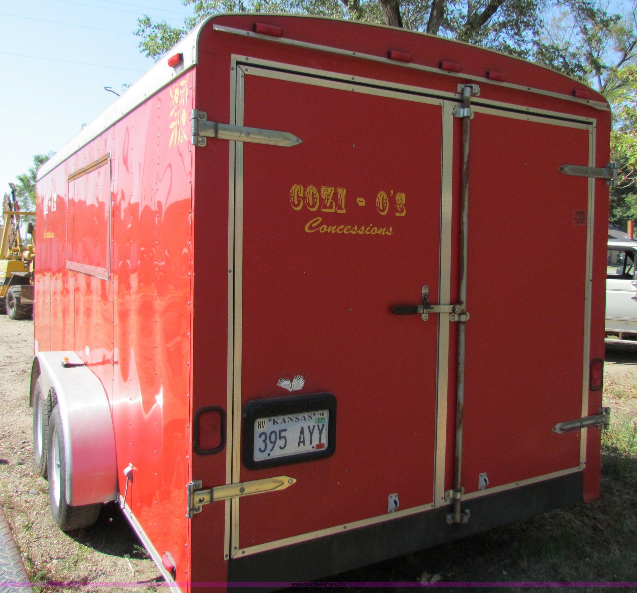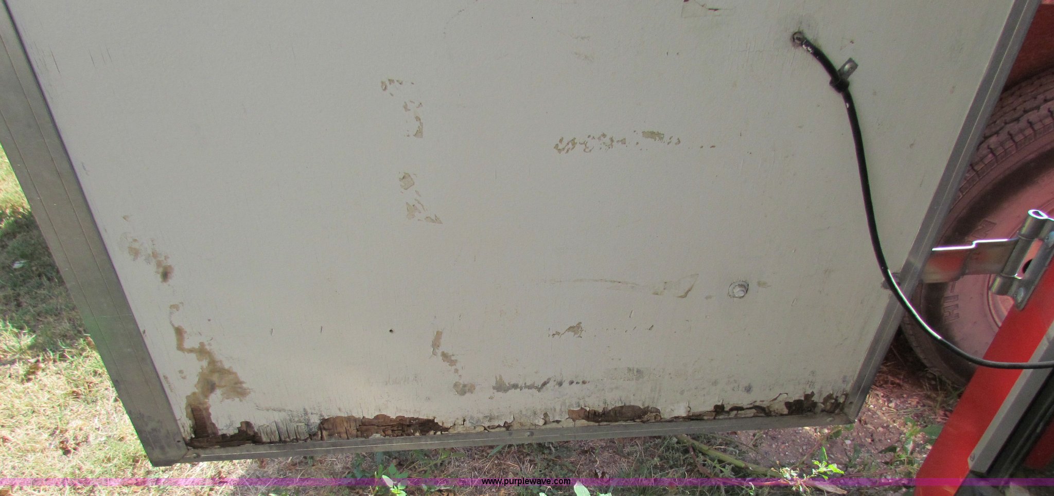 Purple Wave is selling a used Enclosed Cargo Trailer in Kansas. This item is a 1999 16' enclosed trailer with the following: 80"W, Wired for outlet, 2" ball, 205/75R15 tires, GVWR 7,000 lbs, Roof vent missing, Bottom of rear doors and parts of floor rotten