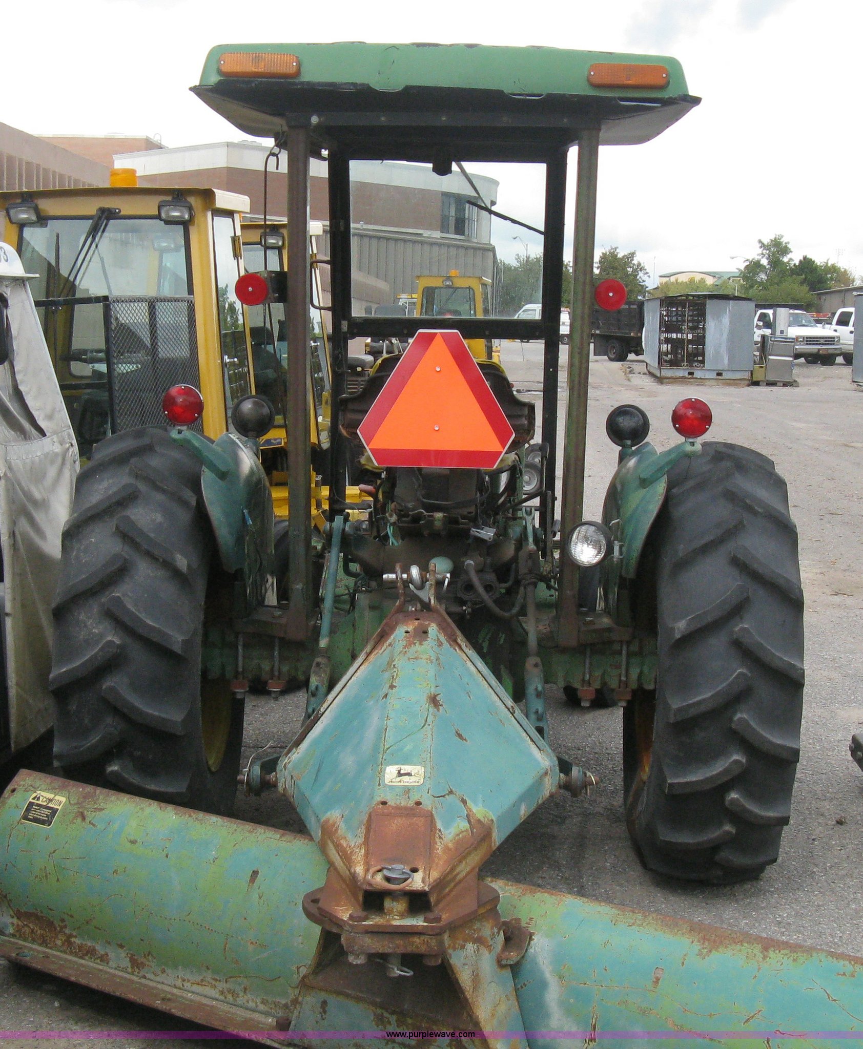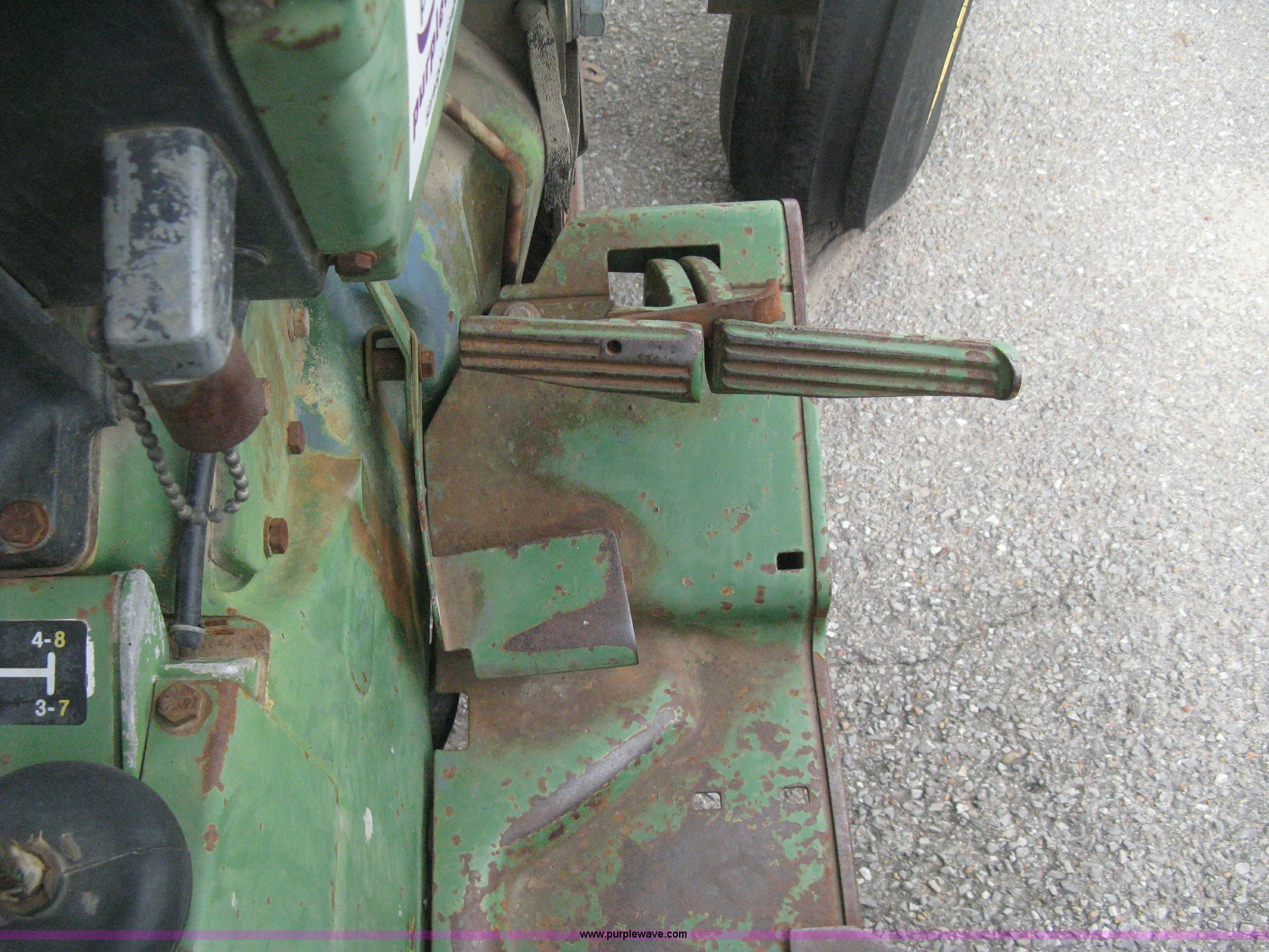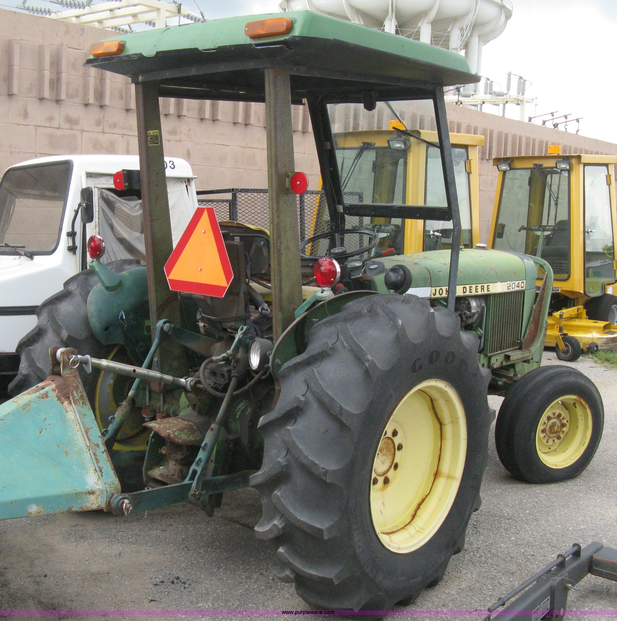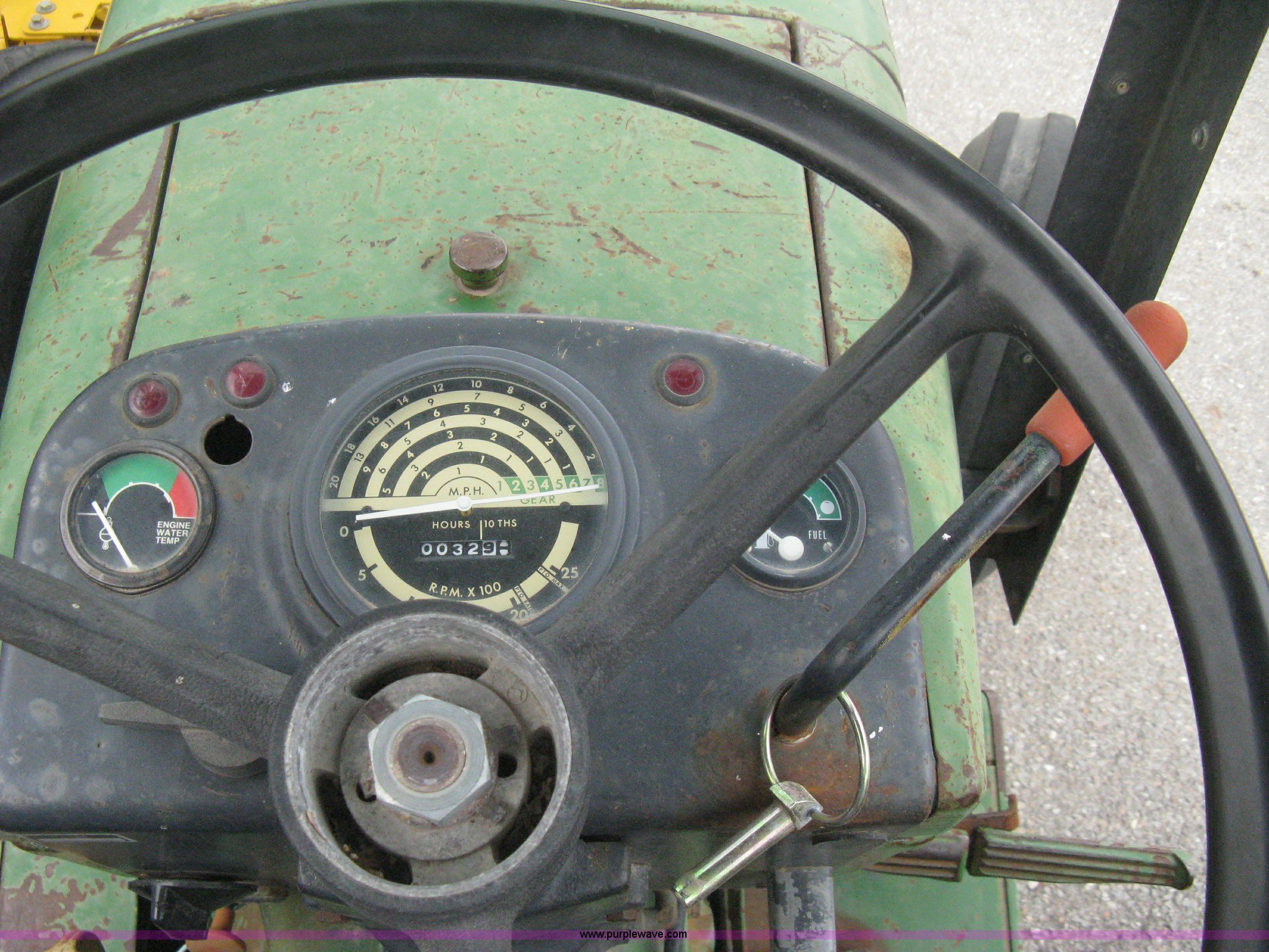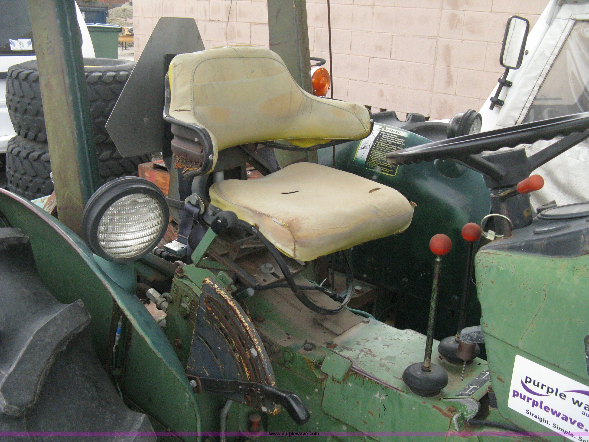 Purple Wave is selling a used Tractor in Kansas. This item is a 1980 John Deere 2040 tractor with the following: 32 hours on meter, Actual hours unknown, Three cylinder diesel engine, Four speed Hi-Low transmission, ROPS, Hard top canopy with lights, Windshield wiper, Foot pedal and column throttle control, Block heater, Three point, 540 PTO, Hydraulic remotes, Draw bar, 8' rear blade, Bolt on edge, Manual angle adjust, Rear exhaust with muffler, (6) suitcase weights, 14.9-24 rear tires, 7.50-15 front tires, (2) 21.5L-16.1 rear turf tires included, Two post roll bar included, Serial 3164DL-04/362795CD