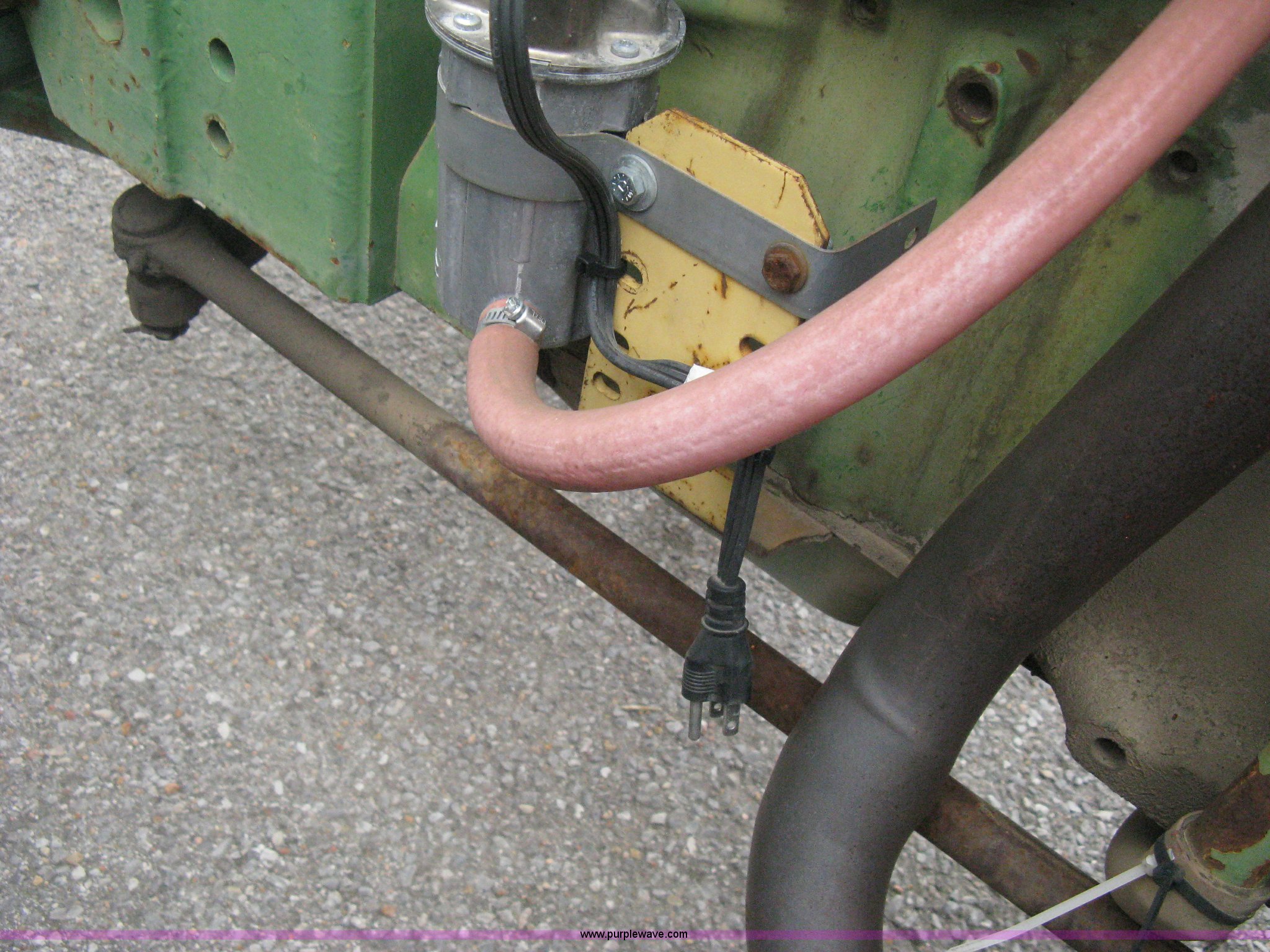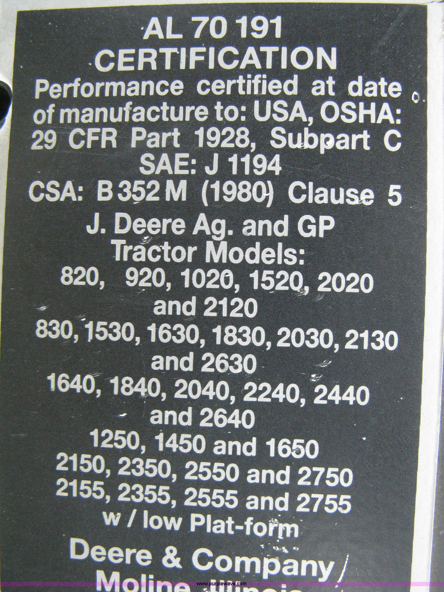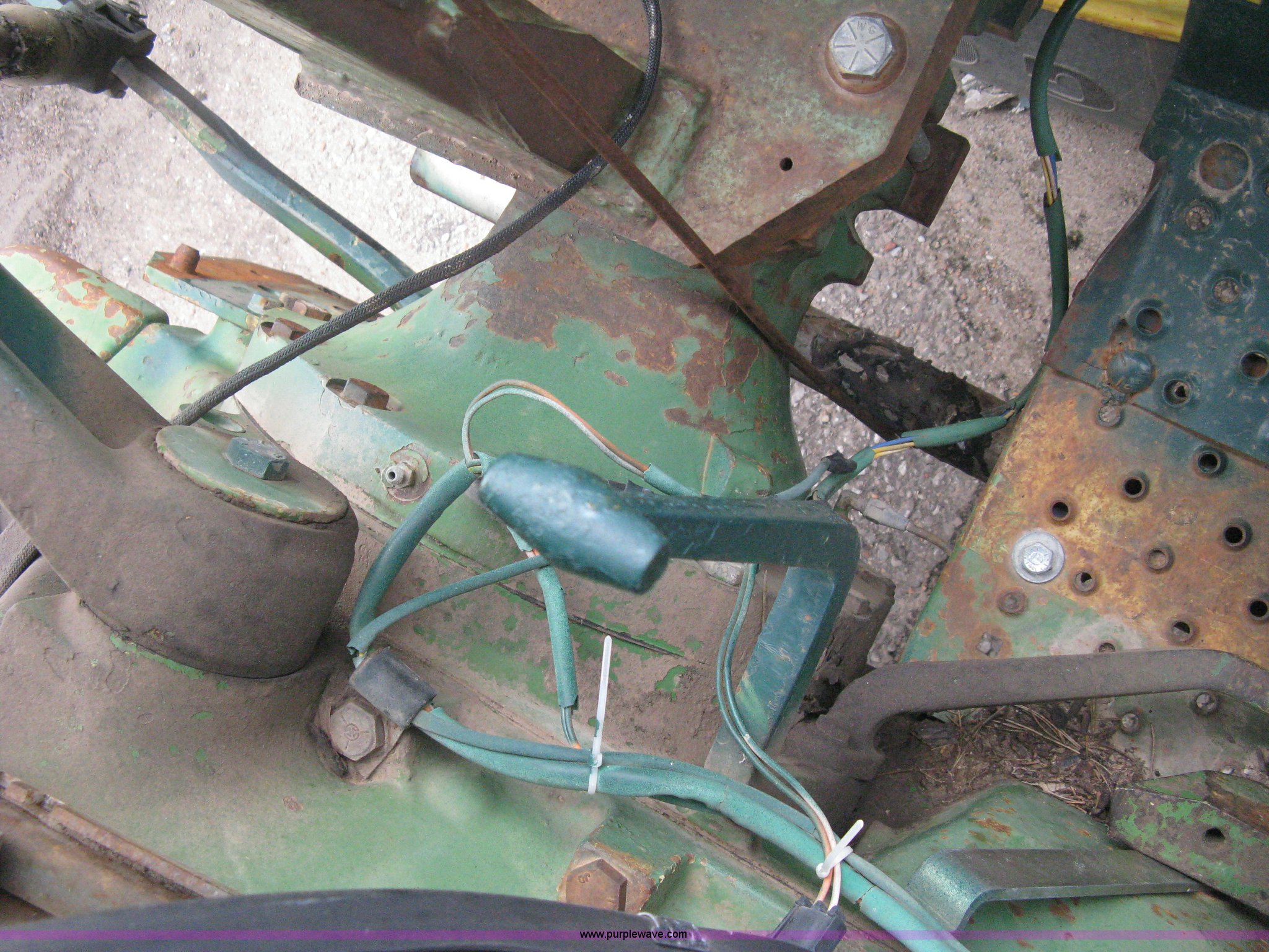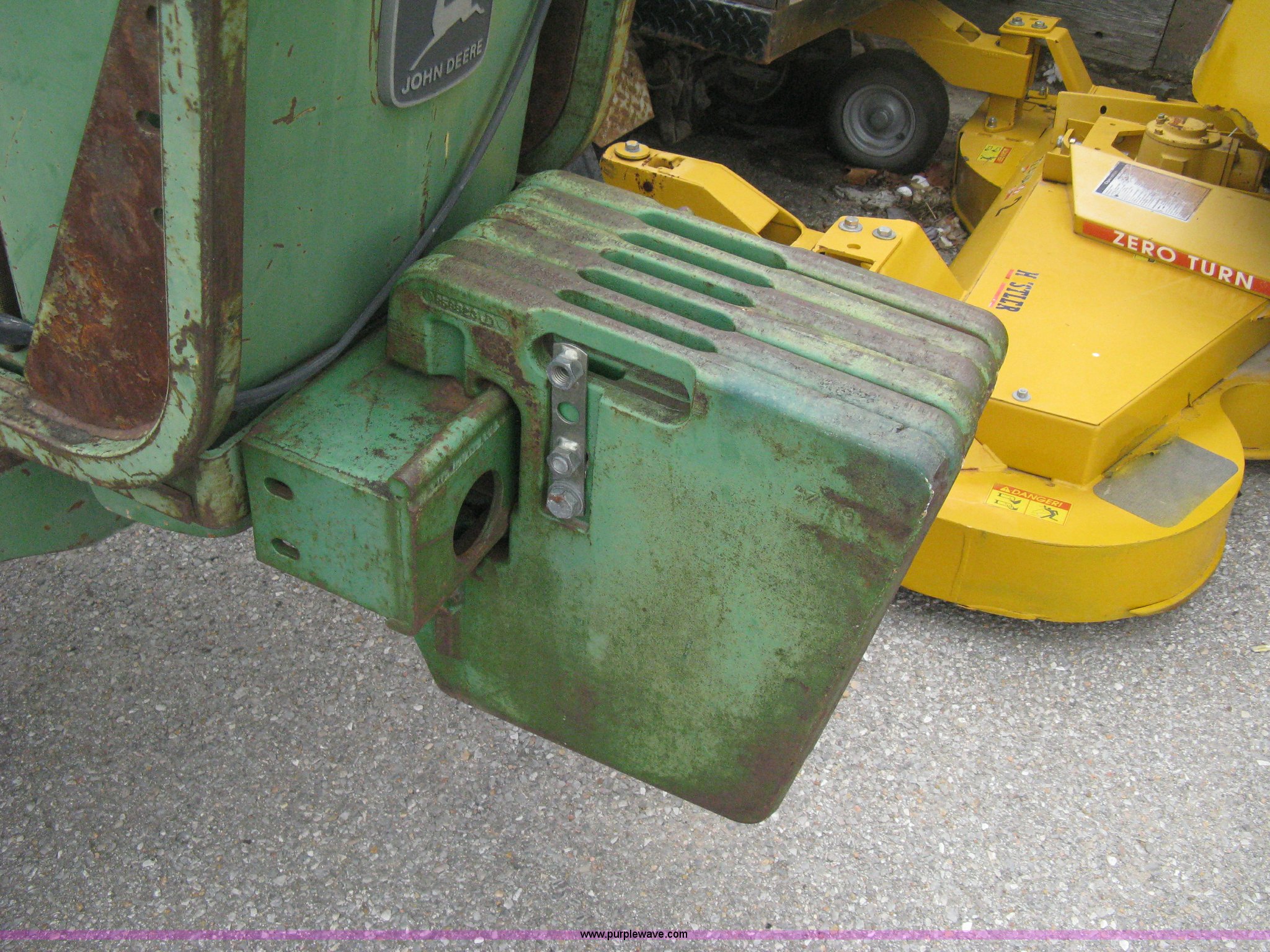 Purple Wave is selling a used Tractor in Kansas. This item is a 1980 John Deere 2040 tractor with the following: 32 hours on meter, Actual hours unknown, Three cylinder diesel engine, Four speed Hi-Low transmission, ROPS, Hard top canopy with lights, Windshield wiper, Foot pedal and column throttle control, Block heater, Three point, 540 PTO, Hydraulic remotes, Draw bar, 8' rear blade, Bolt on edge, Manual angle adjust, Rear exhaust with muffler, (6) suitcase weights, 14.9-24 rear tires, 7.50-15 front tires, (2) 21.5L-16.1 rear turf tires included, Two post roll bar included, Serial 3164DL-04/362795CD