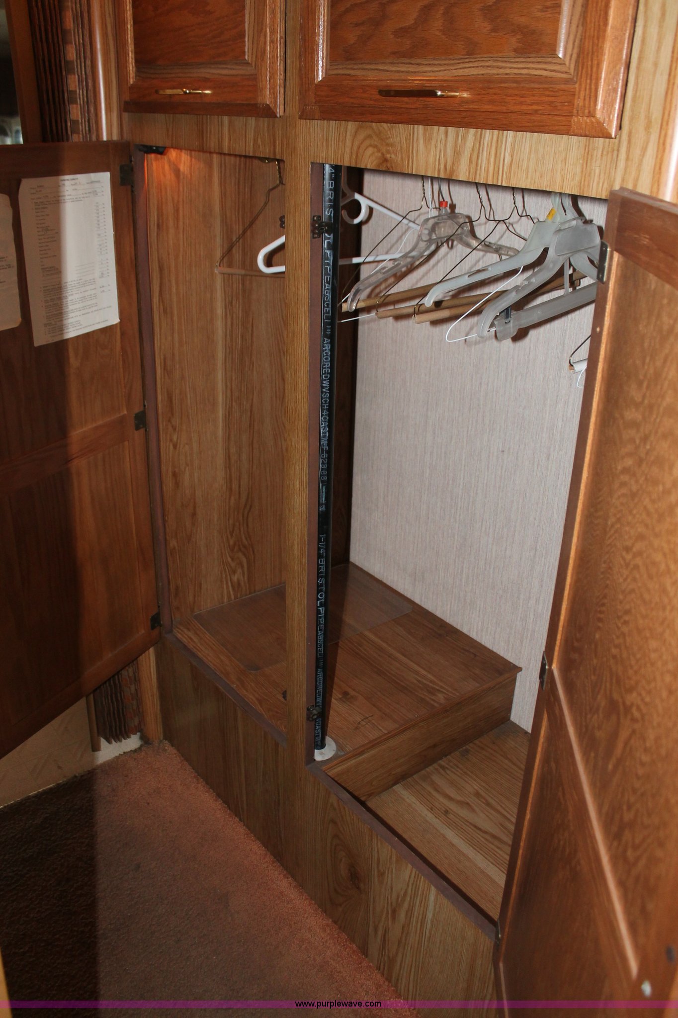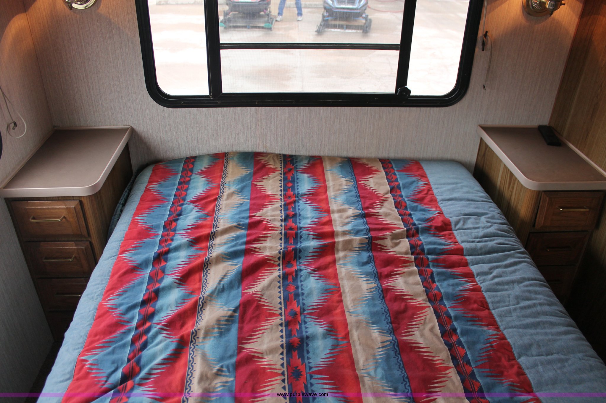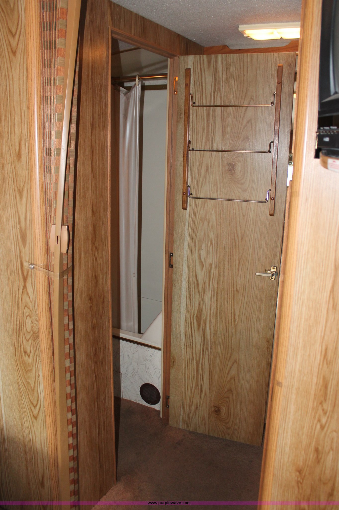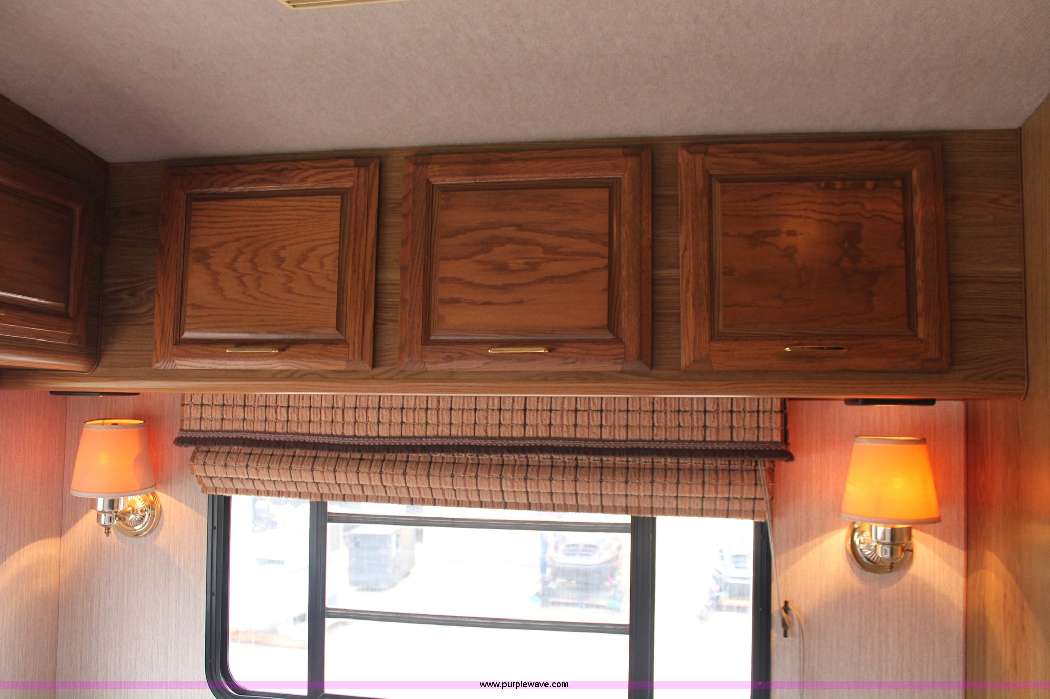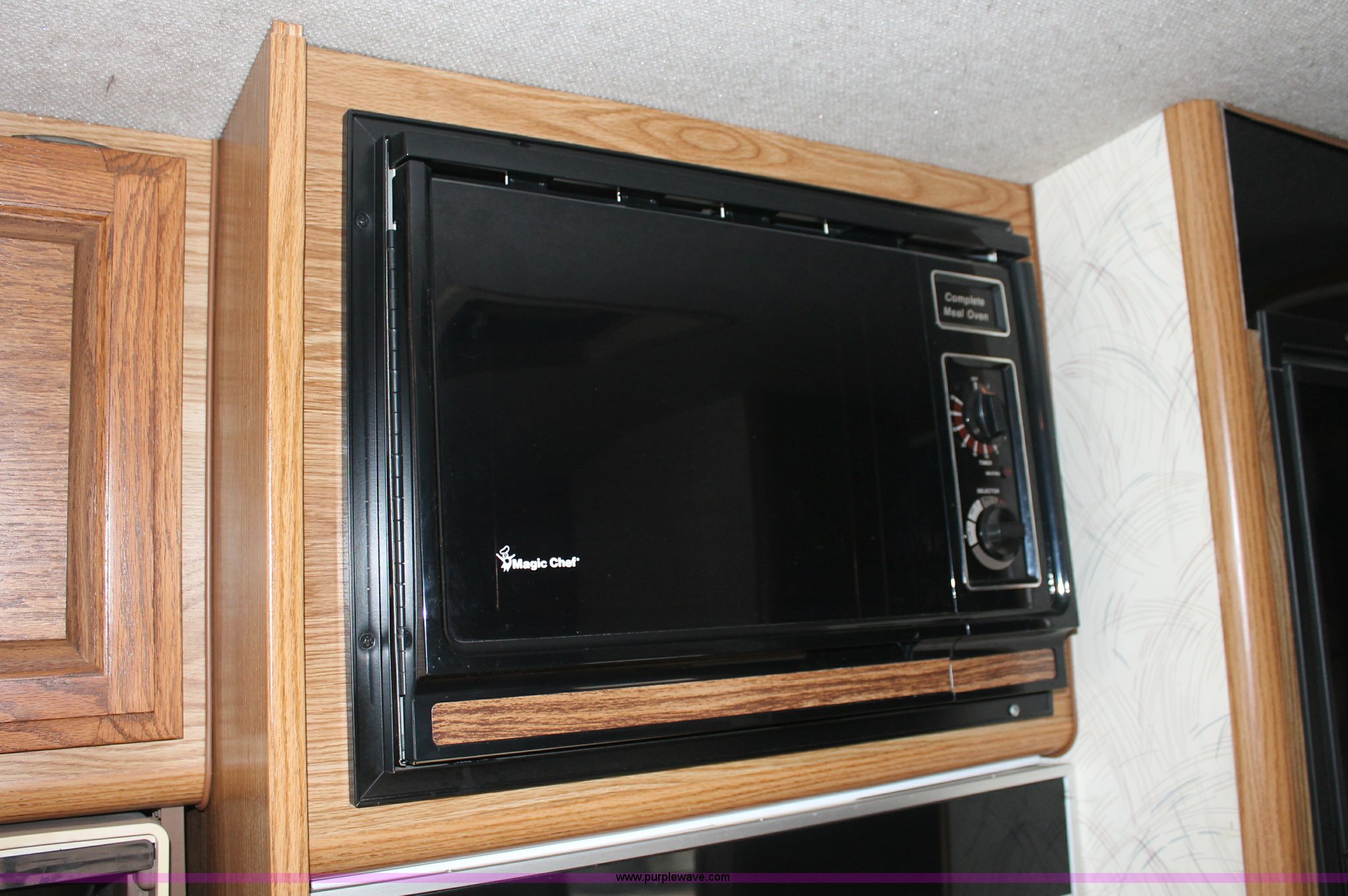 Purple Wave is selling a used RV in Kansas. This item is a 1991 Fleetwood Bounder 31' RV camper with the following: 53,594 actual miles, Chevrolet 454 V8 gas engine, Turbo 400 automatic transmission, AC and heat, Tilt, Cruise, AM/FM/CD, Manual windows and locks, Cobra 18 weatherband CB radio, Cloth interior, Six person capacity, (2) Panasonic televisions, Optimus sound system, Onan 6500 Emerald Plus GenSet, 867 hours on meter, Two basin sink, Black & Decker coffee maker, Magic Chef microwave, Magic Chef four burner range and oven, Norcold refrigerator/freezer combo, Toilet, lavatory, and shower, (2) Colman AC units, Central heat, Private master bedroom, Master shut-off switch, Oak trim, Electric entry steps, Retractable awning, Exterior storage, Receiver hitch, 2" ball, Trailer wiring, 8R19.5 tires, Recently replaced, Engine oil leak