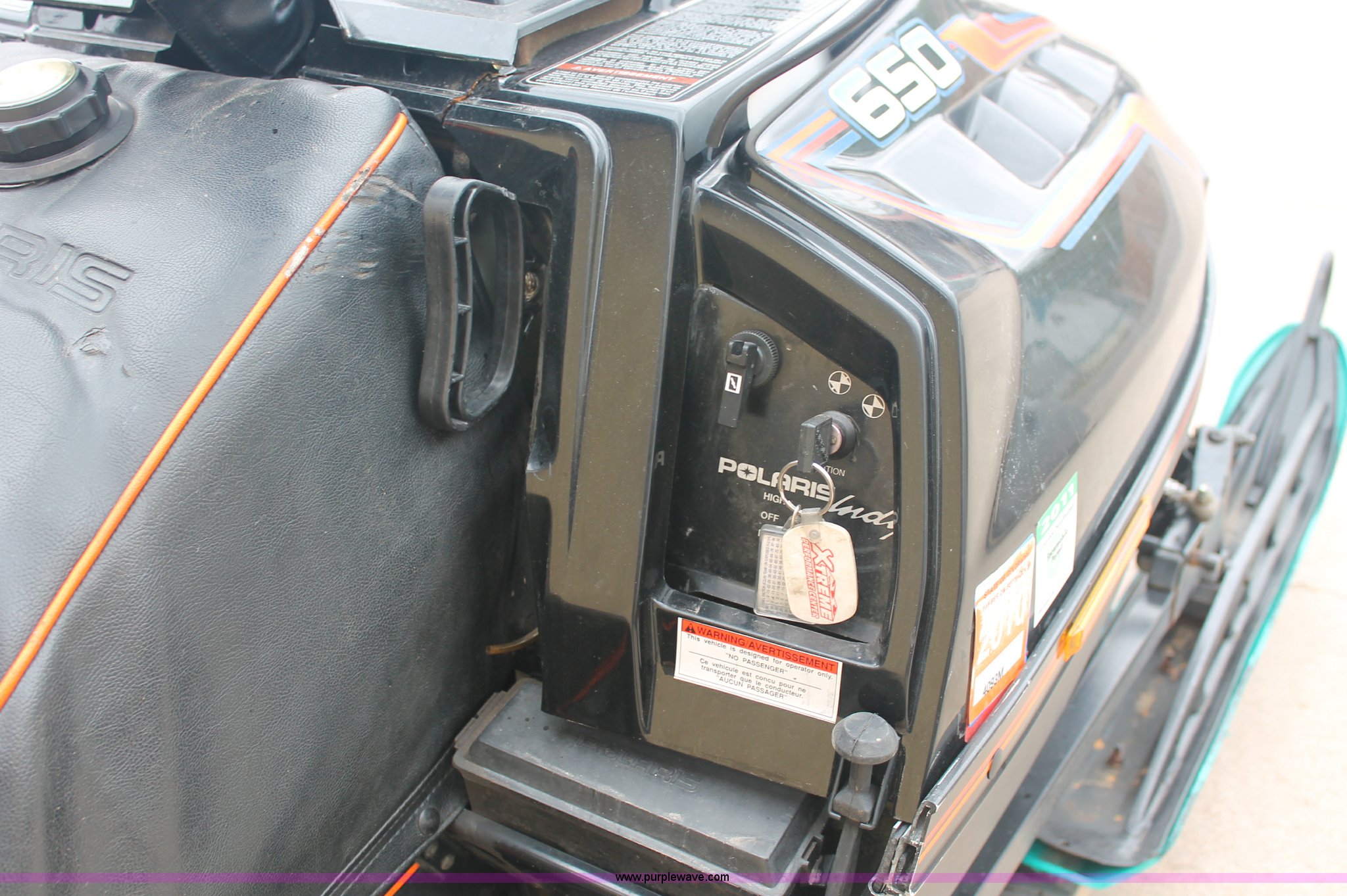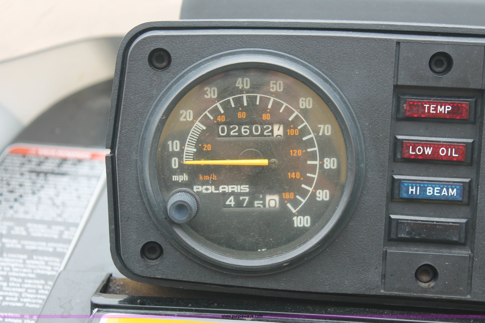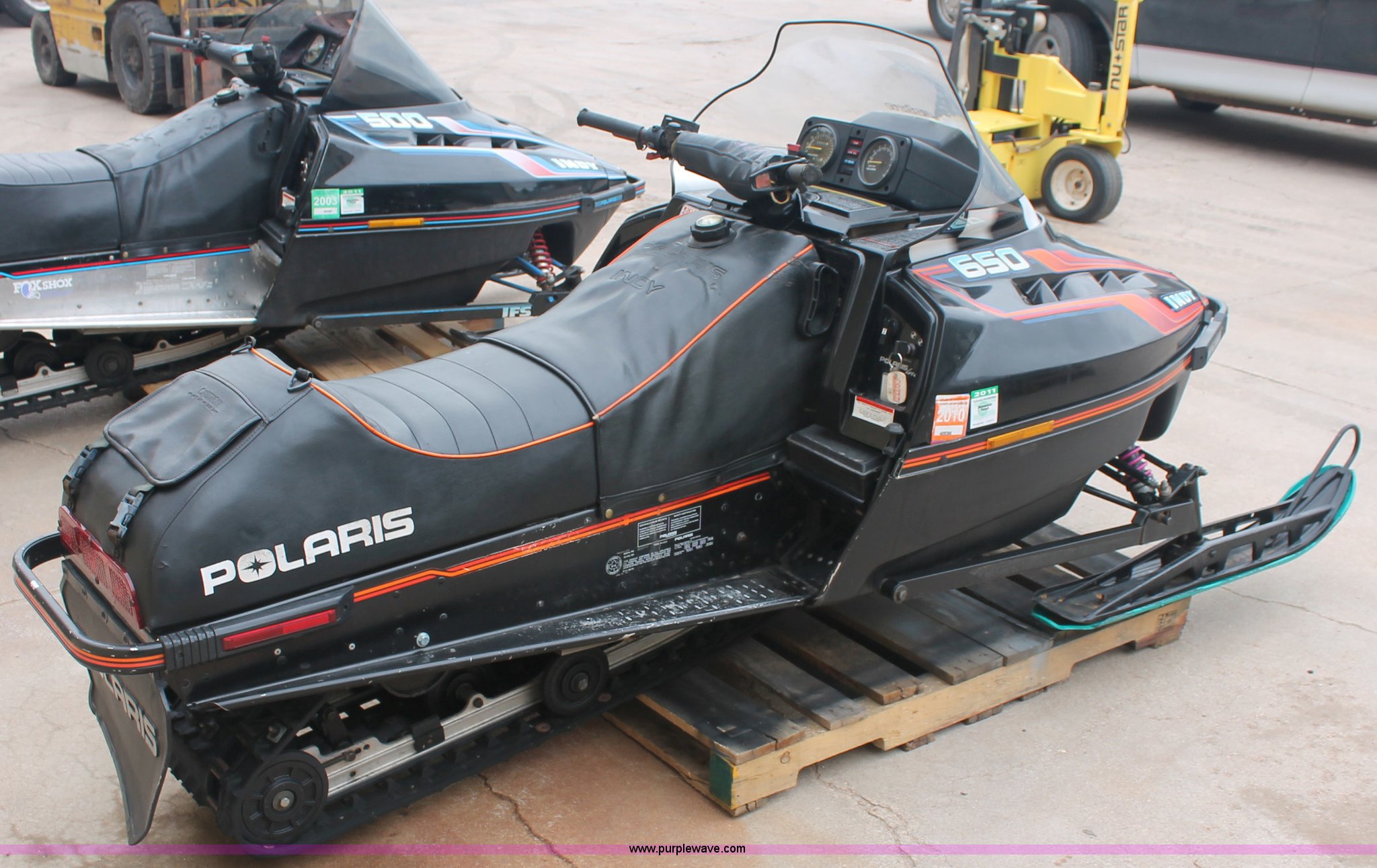 Purple Wave is selling a used ATV in Kansas. This item is a 1990 Polaris Indy 650 snowmobile with the following: 2,602 miles on odometer, Polaris three cylinder gas engine, Oil injected, Pull start, Leather seat, Spare belt, 42" blades, 15"W ice stud track, Model 0920758, Serial 1904453