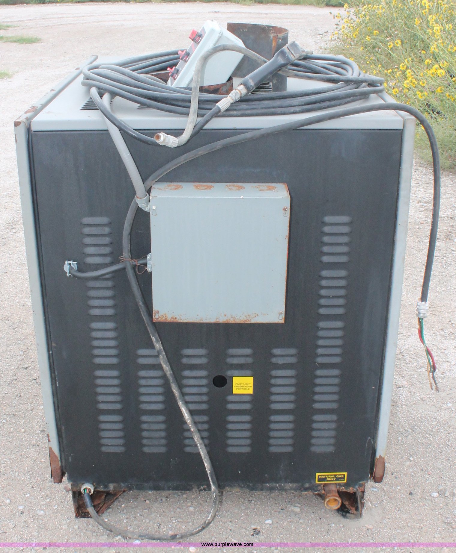 Purple Wave is selling a used Tools in Kansas. This item is a Landa VNG power washer with the following: Model VNG4-20021B/R, 1,990 hours on meter, Baldor 5 HP motor, Natural gas fired burner, Auto pilot ignition, Control box, Temperature, chemical, and steam control, 4 gpm at 2,000 psi, 230V, Three phase, Serial P0193-8233
