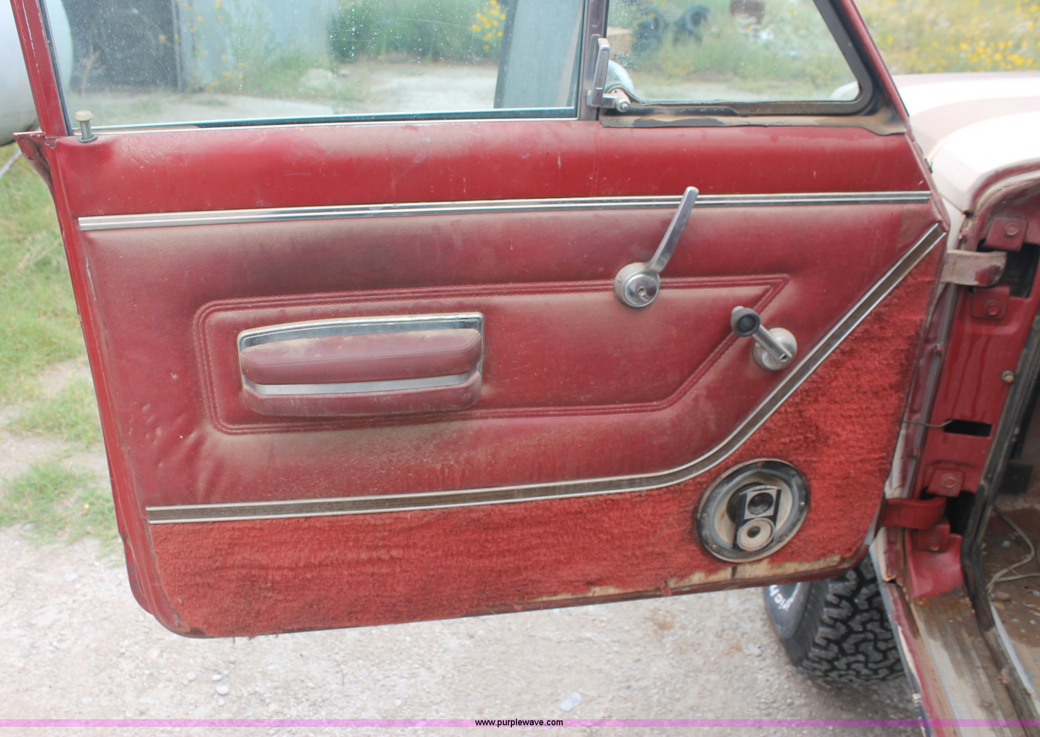 Purple Wave is selling a used Passenger Vehicle in Kansas. This item is a 1977 Jeep Wagoneer SUV with the following: 27,316 miles on odometer, AMC 360 gas engine, Quadratrac automatic transmission, Four wheel drive, AC and heat, AM/FM/cassette, Manual windows and locks, Cloth interior, 6" lift with drop pitman arm, Receiver hitch, BF Goodrich All-Terain 33x10.5R15LT tires, Missing door windows, Unknown operational condition for interior accessories, Operational, not driven on a regular basis for six years