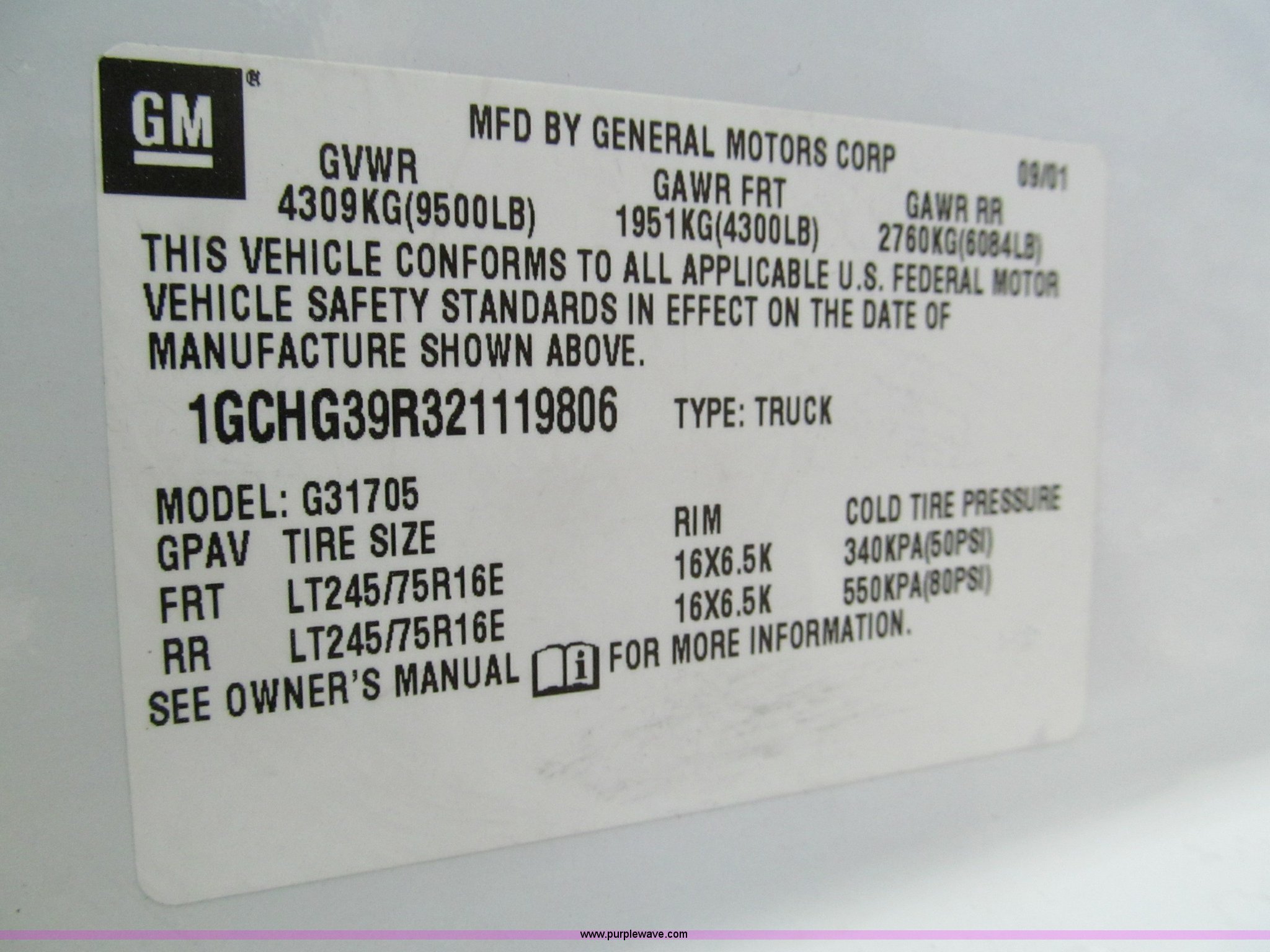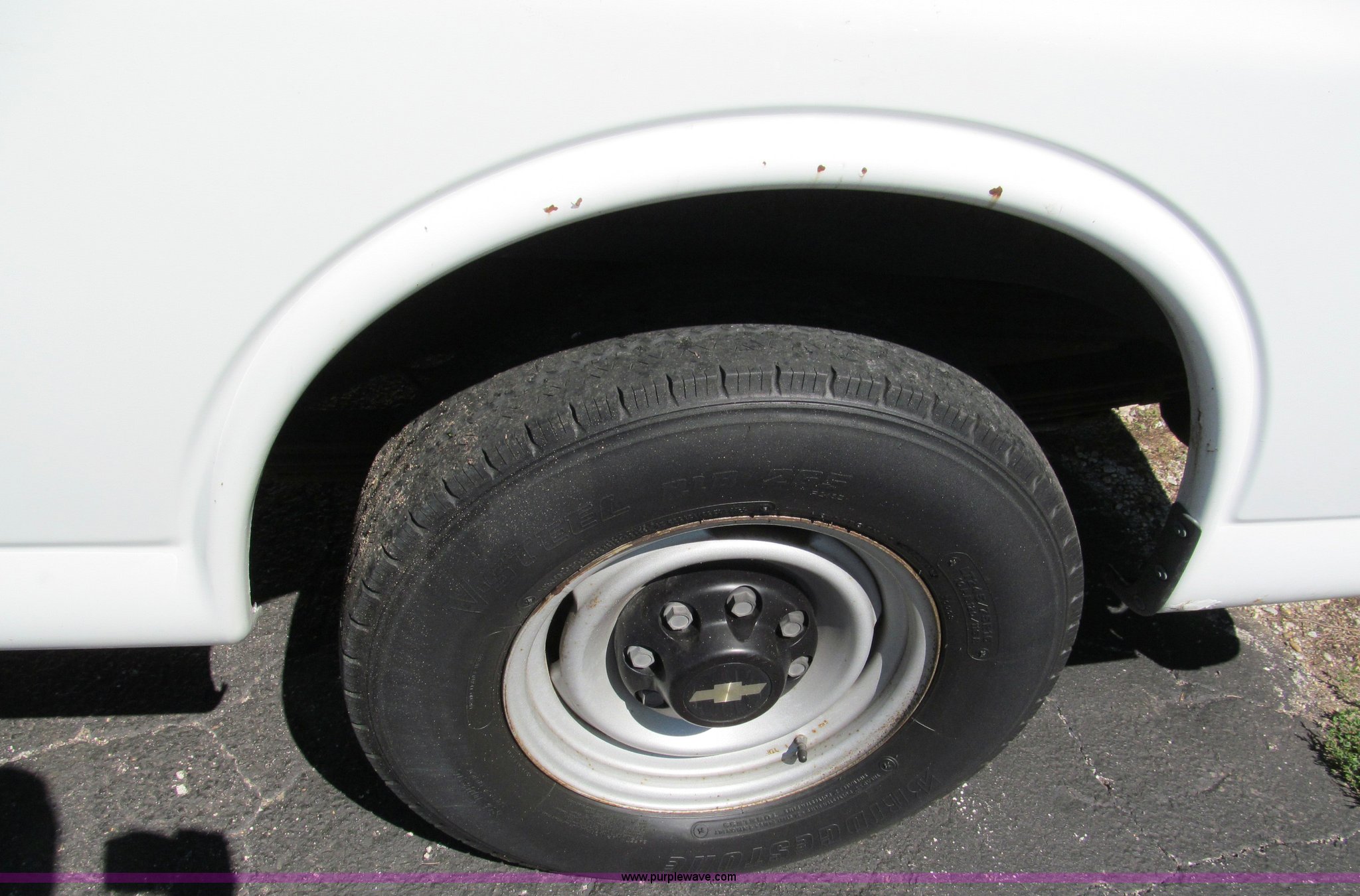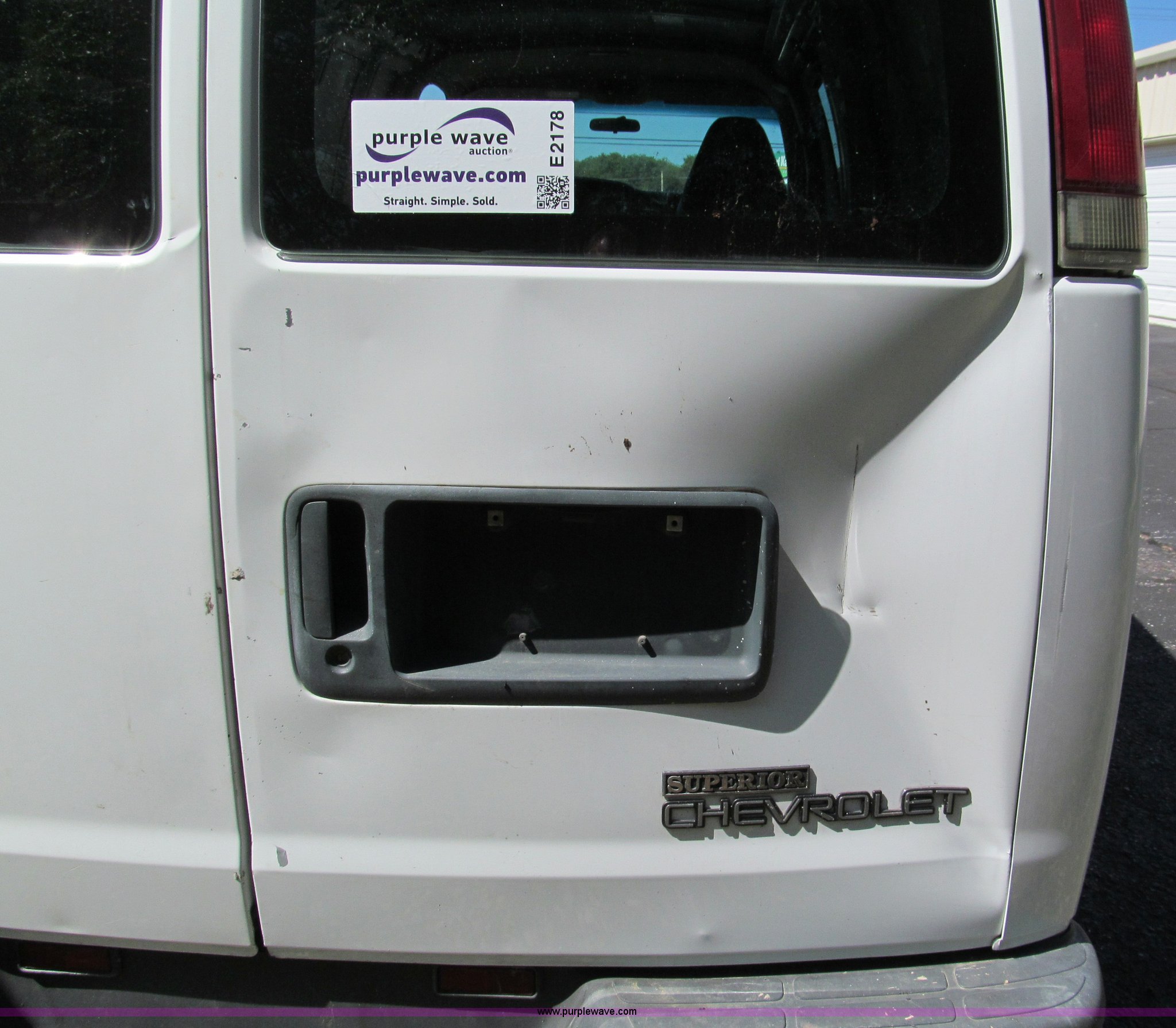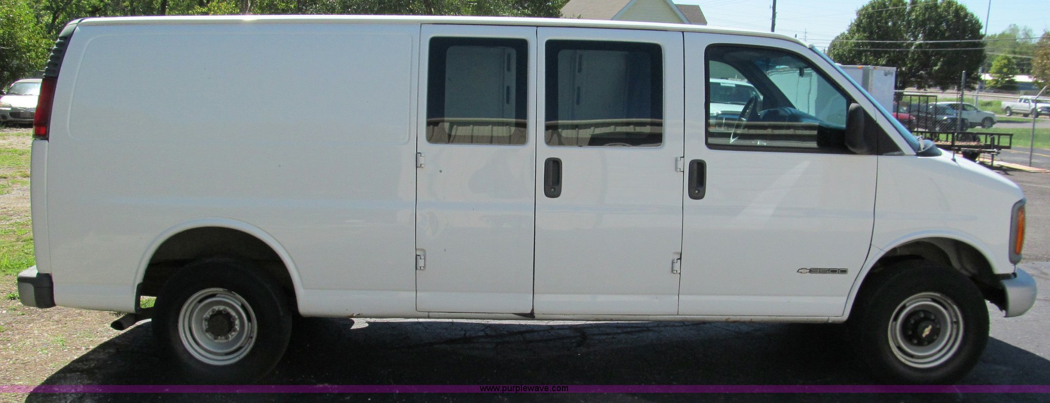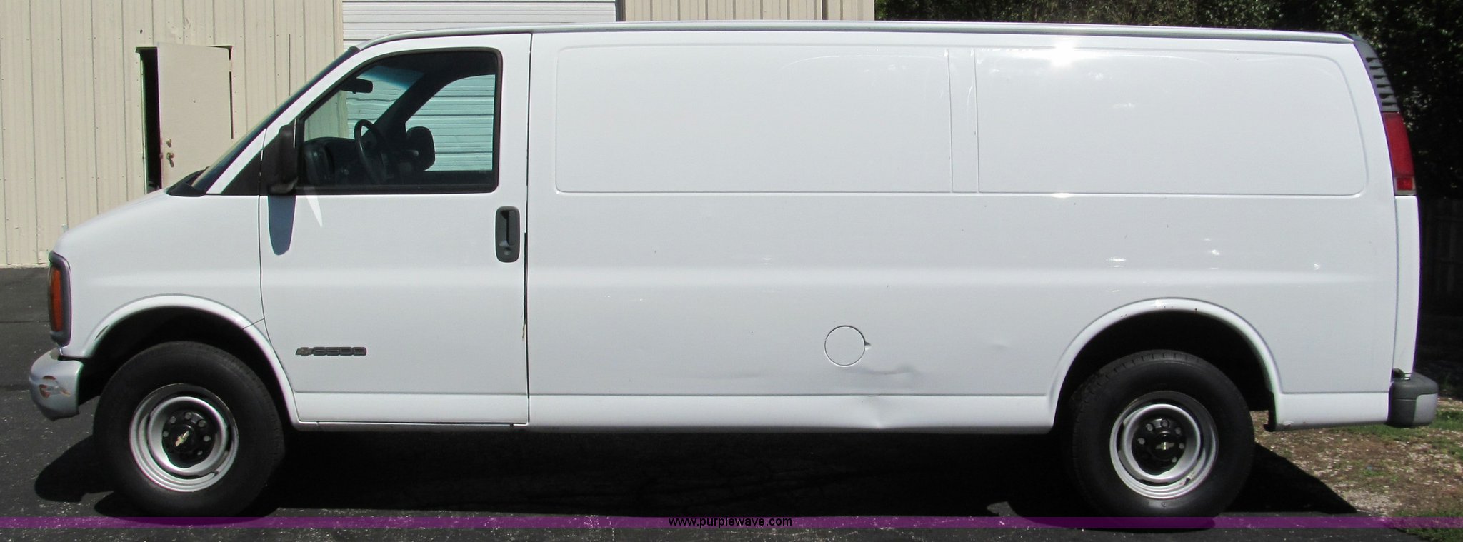 Purple Wave is selling a used Passenger Vehicle in Missouri. This item is a 2002 Chevrolet G3500 extended cargo van with the following: 86,567 actual miles, 5.7L V8 CPI gas engine, Automatic transmission, AC and heat, AM/FM, Manual windows and locks, Vinyl interior, 245/75/16 tires, Some dents, Interior/exterior cosmetic damage
