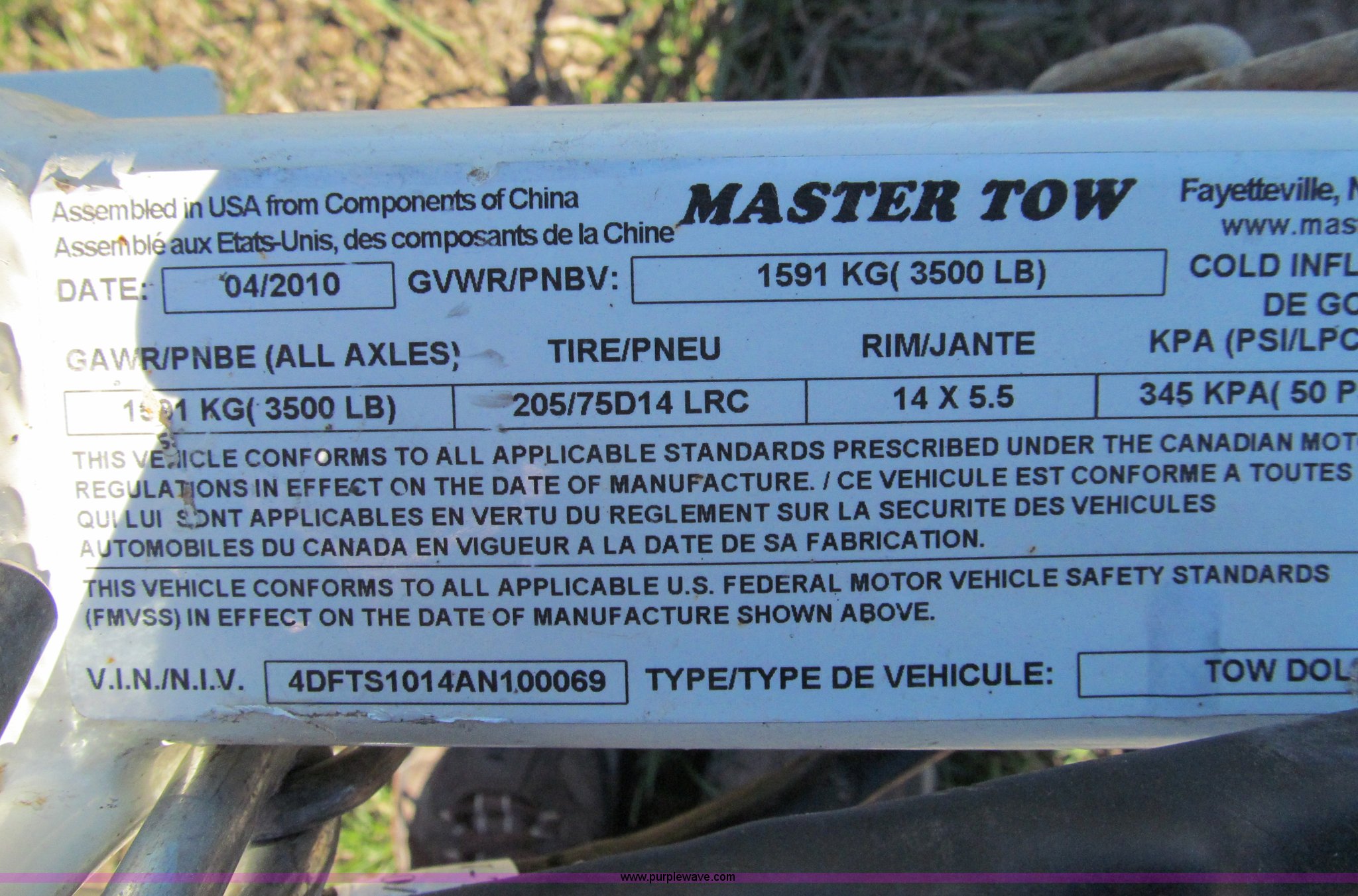 2010 Master Tow car dolly has sold in Columbia, Missouri for $1017.50. Item E3513 sold on October 17th, 2012.