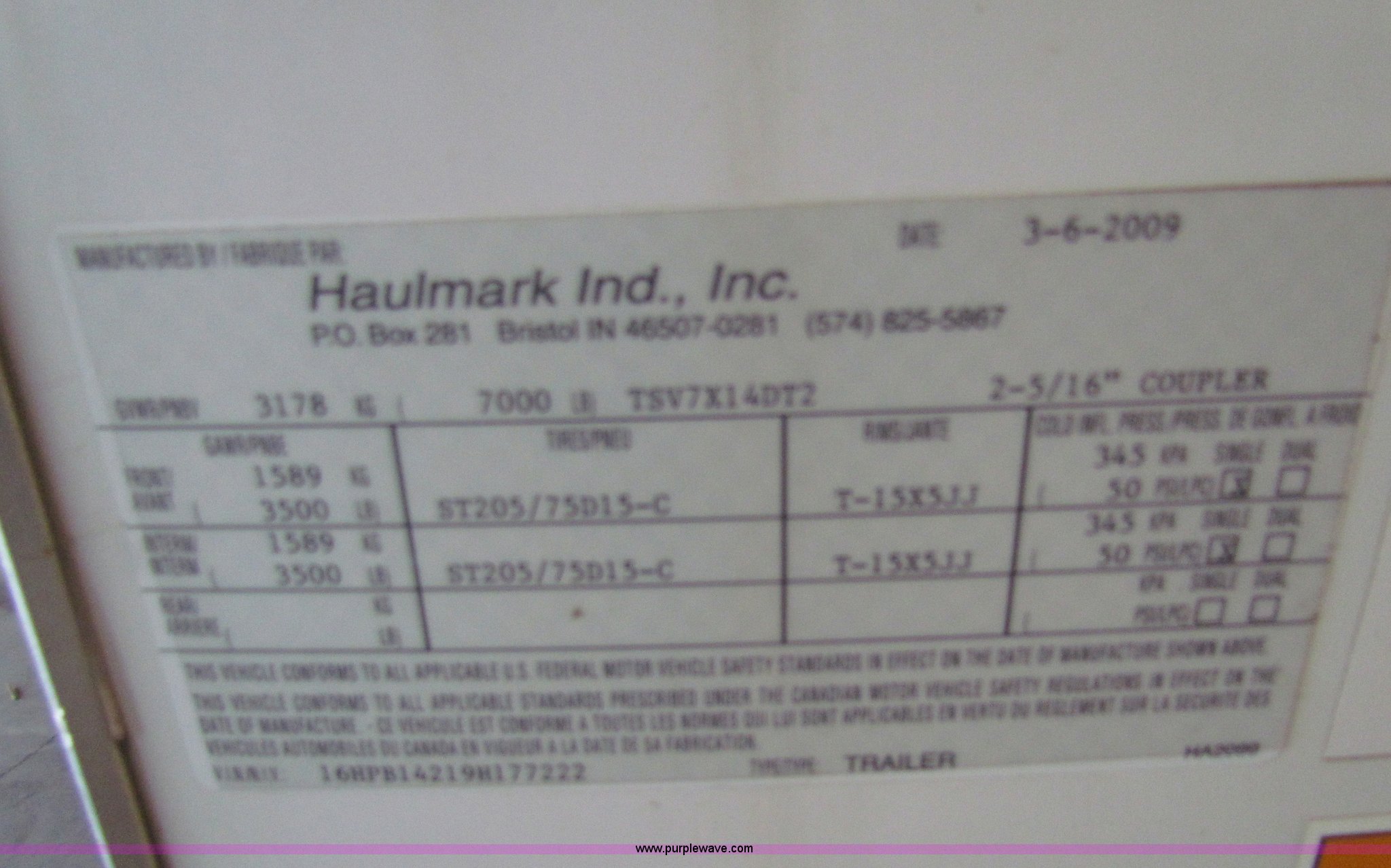 Purple Wave is selling a used Enclosed Cargo Trailer in Kansas. This item is a 2009 Haulmark 14' enclosed trailer with the following: V-nose, 7'W, 2 5/16" ball, (2) 7,000 lb axles, 205/75R15 tires, Contents not included