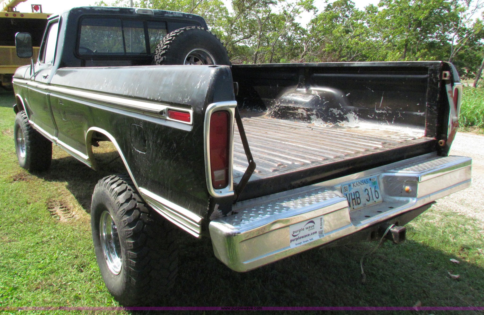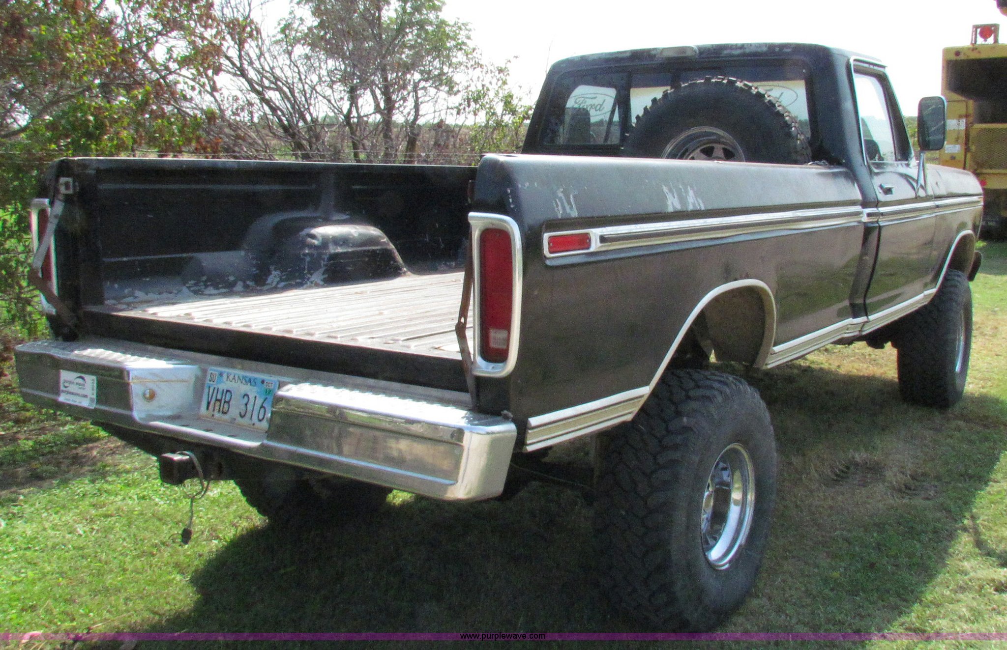 Purple Wave is selling a used Passenger Vehicle in Kansas. This item is a 1977 Ford F150 pickup truck with the following: 17,931 miles on odometer, Not Actual Mileage, 400 V8 gas engine, C6 automatic transmission, Four wheel drive, 205 transfer case, AC and heat, AC non-functional, CD player, Power steering and brakes, Front disk brakes, Rancho 6" suspension lift, Rear leaf spring packs are two years old, 5" blocks in rear, Rear end gone through two years ago, Full spooled rear end, 35x12.50R15LT tires, Interior/exterior cosmetic damage
