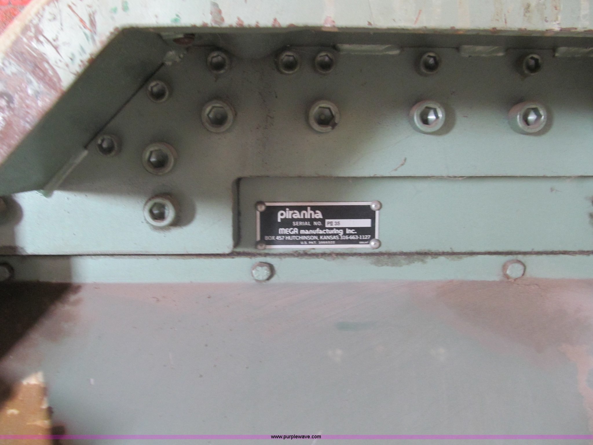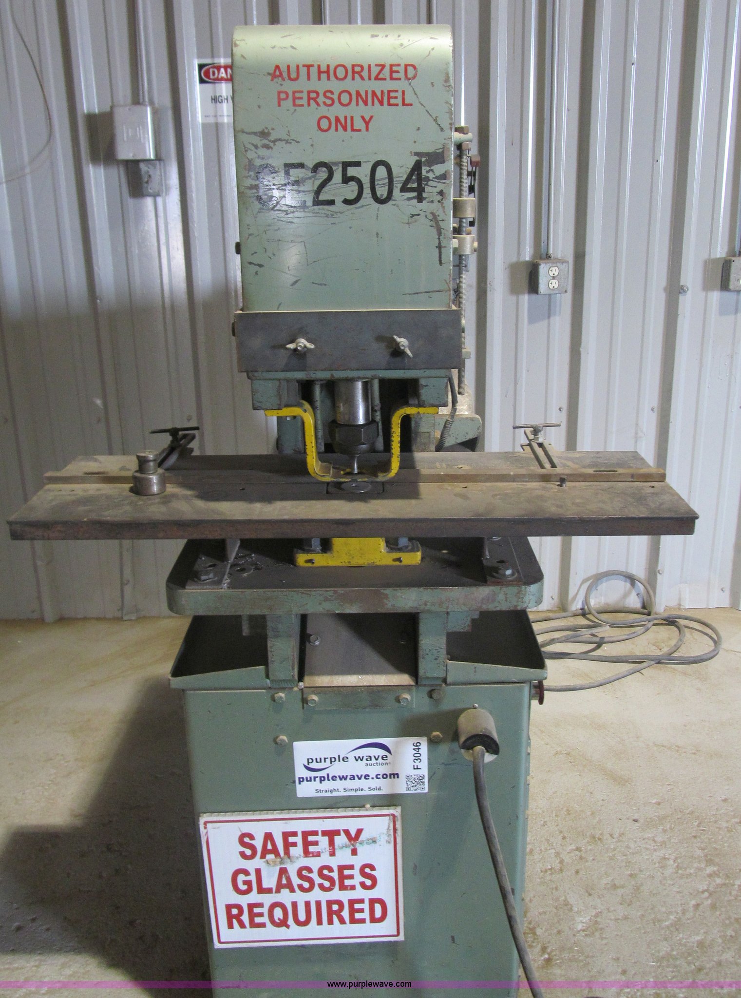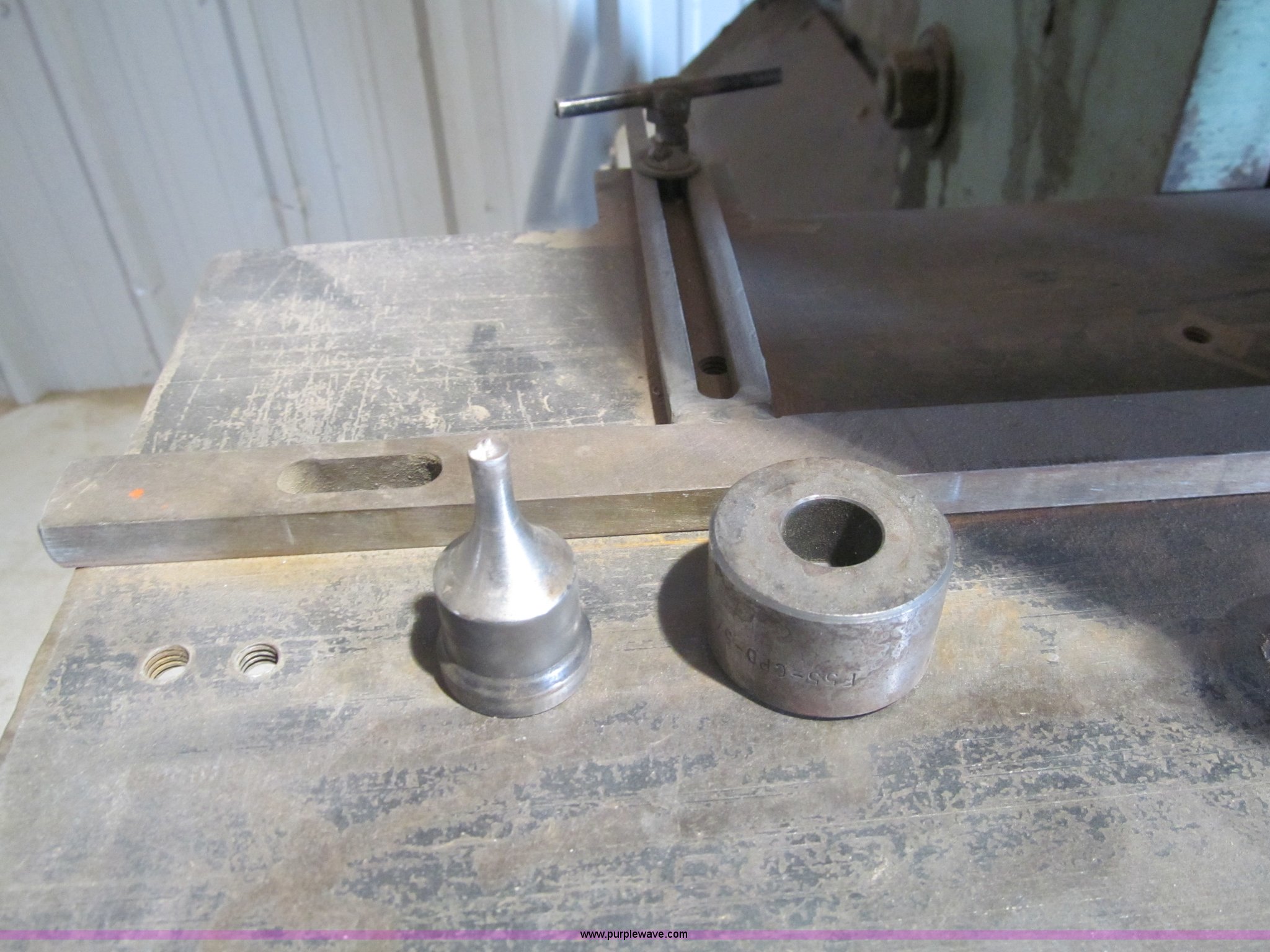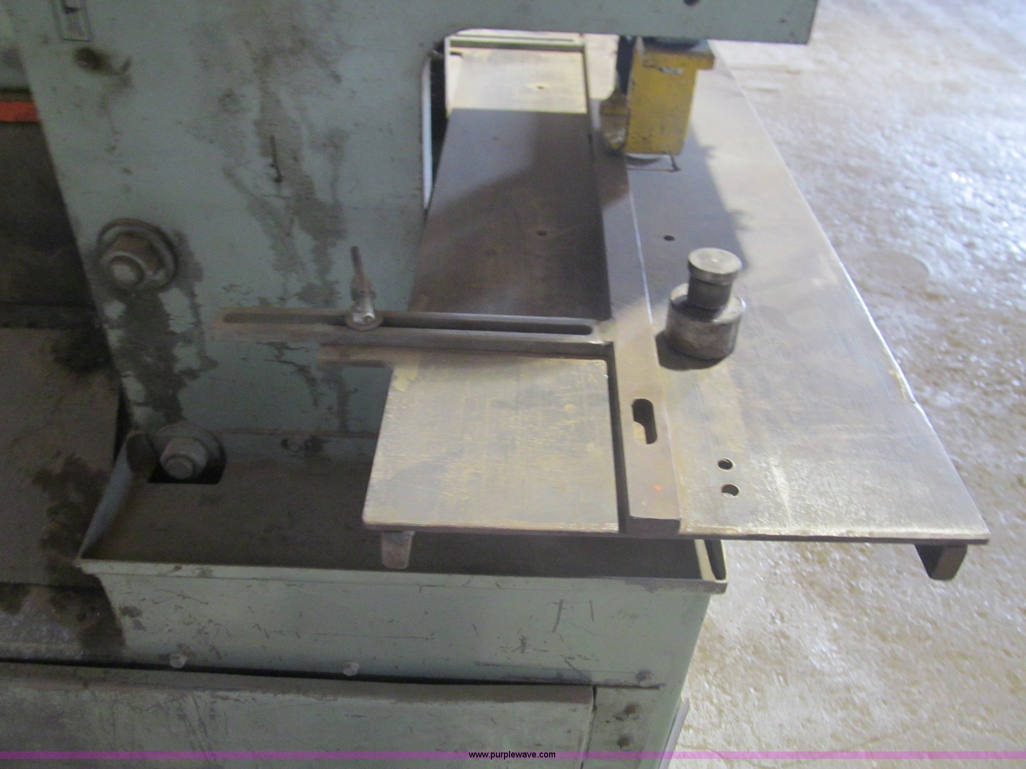 Purple Wave is selling a used Tools in Oklahoma. This item is a Piranna P1135 Iron Worker metal shear and punch press with the following: Foot pump operated, 480V, 5/16" and 3/8" punches included, 35 tons punch, 13/16" diameter through 1/2", Serial PII35